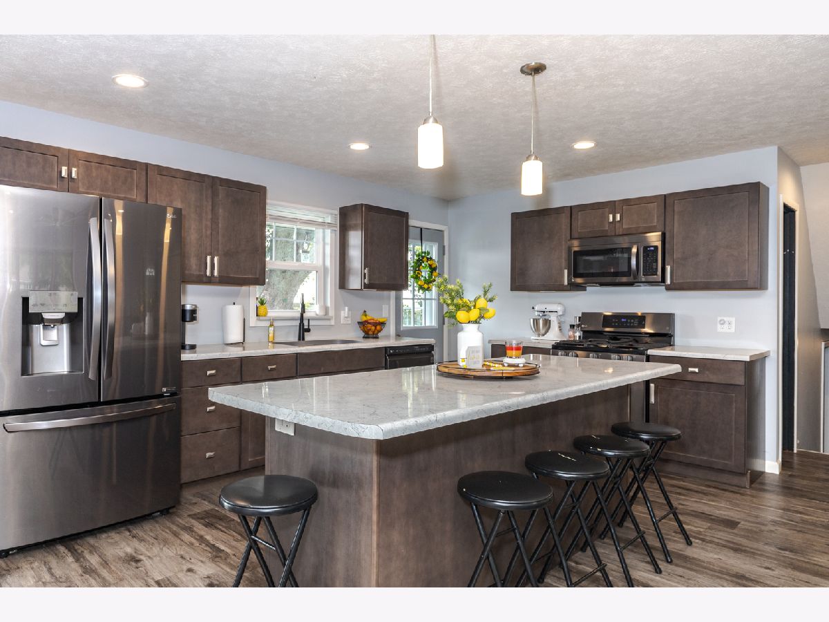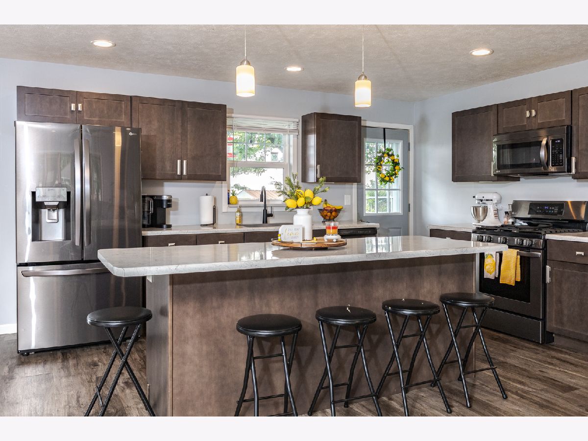 Immaculate home with completely remodeled kitchen, living room and lower level! 5 Bedrooms & 2 Full Bathrooms! Kitchen is open to the living room with island that can sit several people at the barstools. All windows (except front) are newer, double hung and have lifetime transferrable warranty. Downstairs LVP flooring installed a year ago, and owners use one room for huge master bedroom and other room for a large walk-in closet. 3 Bedrooms with original hardwood floors are in upstairs level. Siding new in June 2023, with transferrable warranty. Spacious 2 yr old deck overlooks the private backyard with no neighbors behind. There is a brand new extra building/garage in back that has been insulated and has electric. There are also 2 smaller sheds. Attached garage is heated w/ a sink & drinking fountain. Insulated garage door & opener are 3 years old. The front door and all screen/storm doors are a year old. Roof is 10 years old. Water heater 2018. Furnace is High Efficiency. This home is move-in ready!!