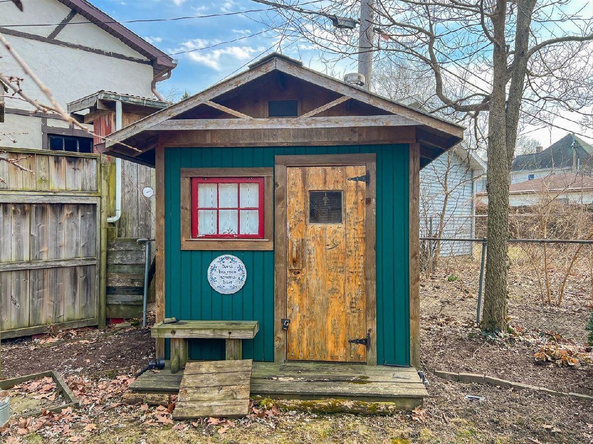 Character and Charm! This brick bungalow has tons of curb appeal with a brick walkway and arched front door. Living room features hardwood floors and a fireplace with brick surround and mantel. Enclosed porch ties in the brick from the exterior of the home and allows natural light to flood in. Dining room flows nicely into the kitchen with updated cabinetry, pressed tin backsplash, stainless appliances, and tile floor. First floor bedroom can be used alternately as a home office or family room and offers an attached half bathroom. Upstairs you'll find three additional bedrooms, all with hardwood floors, and a full bathroom with pedestal sink. Basement offers great space for storage or hobbies and includes washer/dryer and utility sink. The basement also has an additional toilet and shower. The backyard is fully fenced and has a patio, raised garden beds, an outdoor sauna, and access to the 1.5 car detached garage. Fabulous location proximate to parks, dining, shopping, bus routes, and more! Pre-inspection on file.