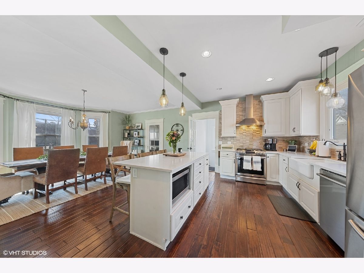 Beautiful Updated Farmhouse, conveniently situated in La Grange Park's desirable Harding Woods neighborhood! This home features 4 BR/3BA with timeless curb appeal and is in walking distance to award winning schools, parks, bike trails, library, the Metra train, and vibrant downtown La Grange! This renovated home offers 9 ft. ceilings, over-sized crown moldings, first floor office, open kitchen renovated in 2016, 4 bedrooms all on 2nd floor, finished walk-up 3rd floor which can be used for guest space, office space, or playroom with roughed in bathroom. Entertain outdoors on your large deck surrounded by lush landscaping. Other features include hot water heater (2021), windows (2016), hardwood flooring (2021), electrical (2015), front door (2021) newly renovated basement with bar (2021), drain tile (2021) and detached two car garage. Move right into this warm, inviting home that is perfect for entertaining family and friends!