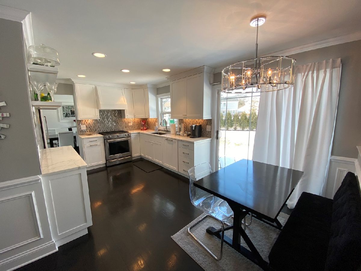 A truly special home which looks like it should be featured on a HGTV Special. Exterior offers a chic Farmhouse style featuring new windows (black trim), doors, trim and black shutters. New Roof along with completely new landscaped yard which includes paver sidewalk AND driveway. Rear yard is completely fenced with freshly painted patio. Inside shows like a new decorator model home featuring crown molding in every room and lots of other accents like chair rail and wainscoting. First floor has new hardwood floors throughout. All new upgraded stainless steel appliances, quartz tops, backsplash & Custom Cabinets in kitchen. Fireplace with built in bookshelves all new. Open stairs to LL. Redesigned front foyer and Master suite with Walk-in master closet and all new master bath. All new carpet and flooring throughout the home. New updated baths too. Finished basement provides additional recreation area and even a stage for your little performers. (Exclude Washer/Dryer, upstairs window treatments and rods, kids bedroom light fixtures.)