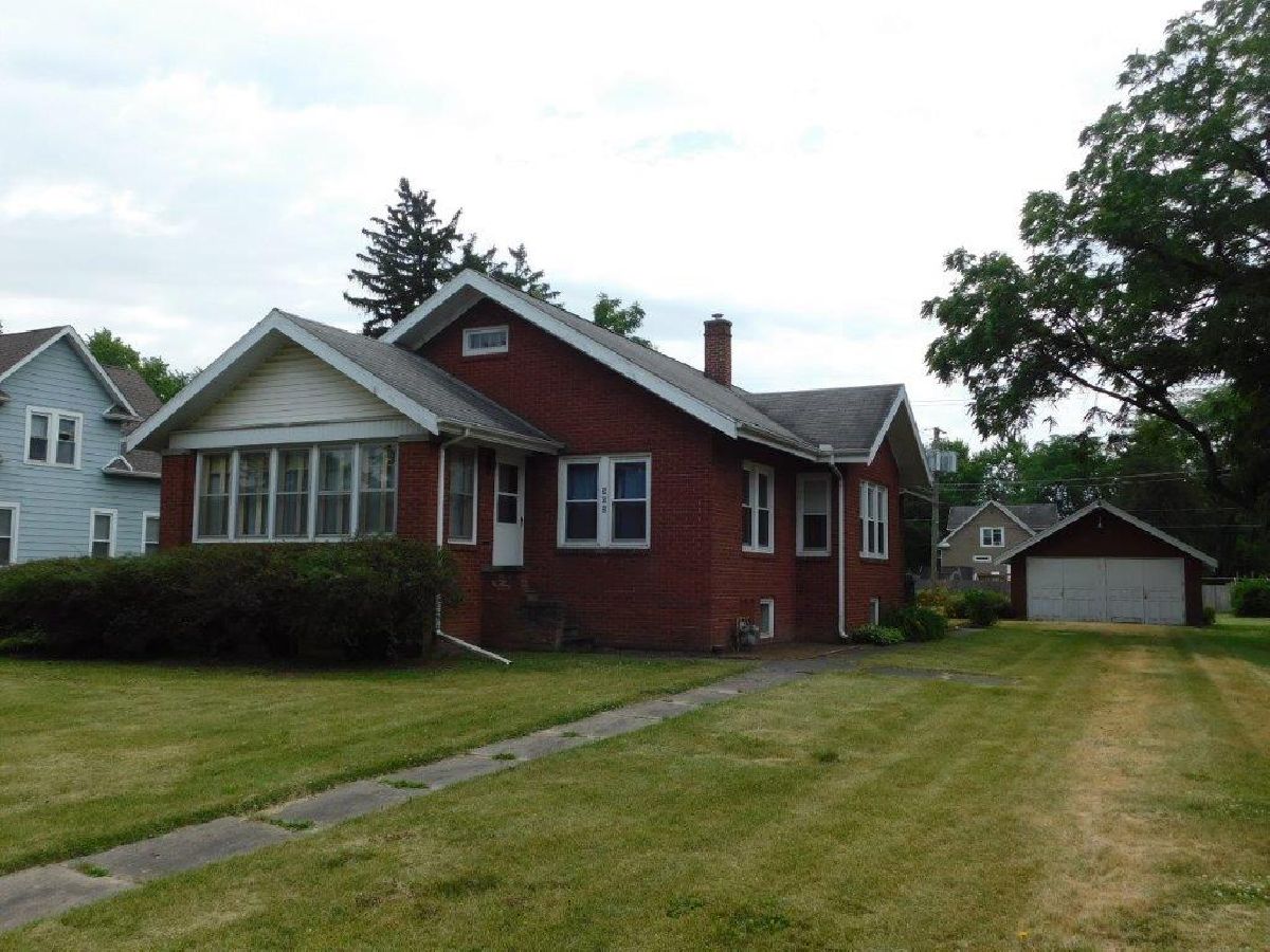 Charming 3 bedroom, 1 full bath brick home. Gorgeous woodwork throughout with beautiful built-in china cabinets and custom French doors between dining room and living room. New faucet in kitchen 2020. Replacement windows. Bathroom Remodeled 2020; new bathroom sink and faucets, new faucet and drain in bathtub, new toilet, new linoleum flooring, new vinyl around shower. 15'8 x 9'1 Enclosed front porch. 43'10 x 8' attic, great for storage. Full unfinished basement. New hot water heater 2020. 2 car detached garage, inside and concrete are in excellent shape! This is a great house! 60 miles to Chicago and 70 miles to Champaign.