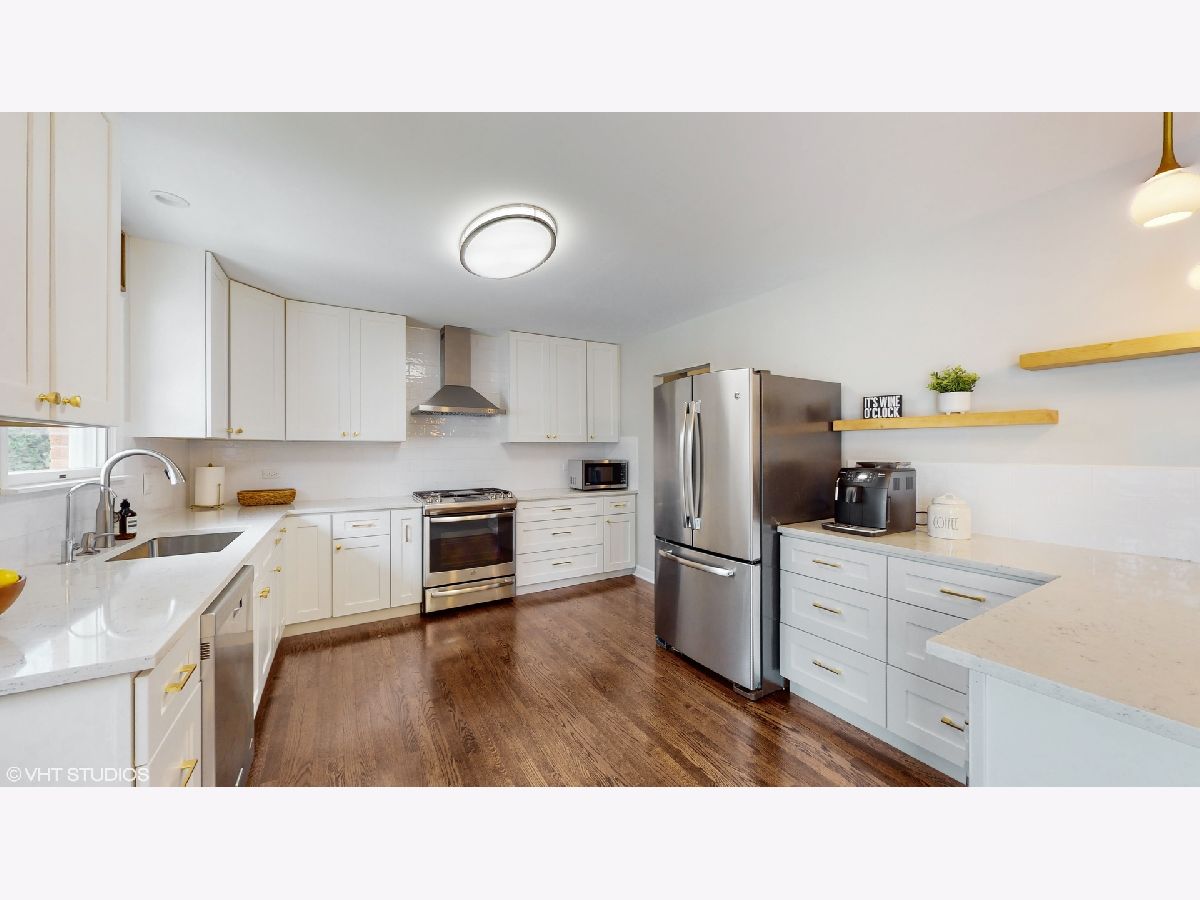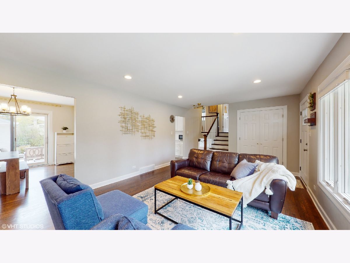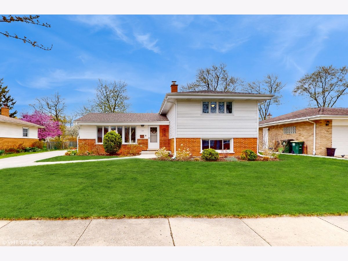 **Multiple offers received** Please submit the best and highest by 5 pm on Sun, Apr 30th. Location, location, location! Tree lined street adorns this Move-in Ready home! This stunning 4-bedroom, 2-bathroom split-level home offers the perfect combination of location, style, and comfort, making it the ideal choice for anybody! As you approach the home, you'll notice the recently added concrete paver path (2020) leading up to the front entrance and throughout the driveway and backyard porch, providing a beautiful, low-maintenance outdoor space. Step inside to discover a fantastic sun-drenched living room with large Pella windows, and beautifully refinished (2019) hardwood flooring throughout. The dining area, which flows from the living room, boasts a new light fixture and plenty of natural light, adding a touch of elegance to this already impressive home. Completely renovated in 2019, the open kitchen features white shaker cabinets, sleek quartz countertops, a stunning white subway tile backsplash, newer stainless steel appliances, and an eating area, making cooking and entertaining a breeze. Upstairs, you'll find three generously sized bedrooms with ample closet space and natural light. The fourth bedroom is on the lower level, offering privacy and flexibility for guests or a great home office with a huge storage closet. The lower level also features a fabulous family room with recessed lighting and newer carpet flooring, providing additional living space for movie nights and relaxation. Both bathrooms have been tastefully updated with modern fixtures and finishes. Just off the dining area, step outside through the sliding doors to the beautiful and expansive newer concrete paver patio with plenty of space for outdoor entertaining and your grill! There's a fabulous garden space just waiting for your favorite vegetables or flowers! The detached 2-car garage is a bonus, providing plenty of storage and parking space. Many recent updates include roof 2017, hot water heater 2016, Furnace 2014, LG washer/dryer 2019, range hood 2019, and gas stove 2019, all window treatment 2019. This home has been meticulously cared for and is in award-winning school districts (D25 and D214) Just a short distant away from schools, bustling downtown, Metra, library, dining, shopping, and much more! This home truly has it all and is move-in-ready! Don't miss out on this incredible opportunity to own a beautifully updated home in an unbeatable location!