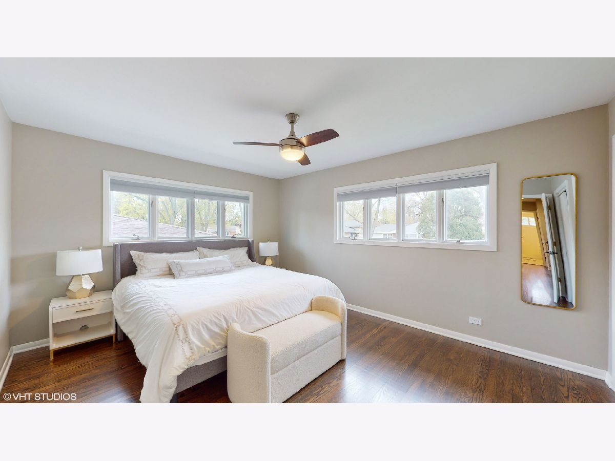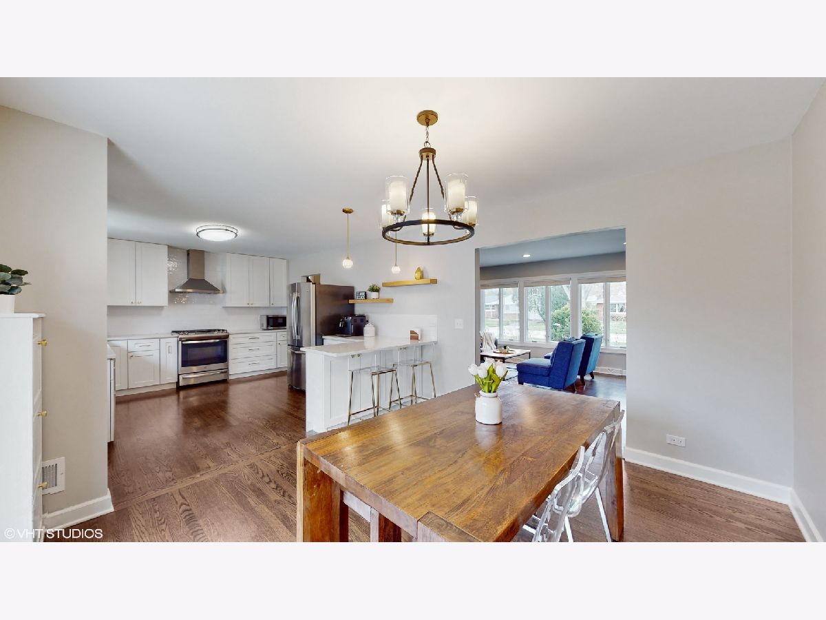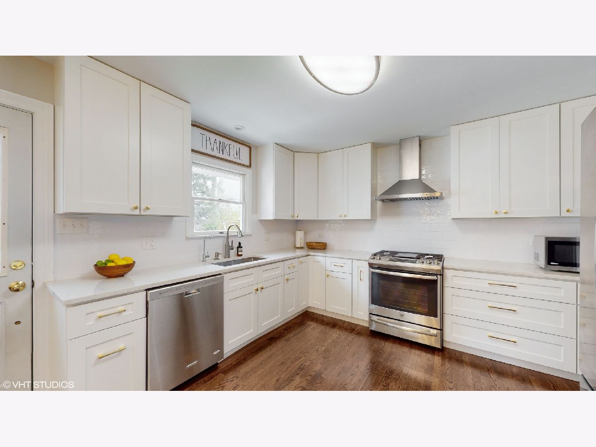 **Multiple offers received** Please submit the best and highest by 5 pm on Sun, Apr 30th. Location, location, location! Tree lined street adorns this Move-in Ready home! This stunning 4-bedroom, 2-bathroom split-level home offers the perfect combination of location, style, and comfort, making it the ideal choice for anybody! As you approach the home, you'll notice the recently added concrete paver path (2020) leading up to the front entrance and throughout the driveway and backyard porch, providing a beautiful, low-maintenance outdoor space. Step inside to discover a fantastic sun-drenched living room with large Pella windows, and beautifully refinished (2019) hardwood flooring throughout. The dining area, which flows from the living room, boasts a new light fixture and plenty of natural light, adding a touch of elegance to this already impressive home. Completely renovated in 2019, the open kitchen features white shaker cabinets, sleek quartz countertops, a stunning white subway tile backsplash, newer stainless steel appliances, and an eating area, making cooking and entertaining a breeze. Upstairs, you'll find three generously sized bedrooms with ample closet space and natural light. The fourth bedroom is on the lower level, offering privacy and flexibility for guests or a great home office with a huge storage closet. The lower level also features a fabulous family room with recessed lighting and newer carpet flooring, providing additional living space for movie nights and relaxation. Both bathrooms have been tastefully updated with modern fixtures and finishes. Just off the dining area, step outside through the sliding doors to the beautiful and expansive newer concrete paver patio with plenty of space for outdoor entertaining and your grill! There's a fabulous garden space just waiting for your favorite vegetables or flowers! The detached 2-car garage is a bonus, providing plenty of storage and parking space. Many recent updates include roof 2017, hot water heater 2016, Furnace 2014, LG washer/dryer 2019, range hood 2019, and gas stove 2019, all window treatment 2019. This home has been meticulously cared for and is in award-winning school districts (D25 and D214) Just a short distant away from schools, bustling downtown, Metra, library, dining, shopping, and much more! This home truly has it all and is move-in-ready! Don't miss out on this incredible opportunity to own a beautifully updated home in an unbeatable location!