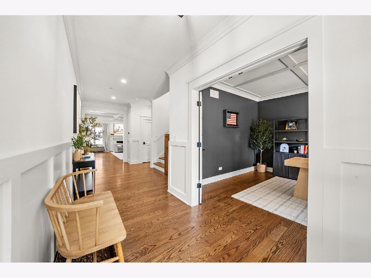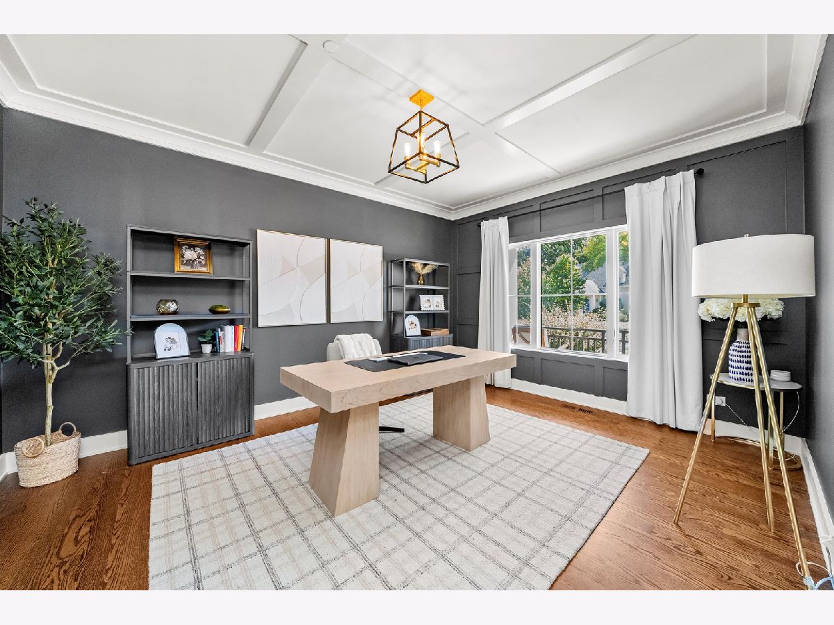 Immaculate Urban Farmhouse! This stunning custom home, built in 2021 by the highly regarded Jovic Builders, showcases exceptional attention to detail and quality craftsmanship throughout. Step inside to a desirable open yet functional floor plan designed for both everyday living and entertaining. The expansive Chef's kitchen features a large island, quartz countertops, Bosch appliances, high-end hardware, and designer lighting. The generously sized living room is anchored by a gas fireplace and coffered ceiling, while the versatile front room can serve as a study or playroom. The luxurious primary suite offers a spacious bedroom, spa-like bath with double vanity and oversized shower, and an adjacent private office with a massive walk-in closet. Secondary bedrooms are generously sized with ample closet space. The second-floor laundry includes cabinetry, a utility sink, and granite counters. This home also has a functional and attractive mudroom too! The finished basement boasts 9-foot ceilings, a large recreation room, fifth bedroom, full bath, and playroom areas, along with extensive storage. Custom tile work enhances every bathroom. Beautiful woodwork and trim details shine throughout. Outside, enjoy the inviting front porch with metal railings, Hardie board and stone exterior, professional landscaping, a low-maintenance deck, fully fenced backyard, and a newly added paver patio-ideal for entertaining. Attached two-car garage and concrete driveway. Located in sought-after Harding Woods, this home is close to Ogden Avenue Elementary, Salt Creek Forest Preserve trails, the Metra, and the vibrant downtowns of La Grange and La Grange Park. Experience all this home has to offer and make it yours!