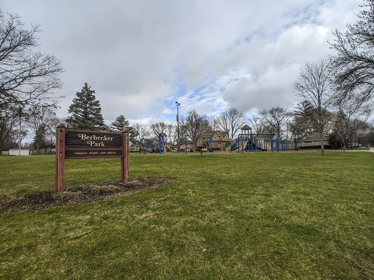 Outstanding curb appeal! Fabulous location! 3 homes from Berbecker Park and 1 block to Windsor Elementary. Take advantage of the opportunity now to own this clean quality constructed 3-BR, 2-BA, blonde all brick 1,738 sq. ft. ranch with 1,450 sq ft basement, 2-car garage, partially fenced lovely yard. 88' wide lot and not a corner lot!! Hardwood floors under neutral carpet in LR, DR, hall, all bedrooms. Large entryway w/closet, big & bright combo LR (picture window)/DR (3 windows) leads to double French doors carpeted FR with sliders to concrete patio (good condition) and yard with beautiful soft needle pine tree. From DR leads to kitchen with spacious eating area (2 windows to yard), ceramic tile floor, oak cabinets neutral laminate countertop, stainless steel sink, pantry, and separate pocket doorway to hall/foyer. Backdoor from the kitchen lets you enjoy the yard or do some barbecuing on the patio. MBR is spacious with corner windows, ceiling fan, 2 sets of closets, and note the pretty hardwood floors visible beyond the edges of the rug. MBA has a shower, and a window. Other bedrooms feature hardwood floors under carpet. Hall bath is pink and mostly original but clean. Big unfinished basement has tremendous potential and goes under all but the family room. Conveniently located, minutes away from downtown Arlington, the train station, Mariano's, Walgreens, Recreation Park/Pool/Tennis Courts and more!