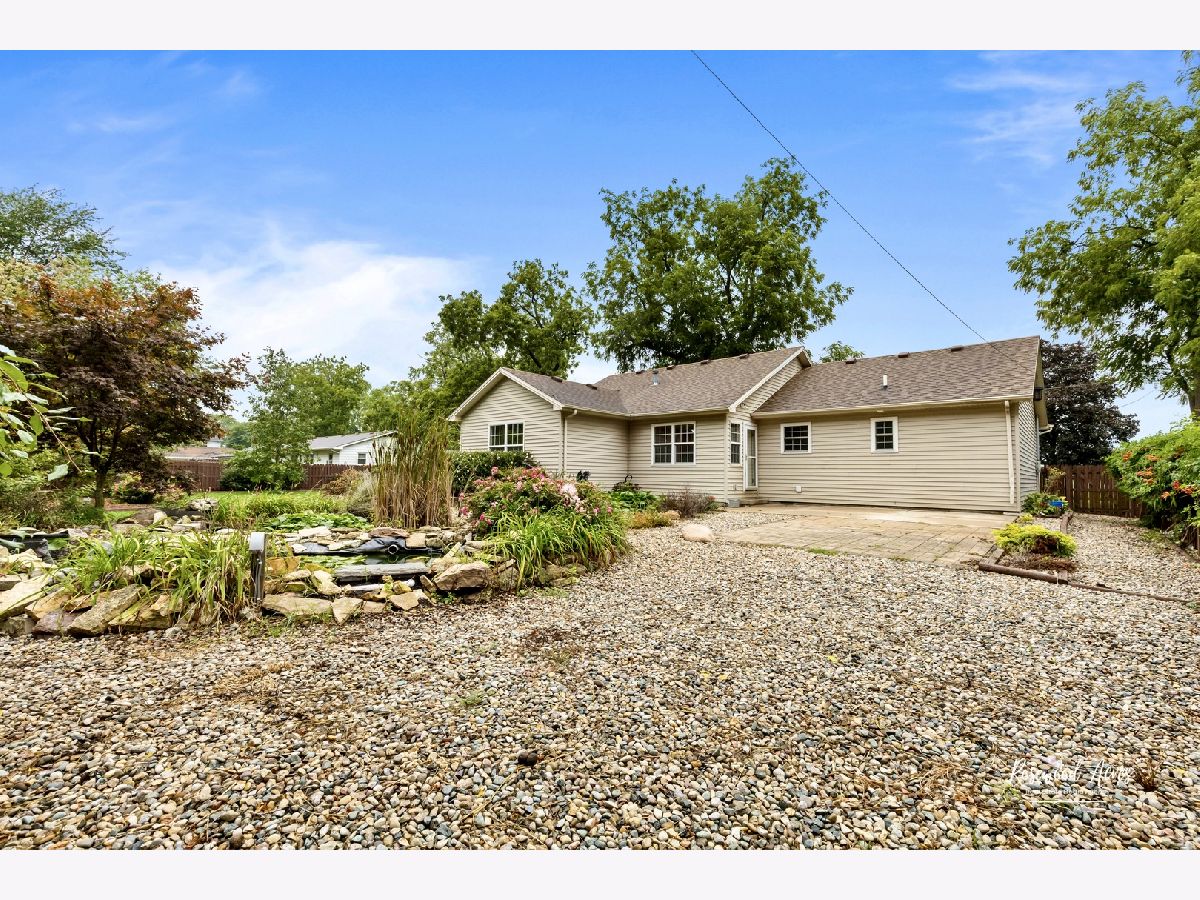 Discover the epitome of modern living in this exquisite three bedroom, two and a half bathroom ranch nestled on a sprawling double lot in the charming Aroma Park community. This contemporary gem boasts a thoughtfully designed open floor plan, seamlessly merging comfort and functionality. As you step inside, you'll be greeted by the inviting living space adorned with rich Acia flooring throughout, reflecting elegance and easy maintenance. The heart of the home, the kitchen, showcases stainless steel appliances and a convenient snack bar, making culinary endeavors an absolute delight. One of the highlights of this home is the stunning front bedroom featuring a vaulted ceiling, infusing a sense of airiness and sophistication. The master suite offers not only a haven of relaxation but also practicality with three closets, including a full bath. An additional half bath off the kitchen caters to your everyday convenience. Entertainment options abound as you make your way to the family room, which has been thoughtfully created within the converted garage. French doors seamlessly connect the indoors to the outdoors, where a true family oasis awaits. Step out onto the captivating double lot, replete with a sprawling fenced backyard. Two distinct patios provide options for outdoor gatherings: a spacious 25x12 concrete patio and an expansive 40x30 paver patio. Enjoy the soothing sounds of a koi pond with a waterfall, gather around the built-in fire pit, and admire the meticulously curated flower beds that encircle the entire home. Functionality meets creativity with a walk-up attic, framed and floored, offering the potential to expand your living space according to your desires. Additionally, the property is conveniently situated just 2500 feet away from the Kankakee River, providing natural beauty and recreational opportunities without the need for flood insurance. This residence has been lovingly maintained, featuring large windows that bathe each room in abundant natural light. With a detached shed for extra storage, oversized rooms, and move-in readiness, it offers a harmonious blend of comfort, style, and functionality. Don't miss the chance to call this exceptional property your own - a haven where modern living meets the tranquil allure of Aroma Park Serious pre-approved buyers only per the seller's request call today to schedule your own private showing This property is also available for lease