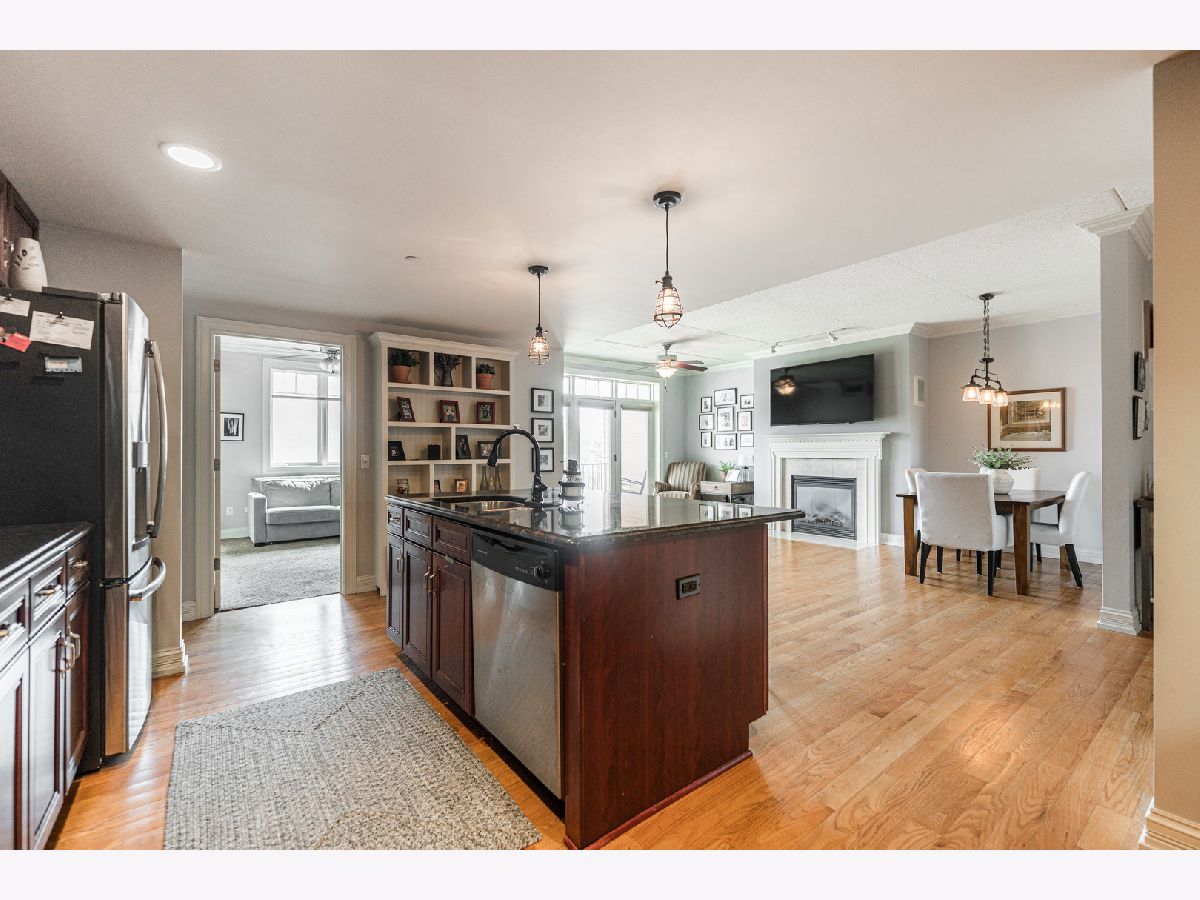 Move right into this 2 Bedroom, 1 1/2 Bath condo. Hardwood flooring flows throughout the open concept, living room, dining room, and kitchen. Kitchen features stainless steel appliances, granite countertop, large island and tile black splash. Primary bedroom, large enough for a king-size bed, with walk-in closet. Full size bath with separate shower and soaking tub. Private balcony. In unit washer and dryer. Attached heated garage. Investors welcome - units can be rented. Make your appointment today.