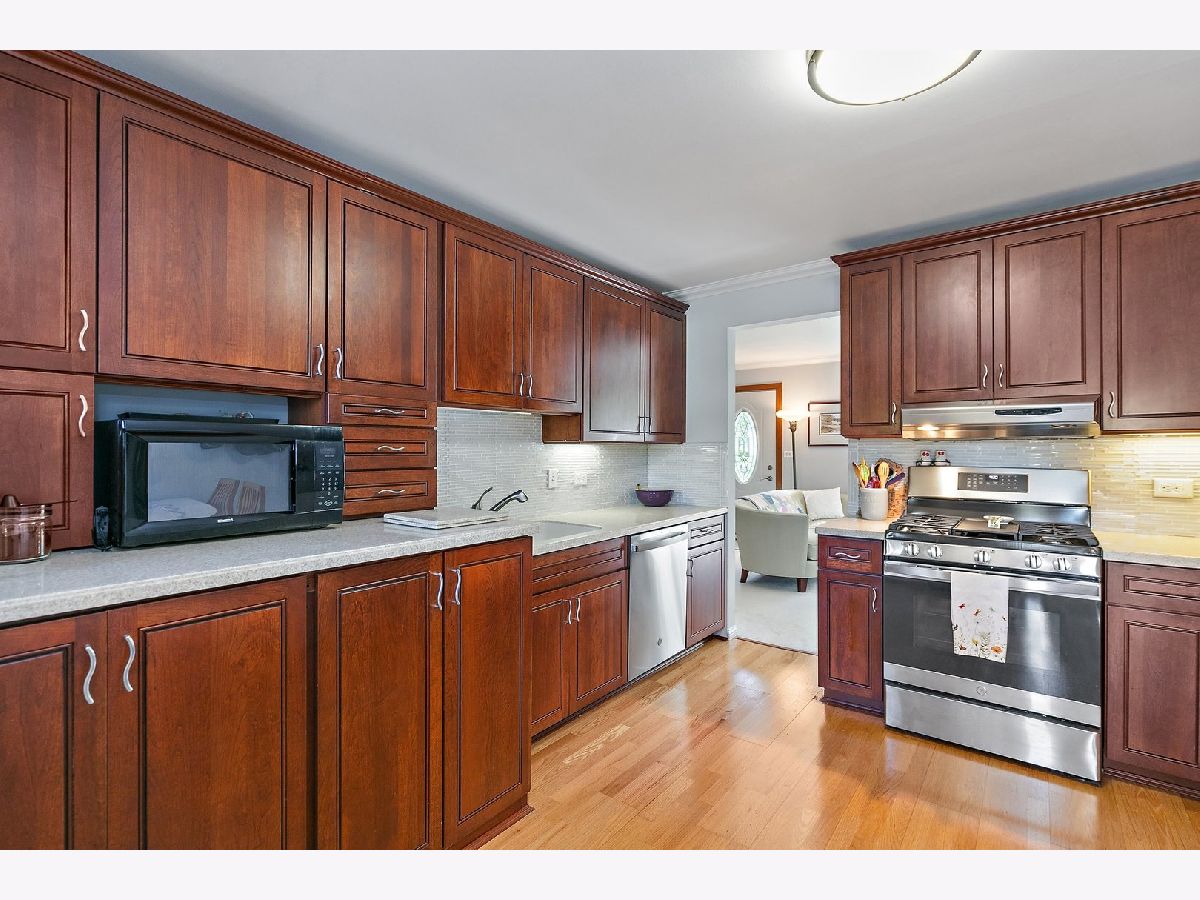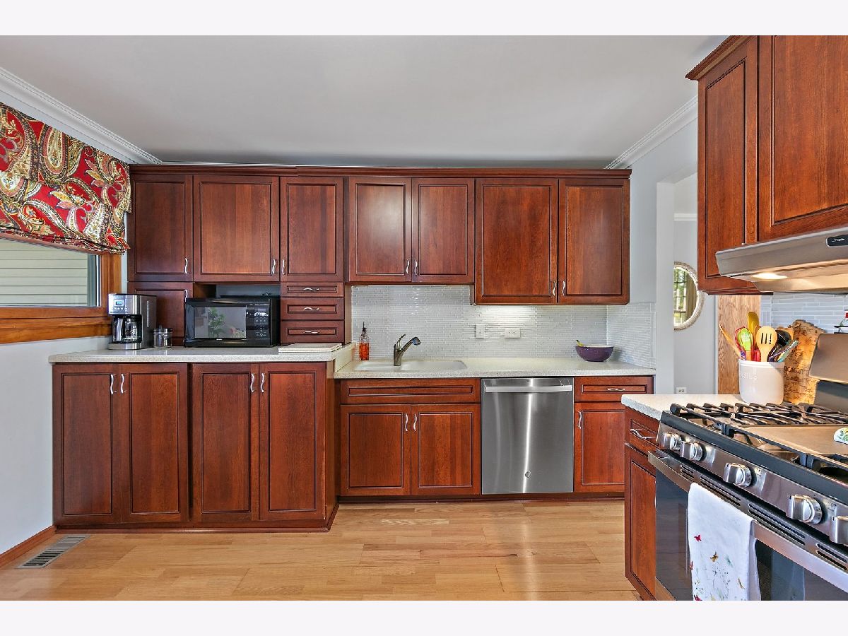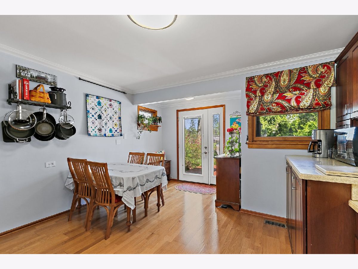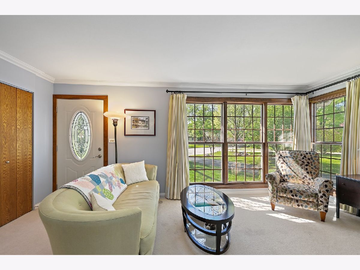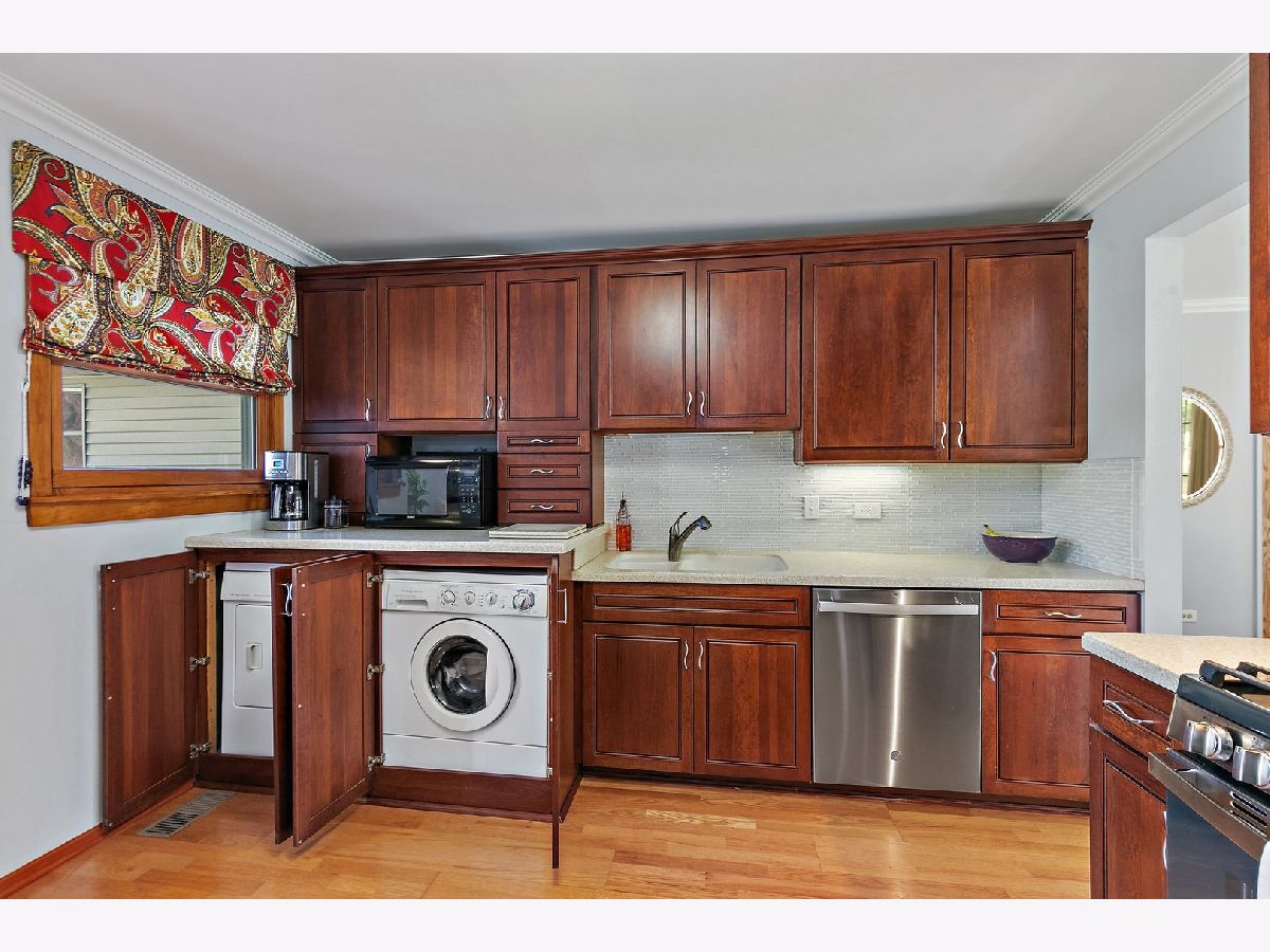 Multiple offers received, highest and best due Monday, May 19th at Noon. Discover comfort and convenience in this inviting ranch-style home, perfectly situated in the desirable Kimball Hill neighborhood of Rolling Meadows. A bright and airy living room welcomes you inside, featuring plush carpeting, oversized windows that fill the space with natural light, and a seamless flow into the heart of the home. The kitchen offers both style and functionality, boasting rich cherry cabinetry with elegant crown molding, Corian countertops, a decorative tile backsplash, wood laminate flooring, and stainless steel appliances. Vinyl wood-look flooring adds warmth and durability, while crown molding continues the upscale touch. For added convenience, the washer and dryer are discreetly tucked into the kitchen cabinetry, making daily chores a breeze. This home offers three well-sized bedrooms, each complete with dedicated closets. The primary bedroom is a true retreat, extended with a walk-in closet and en-suite. You also have private access to the vaulted, screened-in porch where you can relax under the ceiling fan and enjoy peaceful morning coffee or unwind with evening breezes. The en suite bath has been beautifully finished with a tiled shower featuring a built-in bench, shampoo niche, and coordinating tile flooring. A full hallway bathroom serves the additional bedrooms. Step outside to a backyard designed for entertaining and relaxation, with lush landscaping, a spacious deck, and plenty of green space for gatherings or play. A long driveway leads to the detached garage, providing ample parking and storage options. Crawl space provides extra storage option. Ideally located near parks, schools, dining, and shopping, this well-cared-for home offers the best of indoor comfort and outdoor enjoyment in a sought-after location. Roof (2016), windows (2011 with select replacements), furnace (2017), water heater (2012).