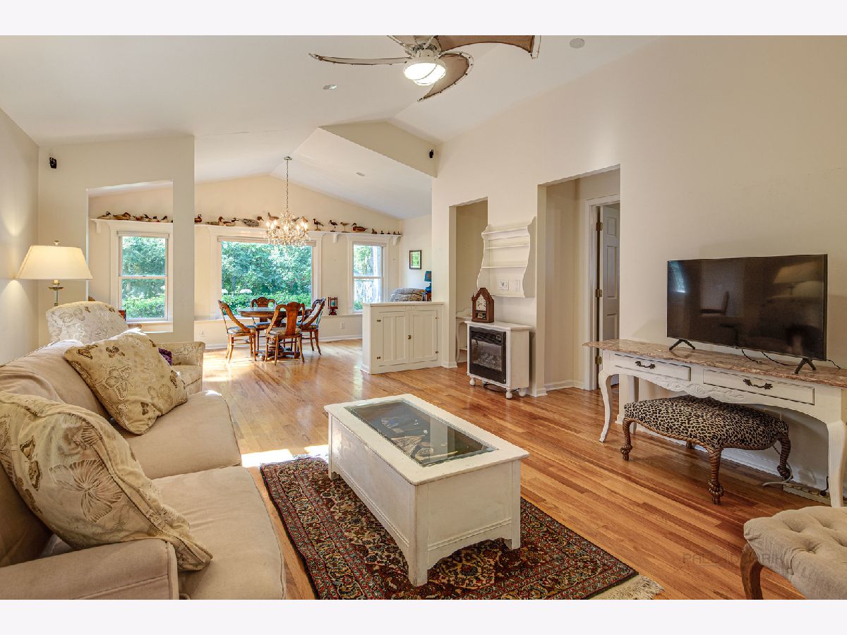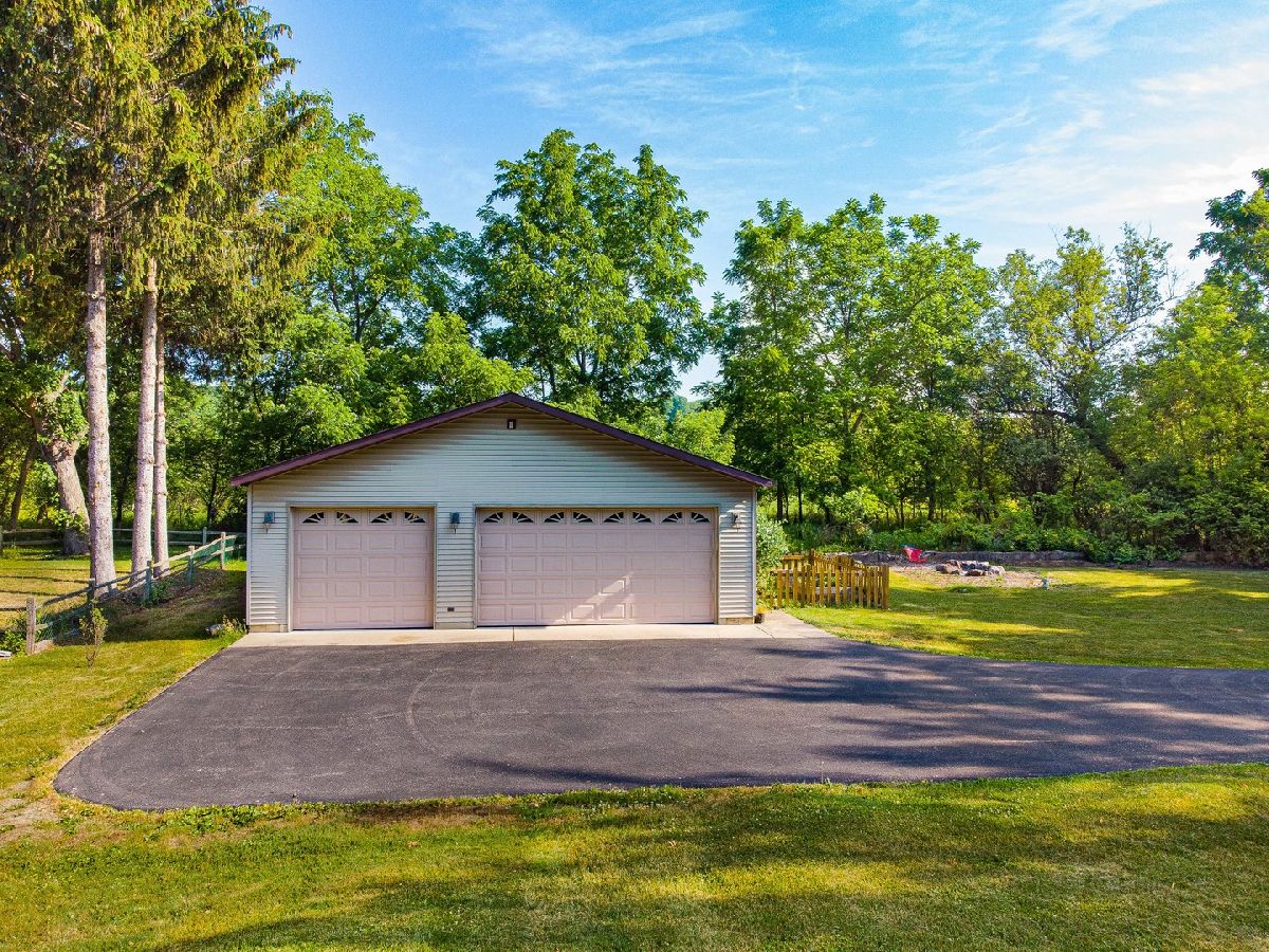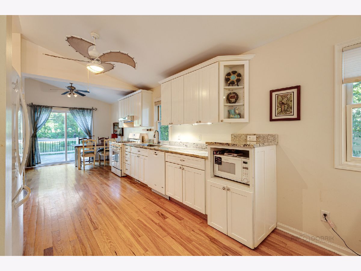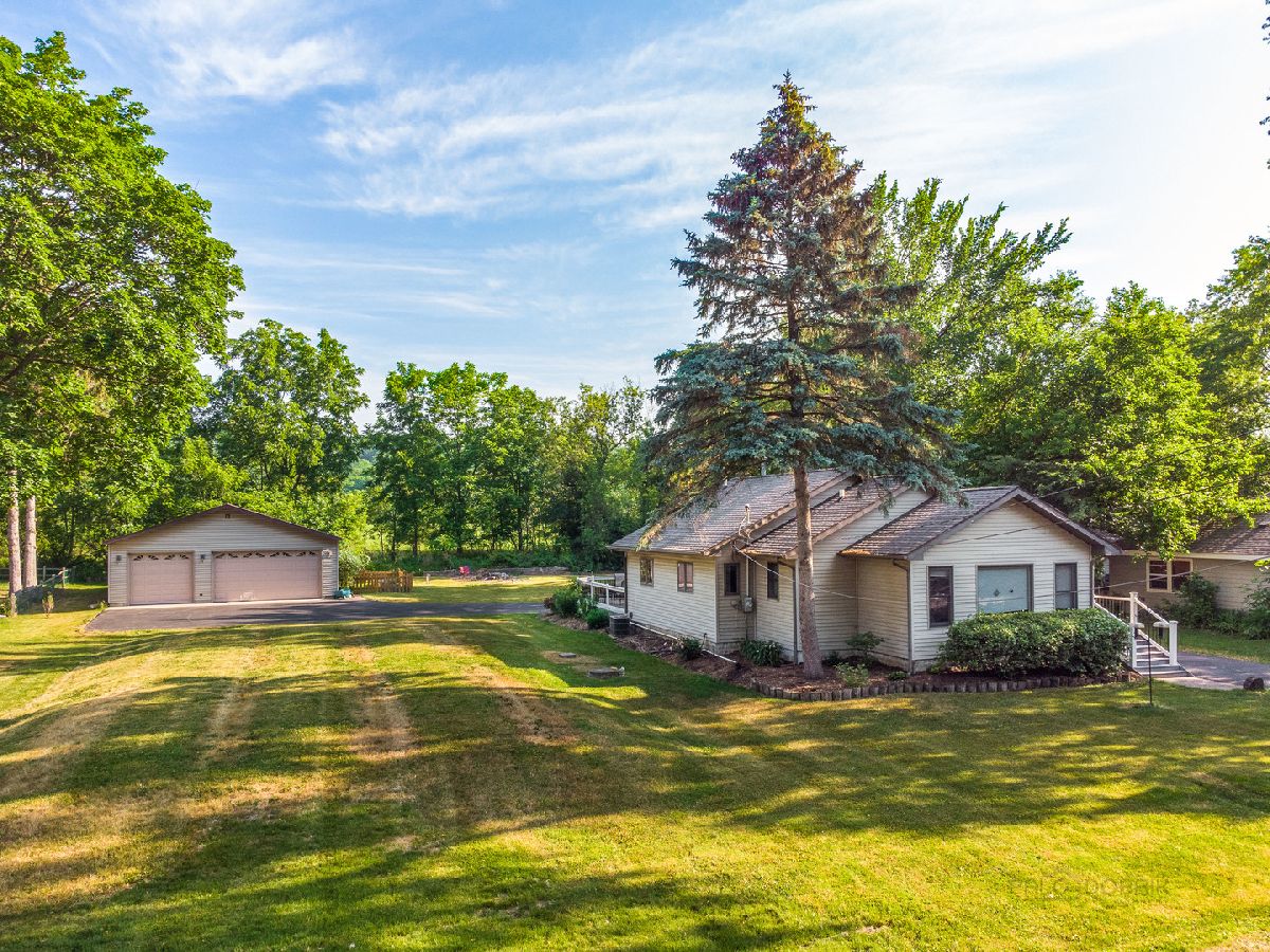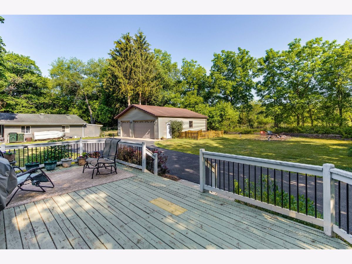FINALLY...an open-concept ranch on the river with an awesome detached 3+ car garage for all of your toys! Enjoy all the benefits of river without being in a flood plain! Located across the street from the Fox River, this home includes two 10' easements to the river, for 20' of river frontage! Currently there is a newer maintenance free, composite deck at the river, along with a pier. Completely remodeled in 2008 down to the studs (original foundation), including roof, windows, etc. This charming 2 bedroom, 1 bathroom home is perfect for anyone who is seeking the waterfront lifestyle without the huge price tag! Hickory cabinets (currently painted), granite countertops, hickory hardwood floors, vaulted ceilings and lots of windows are found throughout the open floor plan. The beautiful bathroom was completely remodeled with updated fixtures, beautiful tile work and glass shower. Both the master bedroom and kitchen have access to the large deck. Adjacent to Fox Bluff conservation area and loaded with native perennials, this is the perfect home for enjoying all that nature has to offer. Relax on the back deck with your coffee, or unwind on the deck at the river after a long day. This is the vacation-style living you have been waiting for! This is a 20x180 river front parcel with pier and deck. (4 PIN #s). Don't wait on this one and you can be moved in in time to enjoy the river life this summer!