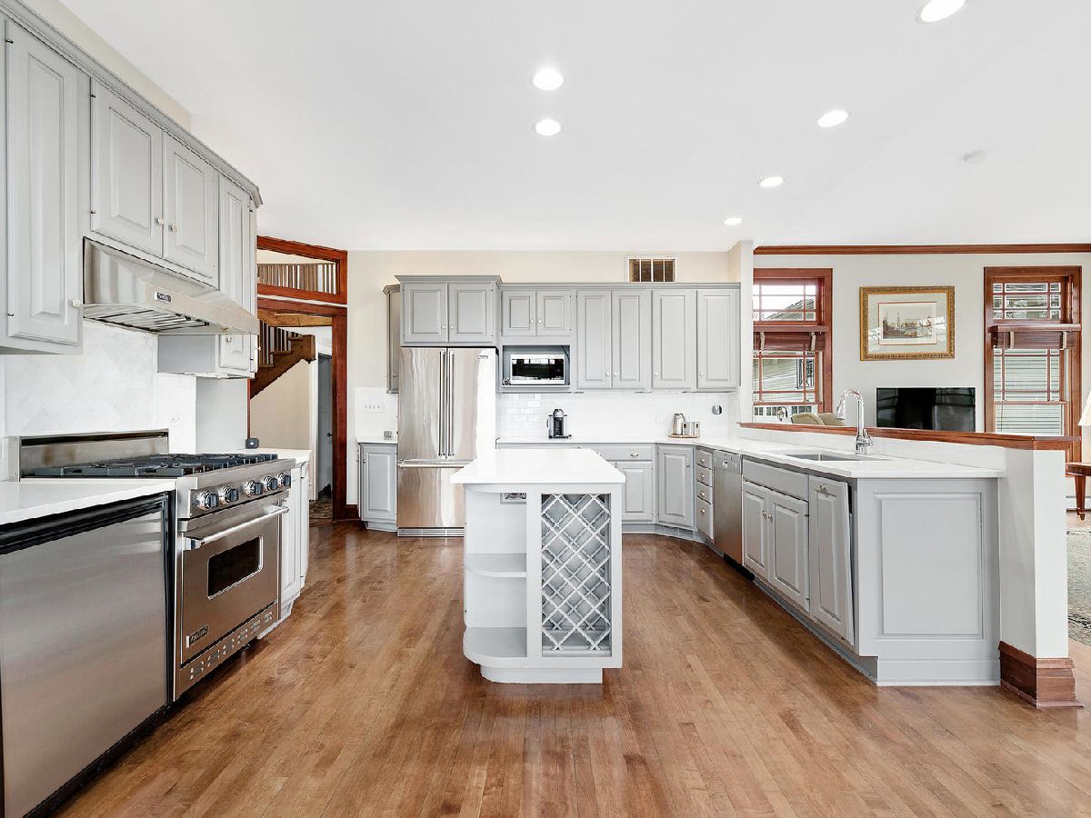 Immerse yourself in the best of both worlds when you enter this architecturally significant home which has been modernized seamlessly to meet today's standards of comfortable living. Designed by famed architect Joseph Llewelyn, this home features generously sized interiors, refined style and exquisite craftsmanship while still feeling warm and inviting throughout. From the gracious foyer to the open kitchen and family room which are filled with natural light, you'll find living spaces that are both spacious and inspiring. Offering a multitude of options for the best in work-from-home/school-from-home opportunities, this home far outshines new construction - with the massive square footage, quality of materials, and uniqueness of design, this home could not be duplicated today at this price point. Large bedrooms are featured including a grand master bedroom suite with a private full bathroom and attached sitting room. Each bathroom has been updated throughout. The third floor feels like a retreat, with a private guest suite and a fabulous bonus room to inspire parties for the kids or adults alike! There's also a cozy finished basement with plenty of room to play and abundant space for storage. The 3-car garage is a "must-see" with a heated, finished loft with hardwood floors that will function beautifully as a huge private office, exercise room or more. The large open kitchen features Viking stainless steel appliances, plentiful painted cabinetry, and quartz countertop workspaces worthy of a master chef. Impressive architectural features such as quarter-sawn oak floors, mahogany millwork, and distinctive built-ins are featured throughout this remarkable home. Notable historical elements include Harriton etched glass, Giannini glass fireplace mosaic and windows, and vintage hardware and fixtures. Start formulating your outdoor party plans for the grand, entertainment-sized side porch or the lovely back patio, or just plan to enjoy your morning coffee on the large, second-floor rooftop deck. This unpretentious beauty of a home places you on a beautiful street of historic La Grange, within mere blocks to vibrant downtown La Grange and some of the area's top-rated schools. For the most discerning of home buyers, this is a true gem of a home.