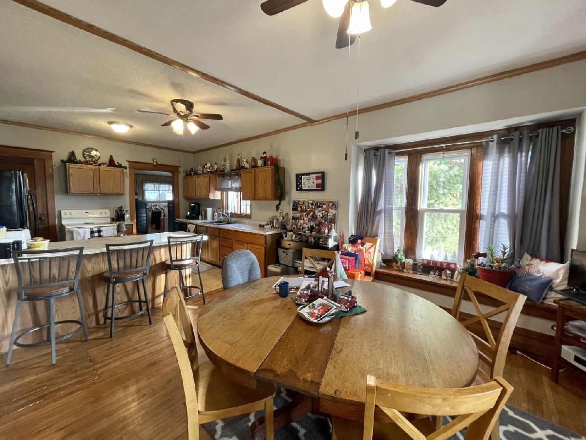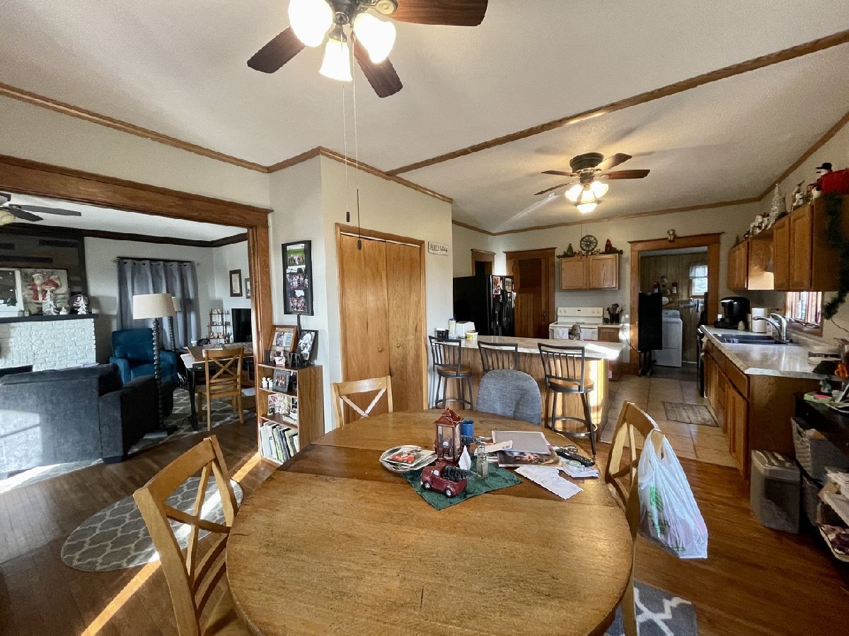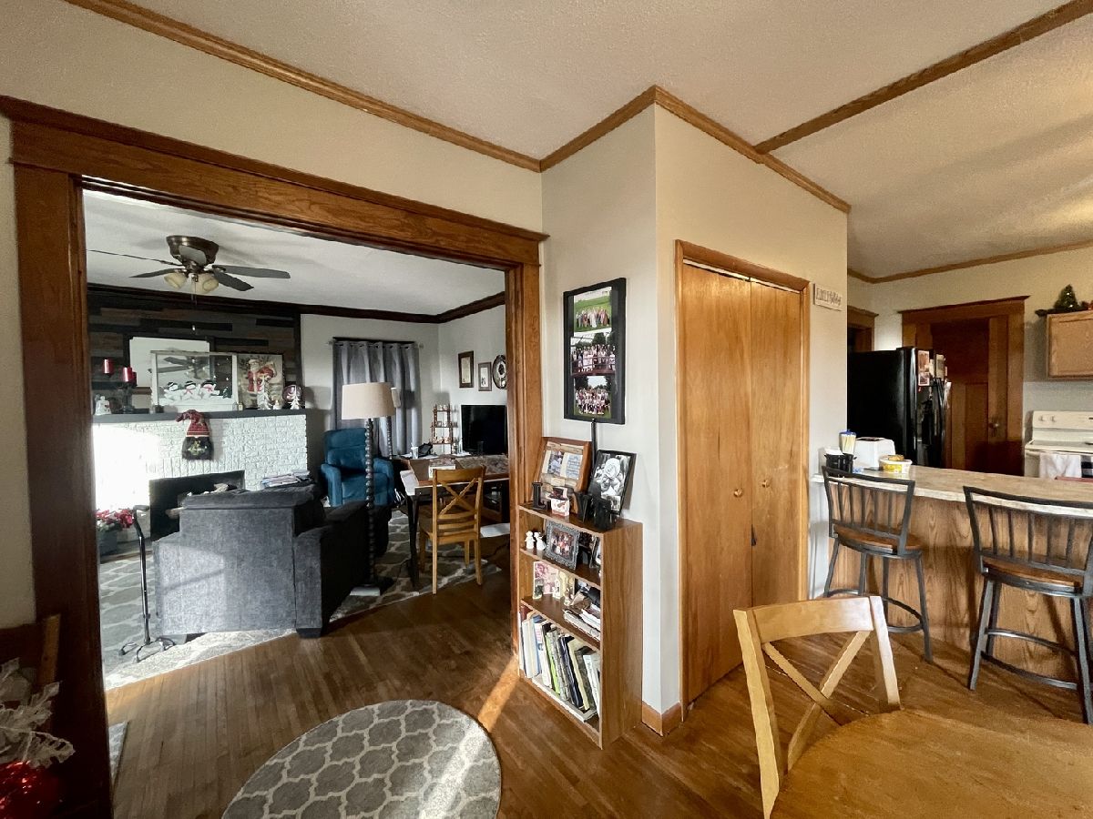 Gorgeous character abounds in this 4 bedroom, 1.5 bath home with a great floor plan and large yard. Cuddle up in your large living room in front of your gas fireplace with reclaimed wood accents. Next step onto the redone hardwood floors to waltz into your open kitchen and dining area for some hot chocolate and then go back to sit down and enjoy the amazing crown molding, updated color scheme, and main floor laundry that makes chore time easy. Ideal open front porch for those warmer days and hot water heat boiler for the most even heat possible on the cold days. With two bedrooms on the main level and two more upstairs the space is generous and a bath on each floor makes life convenient. Large yard and attached garage. Roof new in 2009, vinyl windows approx. 10 years old, and all appliances stay. This home is completely move in ready and being the only home available in town at the time of listing you don't want to miss it!