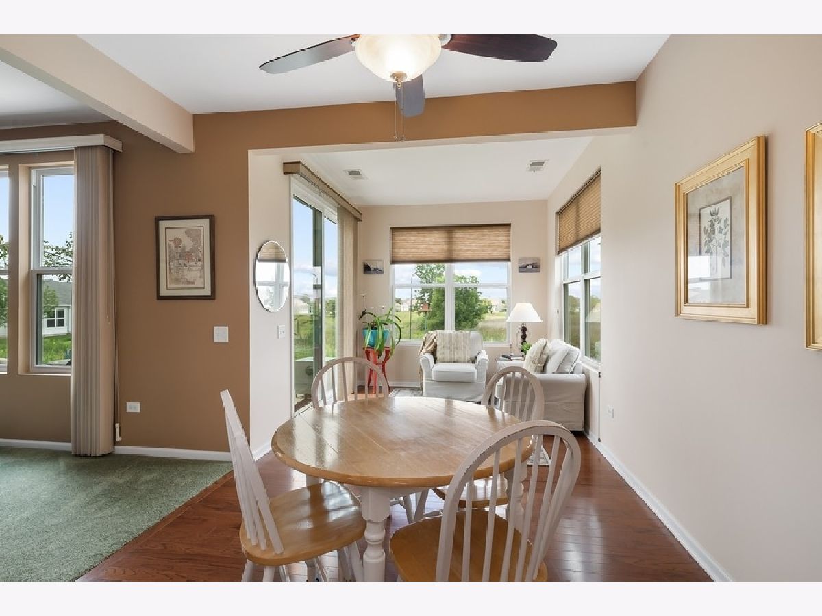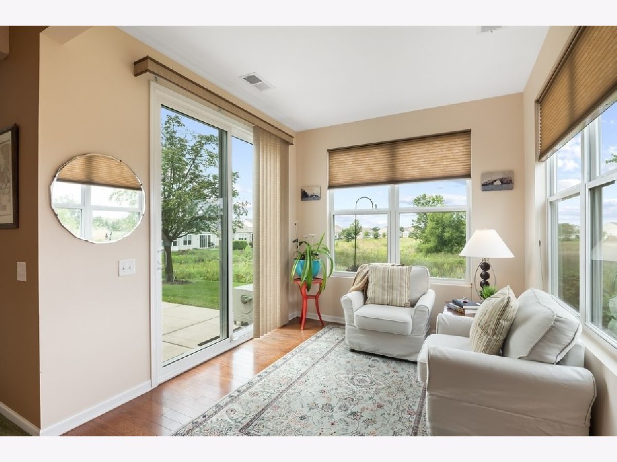 Enjoy resort-like living at Del Webb's Grand Dominion 55+ Active Adult Community. You will never get tired of the nightly sunsets over the peaceful conservatory area directly behind this spacious Wright Model (1900 sq ft) on premium lot with open floor. In addition to 2 Bedrooms and 2 Full Baths, this model features a private Den at the front of the home and a bright sunroom off the kitchen eating area. Kitchen has 42" maple cabinets, reverse osmosis system, corian countertops and stone backsplash; Hardwood flooring in entry, kitchen, eating area and sunroom and upgraded newer carpet in the balance of the home. Extra-deep 2 car insulated garage for golf cart or extra storage. Professionally landscaped with in-ground sprinkler system and patio overlooking the protected wetlands. Endless community amenities including The Lodge with social activities, fitness center, indoor & outdoor pools, tennis, bocce ball, pickleball, 2 miles of scenic walking/biking paths. HOA includes use of clubhouse, lawn care, snow removal, plant/tree trimming, mulch and driveway sealing done on a rotation basis. Conveniently located near shopping, dining, and Metra.