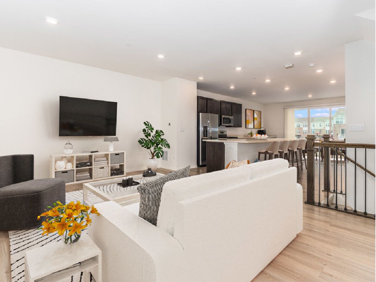 NEWER CONSTRUCTION ~ AVAILABLE IMMEDIATELY! Stunning Townhome in Prime Naperville Location & Highly Sought-After Indian Prairie School District #204 ~ Just 2 Years NEW! Welcome Home to the Convenience & Lifestyle of Naperville Crossings. Tucked in a Quaint Community, this Move-In Ready Townhome is just steps from Dining, Shopping, Childcare, Fitness, Beauty, Entertainment & More! Premium Lot facing the Pond provides additional Privacy & Serene Views. Spacious, Open Concept Floor Plan boats over 2200 sq ft of Living Space. Main Level Living Room features Custom Built-In Entertainment Center. 2nd Level Family Room opens to your Dream Kitchen with Upgraded Island that can accommodate 6 barstools/chairs comfortably. 42" Cabinets, Quartz Countertops & GE Stainless Steel Appliances. Expansive Counter Space for prepping & entertaining. Dining Area leads to Private Balcony from the extended sliding glass doors which provide an abundance of natural light. 3rd Level includes Primary Bedroom w/ Ensuite Bath & oversized Walk-In Closet. Luxury Shower with seated area complimented by the Comfort Height Double Vanity. 2 Additional Bedrooms/Office Space & 2nd Full Hallway Bath. Laundry also conveniently located on the 3rd floor. Classic Finishes include Luxury Plank Vinyl Flooring, Stained Handrails w/ Iron Spindles, Recessed Lighting, Sleek Nickel Hardware & Custom Blinds. Smart Home Automation Technology - Nest Doorbell & Whole Home WiFi. 2 Car Attached Garage & Ample Storage throughout. Low HOA Fee provides Maintenance Free Living & Includes Water. Striking Features within the home, plus, Prime Accessibility to all that Naperville Crossings has to offer...Starbucks, AMC Theatre, Primrose School & so much more! Don't miss this opportunity to Upgrade Your Lifestyle!