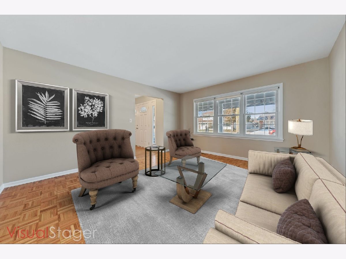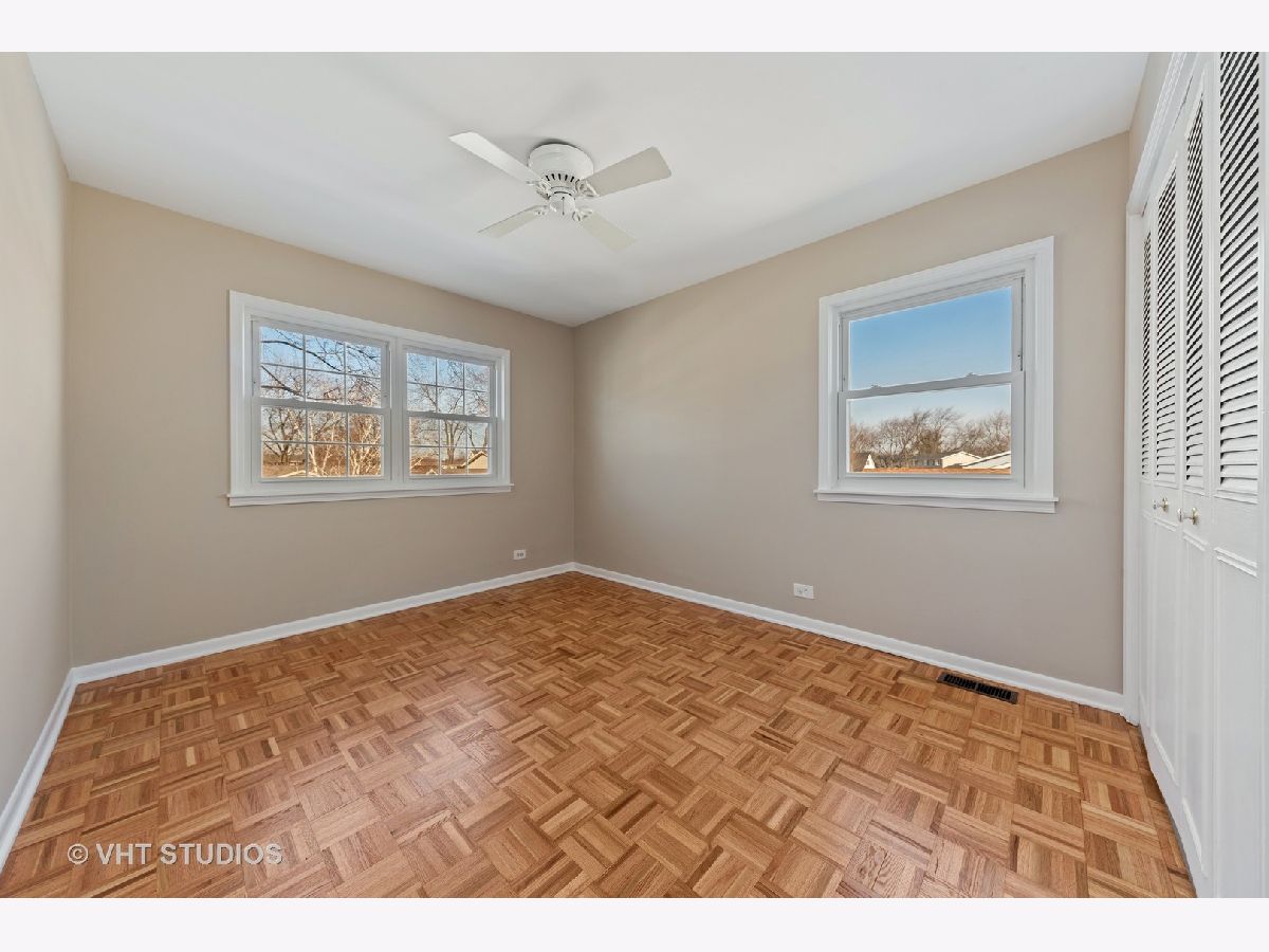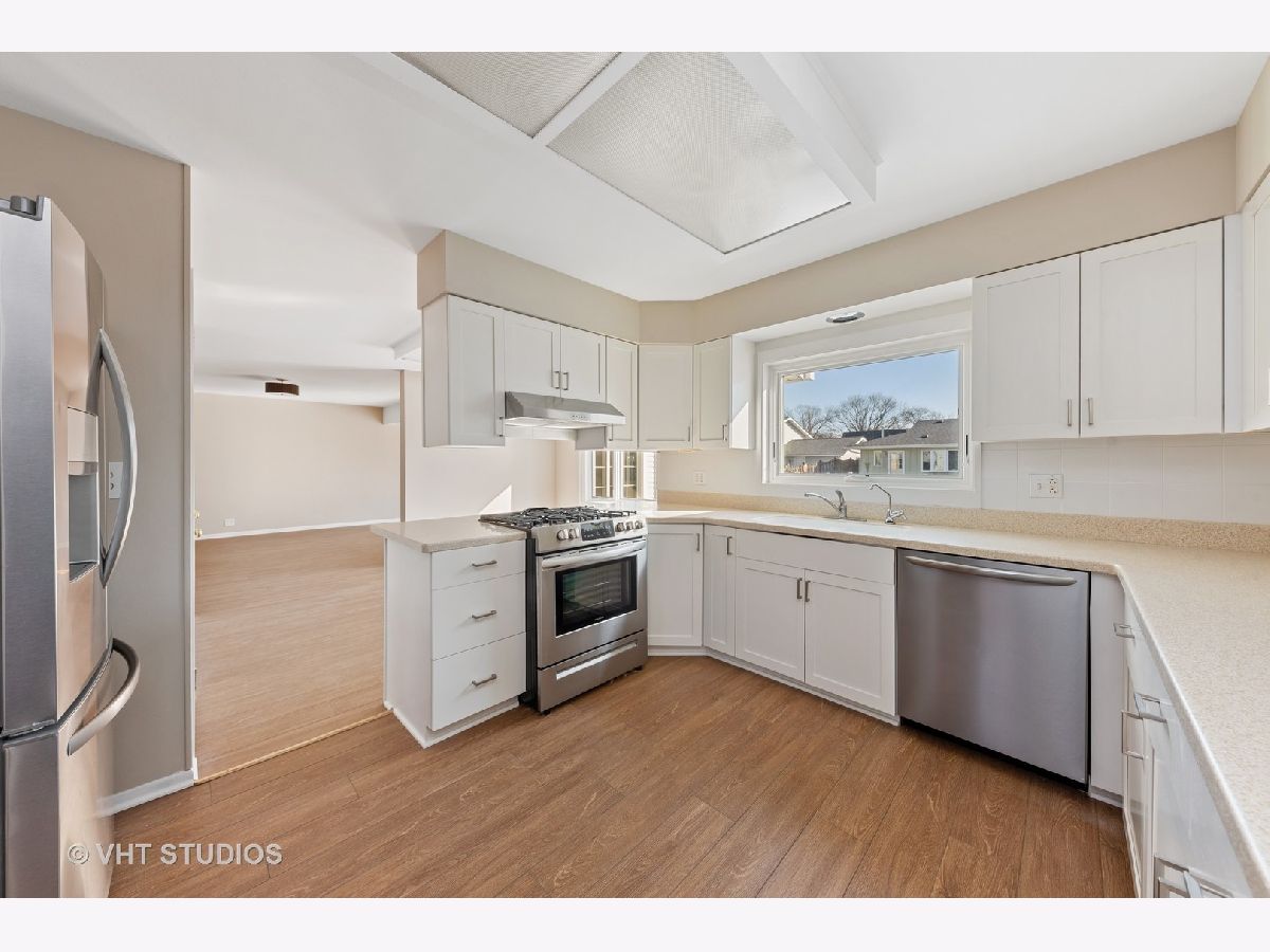 GREAT LOCATION!! All the work has been done! Move in ready 4-5 bedroom home in Elk Grove Village with expanded family room, expanded kitchen and large room addition currently being used as office space. Use the space to run a home business with private exterior door access off the side of garage and rough in for a full bath. Convert the office space in to a main floor master or in-law space if 5th bedroom is needed. All original parquet flooring has been sanded and sealed and new LVP flooring. Fresh paint and new stainless steel kitchen appliances. Just add a pergola and some exterior globe lighting on the patio and you will have the perfect outdoor entertaining space. Yard has winterized sprinkler system. There is no basement but plenty of storage in the large dedicated storage room in the garage.