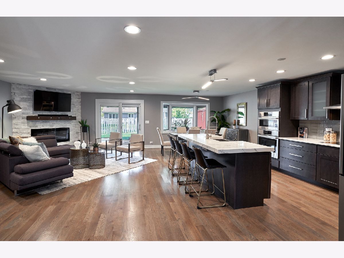 Beautiful updated ranch home with open floor plan , move in ready ! A chef's dream kitchen with Bosch appliances , Quartz countertop , wood cabinets and a full pantry . Plenty of room to entertain plus a second living area right of the entry. Harwood floors and newer carpet in the bedrooms. A large master bedroom with a wonderful master bath that has rain shower and a free standing tub and double sinks. Big walk in closet. Finished basement with extra storage space. Enjoy the outside on the covered patio . Save on your electric bill with the solar panels installed on the roof. High rated schools, quiet street, come see for yourself ! Furniture is available for sale. House was renovated in 2018 .Sold AS IS