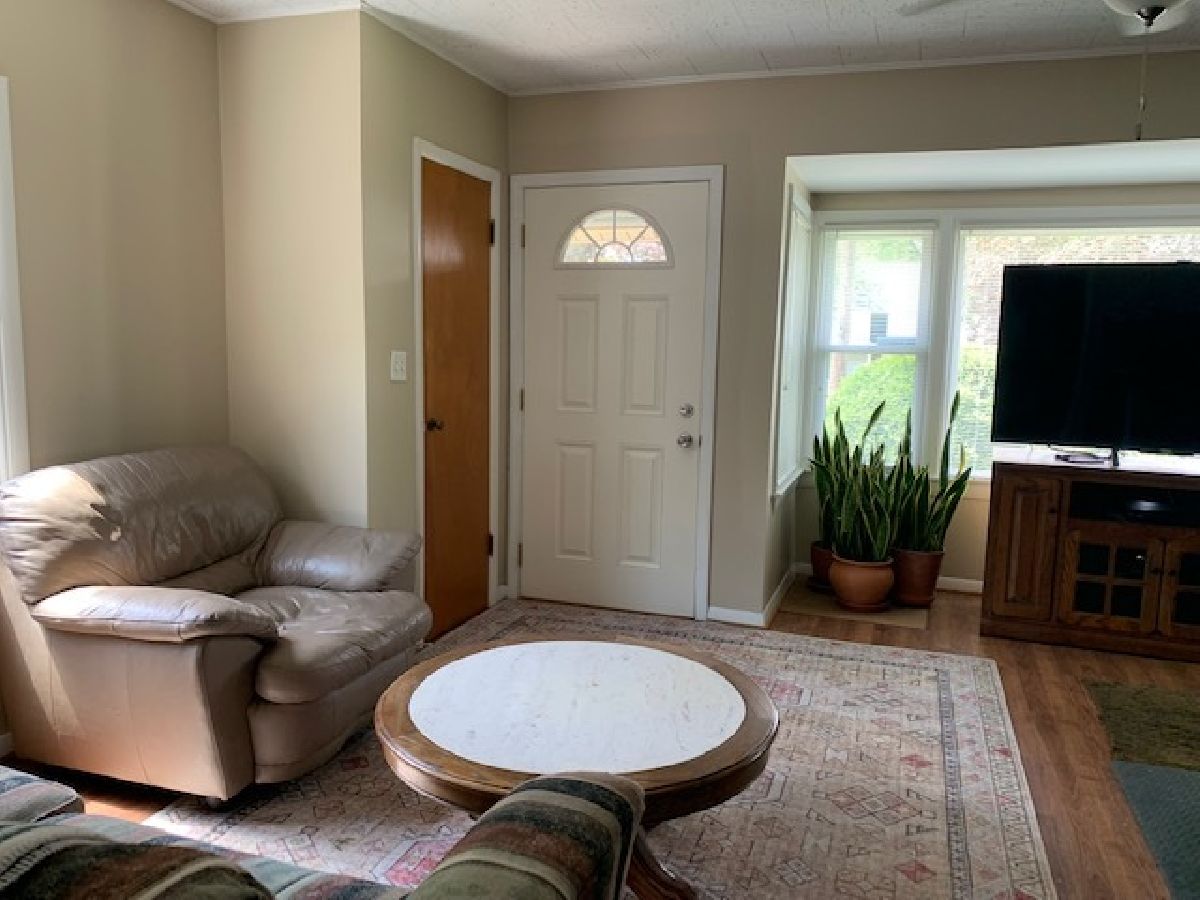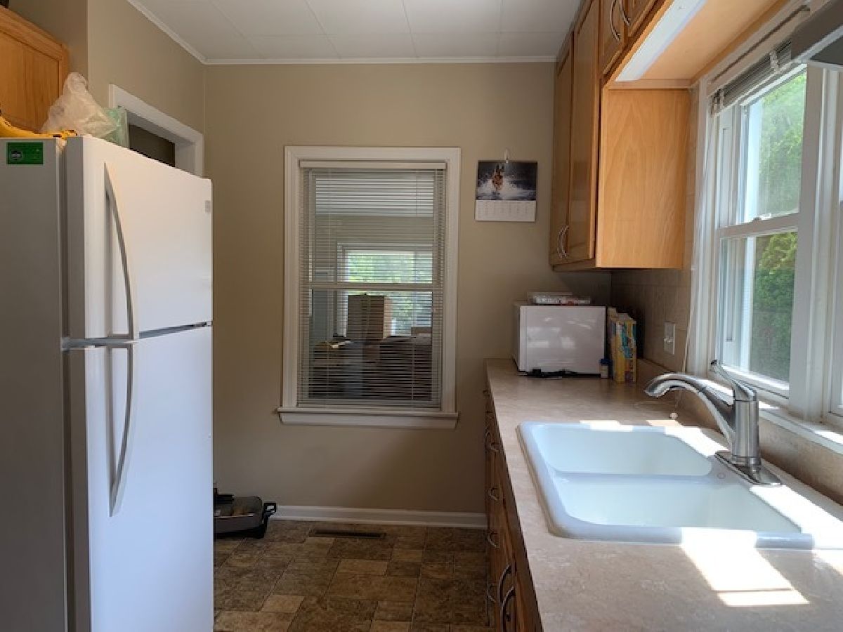 Very pleasant home, with large front room with lots of natural light. Galley style kitchen with space for a table. Bathroom has been updated. Master Bedroom and a smaller 2nd bedroom/office space. Full basement with laundry area and plenty of storage, finish as you would like. Screened in back porch with great views of the patio, the fenced lush lawn. Concrete Driveway with plenty of parking and over sized 1.5 car garage. The home has been well maintained.