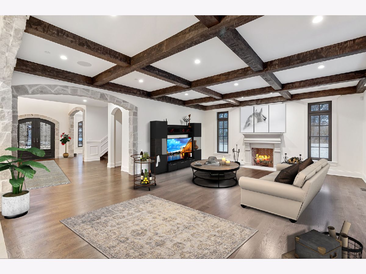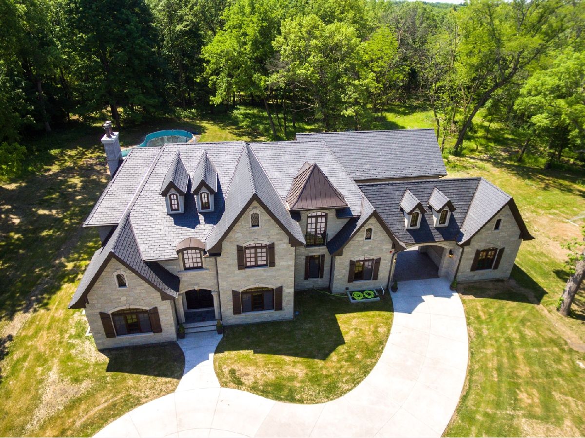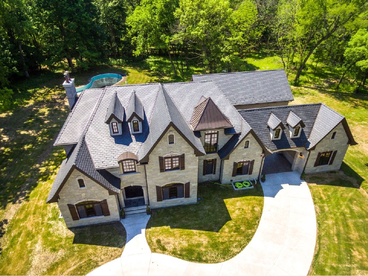 This beautiful home with an abundance of architectural finishes has it all!! Totally new construction in historic Long Grove area! Situated on seven secluded acres and sprawling 9,700 SF of living space with an abundance of natural sun light. Featuring five large bedrooms all featuring ensuites and each having each own unique illuminated tray ceiling making each room a nighttime retreat. All brick and stone home gives you the life of luxury with its magnificent finishes and master craftsmanship. This house comes complete with gleaming hardwood and marble floors, spacious stone archways, beam ceilings, crown molding. The heart of this home is a gourmet kitchen with an abundance of custom built cabinets, quartz countertops, Thermador stainless steel appliances, large island & exquisite lighting. A large patio off the luxurious kitchen for outdoor entertaining. The first floor features a large family room with a wood burning, gas fireplace, formal dining room, formal living room/office and bedroom with a full bathroom. Upstairs you can escape to the superior primary suites relaxing retreat with a freestanding soaker tub, walk in shower, double vanities and beautiful deck off the primary bedroom overlooking the wooded area. The masterfully finished basement boasts an open floor plan, wood/gas fireplace high ceilings, a room prepped for a sauna, exercise room and data room wired for your buyers creative entertainer ideas! Three HVAC zoned systems. Heated 5-car garage with an outlet for an electric car, that leads to the large mudroom with ample storage and laundry room. Home is equipped with an alarm, intercom & central vacuum system - this house is definitely a smart home! You'll find a relaxing retreat in this beautiful property.