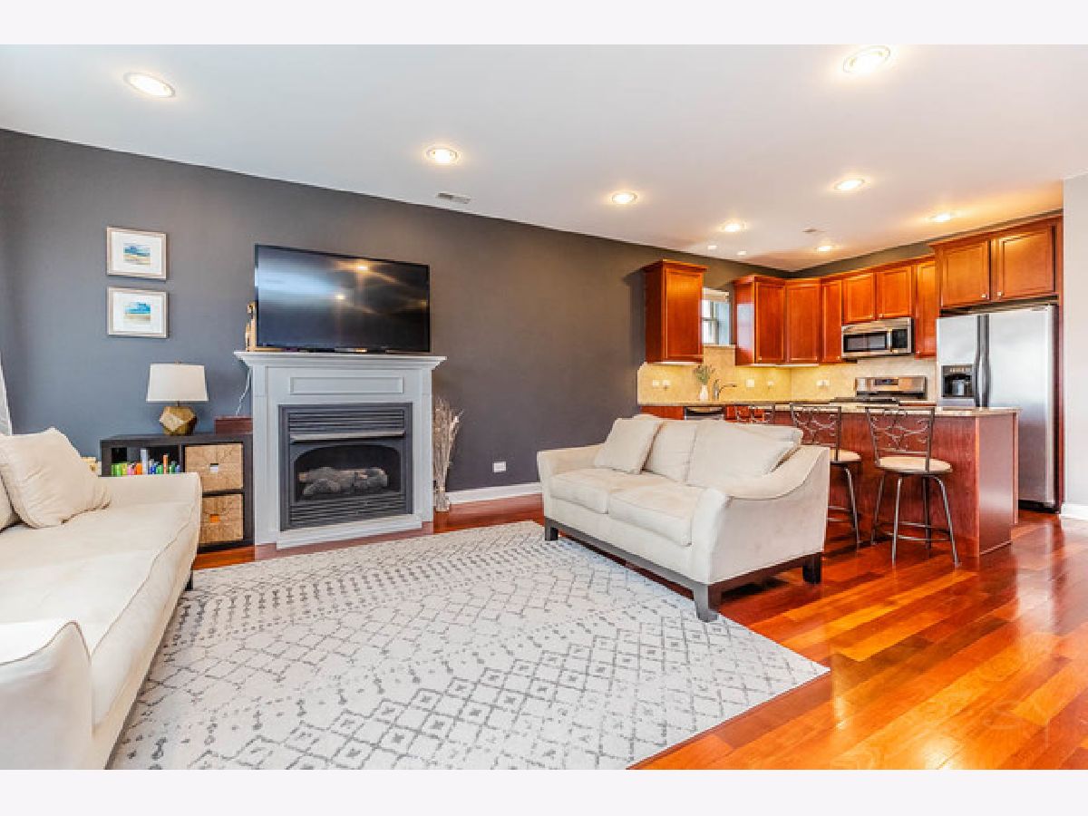 Spacious two bedroom, two bathroom top floor condo with tons of natural light and parking included in price. This home features a wide and open concept floor plan with hardwood floors throughout. The kitchen boasts stainless steel appliances including a brand new oven in 2020, granite countertops and an oversized eat-in kitchen island. A professionally installed surround sound system complete this wonderful space. Both bathrooms were recently updated and remodeled. The main bedroom features an en-suite Jacuzzi tub and separate shower. Open the sliding doors to your own private west-facing balcony (remodeled in 2018) for beautiful sunset views. In-unit washer/dryer. Recent building improvements include a new roof (Sept 2016) & tuckpointing (2018).