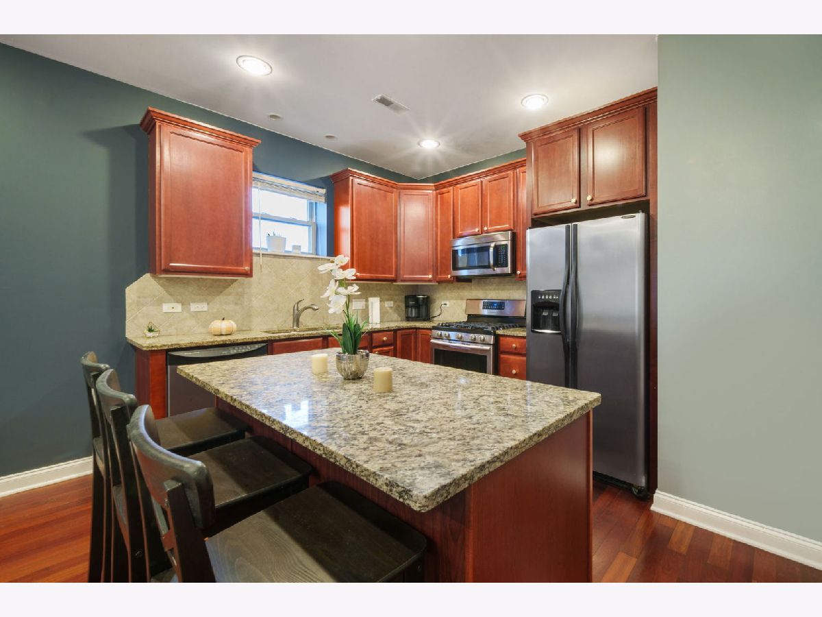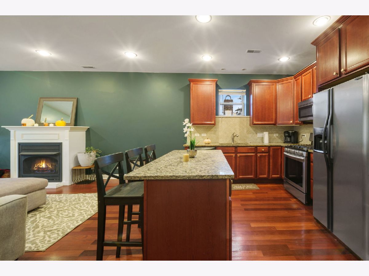 Spacious two bedroom, two bathroom top floor condo with tons of natural light and high ceilings. Your own parking space is included in the price. This home features a wide and open concept floor plan with hardwood floors throughout. The kitchen boasts stainless steel appliances including a brand new oven in 2020, granite countertops and an oversized eat-in kitchen island. A professionally installed surround sound system and a gas powered fireplace complete this wonderful space that is perfect for hosting guests. Both bathrooms were updated and remodeled in 2020. The main bedroom features an en-suite Jacuzzi tub and separate shower. Open the sliding doors to your own private west-facing balcony (remodeled in 2018) for beautiful sunset views. In-unit washer/dryer. Walking distance to many restaurants and shops. Recent building improvements include a new roof (Sept 2016) & tuckpointing (2018).