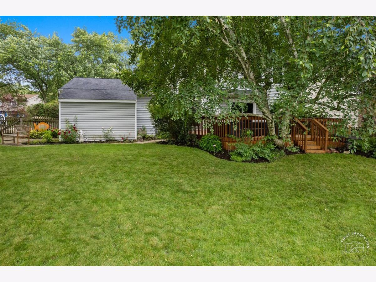 Updated, open & versatile 4 bedroom in Naper Carriage Hill. The wooded and fenced backyard abuts the grounds of the Naper Carriage Hill Swim/Tennis Club- with no backyard neighbors and wooded area next to the river. Privacy with easy access! Hardwood floors in the foyer, LR, and family room. The kitchen has undergone a full update over the years including granite counters, custom cabinetry, island, bar area with beverage/wine frig and upgraded appliances. Easy access to the deck from the breakfast room to take the party outside. The family room offers a fireplace and the living room can double as a second family room if desired. An updated 1/2 bath completes the main level. Upstairs you will find 4 good sized bedrooms and 2 full baths. Finished basement space offers a rec/game room and even a versatile 5th bedroom (or workout area). The fenced yard provides great play space, a beautiful custom deck and even a hidden away storage shed for your lawn tools, mower, etc. The 2 car+ garage is oversized and has built-in storage cabinets. Lots to love about this home and private location! The seller does own a pool bond and is willing to sell it outside of the sale of the home-so no need to go on a waiting list to enjoy this beautiful swim/tennis club! You will also enjoy close proximity to the Naper Blvd. Nichols Library branch. Scott School and Madison JH also within minutes of this home (and attendance boundaries include Naperville Central HS)-ALL part of the highly regarded Naperville District 203 Schools. There are many shopping and dining options less than 5 minutes away and easy access to expressways and to downtown Naperville.