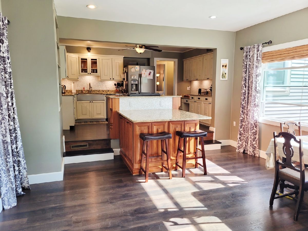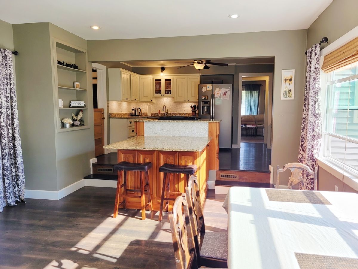 3 bedroom ranch home (1,688 SF), 2.5 bathroom on over a half acre in town. A mammoth 5+ car garage (24X64). The garage is heated, offers 9' ceilings and has the convenience of a half bath, utility sink and bar area! Custom 400 SF kitchen with granite countertops. Brand new engineered hardwood flooring in dining room. Main level has a generous sized mudroom with updated lighting, custom kitchen, master bedroom offering a large walk in closet, and a main level modernized bathroom. Spacious laundry with tile floor, a family room and a full bathroom in the basement. Plenty of storage in the two storage areas. Awesome fenced in backyard is great for kids and pets! Great location near the hospital! Contingent on seller finding home.
