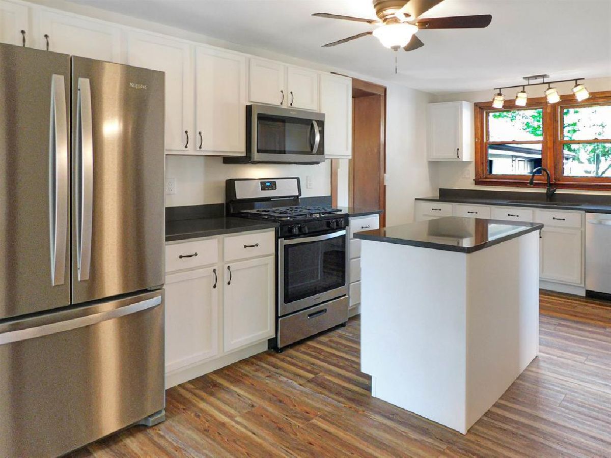 Beautiful historic 1880 limestone home with addition in the Charming Village of Rockton, refinished on trend. Situated in the highly ranked Hononegah High and Rockton Grade School Districts. Greet your guests in the double French door entryway with a roomy coat closet! Prepare your meals in the gorgeous brand new kitchen that features LVP flooring, oak cabinets in white with pantry and island, gleaming Quartz countertops, accents in bronze pulls, lighting, ceiling fan, and a pull down faucet at double stainless steel sink. NEW STAINLESS STEEL WHIRLPOOL APPLIANCES INCLUDED. French door refrigerator, dishwasher, built-in microwave, and gas range, with 5 year warranty to buyer! Adjacent to kitchen a bright, sunny formal dining room with wood floor and the perfect main floor office featuring windows with a front view, shelving and storage cabinet and a hardwood floor. The first floor full upgraded bathroom includes tub/shower, nickel fixtures, and plenty of linen storage. The very spacious living room is perfect for entertaining, complete with LVP flooring, deep windowsills, closet, and access to the attached garage. Steps to the upper floor are newly carpeted and lead to two bedrooms with hardwood floors, multiple closets, and a half bath. This wonderful home has been professionally painted both inside and out, including the very charming refurbished Gazebo in the back yard. The yard has a sunny garden spot, large shade tree with patio blocks, and is bordered with a flower garden. The attached garage boasts a newly installed insulated garage door with a 1 year manufacturer warranty, motion detector and keyless entry pad. Bonus four car tandem garage with opener provides tons of additional storage!! Enjoy all the Village of Rockton has to offer! Walk or bike to nearby downtown shops, restaurants, pubs, parks, services, library, and community pool. Join your neighbors at the many events, parades, and festivals throughout the year!