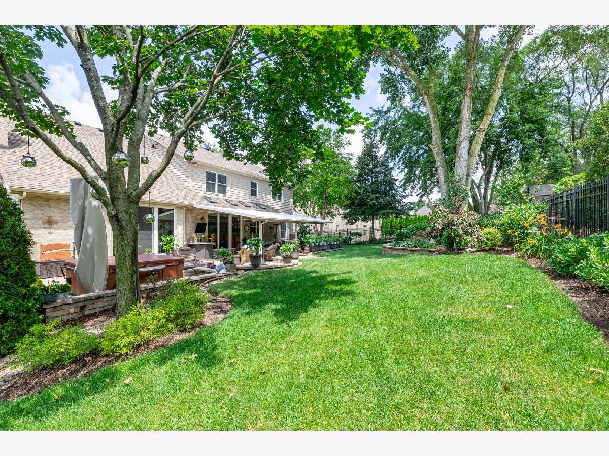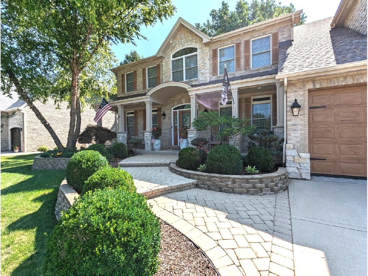 Welcome home to a new standard of luxury in this exquisite former-model home! Bright open-airy floor plan with modern luxuries throughout; stunning rich hardwood flooring, upgraded rounded drywall corners, crown molding, wainscoating, vaulted ceilings, and top-of-the-line appliances. Stunning kitchen with SUB ZERO, WOLF, AND ASKO appliances, granite countertops, professional-grade hood, pot filler, warming drawer, under cabinet lighting, skylight, and tons of storage.Full basement with roughed-in plumbing. Head upstairs to the expansive second floor boasting 4 BR and 3 BA. Relax in the serene primary suite with seating room, and large WIC with an abundance of storage. The luxurious primary bath offers a spacious shower with a bench, spa soaking tub, marble countertops, and double vanity. Retreat to the custom fully fenced backyard lushly landscaped with fresh mulch being laid in July and abundant in-ground crops including cucumbers, zucchinis, tomatoes, strawberries, grapes, and a peach tree. Entertain your guests on the stunning patio featuring an outdoor kitchen, attached awning with fan/light (2), fire pit, entertainment cabinet with granite countertop that holds stereo, towel warming drawer, and electronics for the sound system (included), tv (included), rock speakers (included) and hot tub (included, as is, works). Custom-finished heated garage, drywalled, painted, and coated/painted floor, equipped with a charger specifically designed for your electric car (Tesla). Other features include an attic fan (as is), a backup sump pump, a new roof (2017), and a full-size unfinished basement with 9' ceilings and a rough-in for the bathroom. SUPERB FINISHES, Superior living at its finest. A MUST SEE!