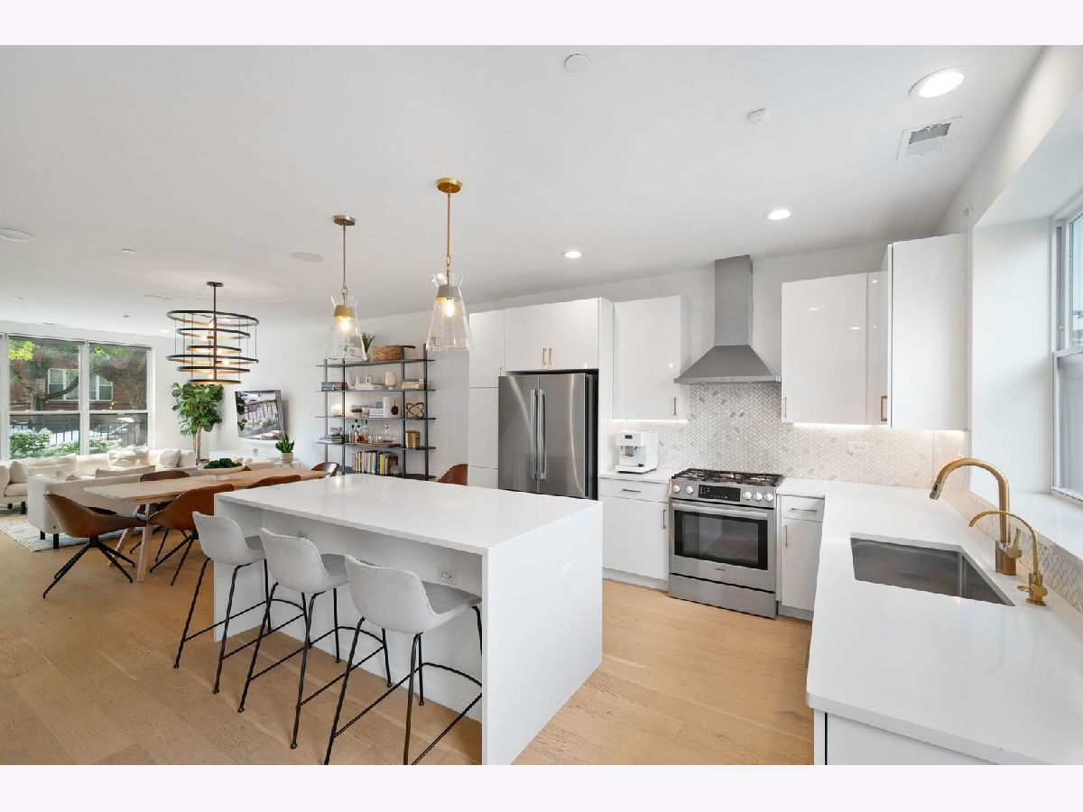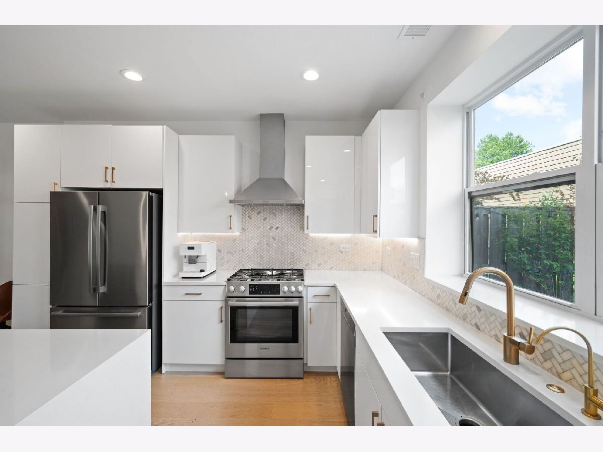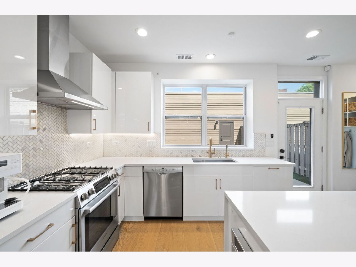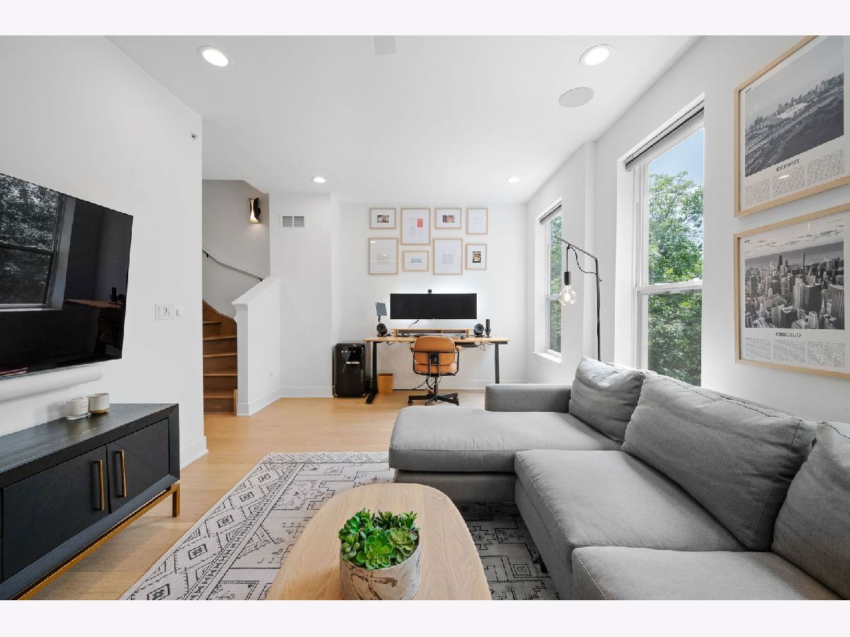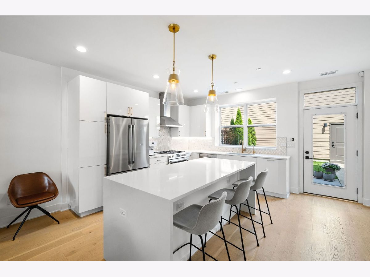 STUNNING URBAN STYLE TOWNHOUSE IN AVONDALE WITH THREE LEVELS OF LIVING, PRIVATE ROOFDECK, PRIVATE BACKYARD, AND TWO CAR GARAGE. THIS NEWER CONSTRUCTION UNIT (2020 BUILD) IS HIGHLY UPGRADED AND MOVE-IN READY. LOCATED ON A QUIET TREE LINED ONE-WAY STREET FEATURING GATED FRONT ACCESS TO A PRIVATE ENTRANCE. FIRST FL FEATURES KITCHEN WITH MODERN FLAT PANEL WHITE CABINETRY WITH ROLL-OUT DRAWERS AND BUILT-IN FEATURES, QUARTZ COUNTERS, BOSCH SS APPLIANCES, ISLAND WITH BREAKFAST BAR, BEVERAGE REFRIGERATOR AND BACKSPLASH. CUSTOM WALK-IN PANTRY AND OPEN CONCEPT LIVING AND DINING ROOMS WITH CUSTOM BUILT-IN SHELVING. FIRST FL POWDER ROOM, AND REAR ENTRY "MUDROOM" BUILT-INS. THE SECOND FLOOR FEATURES TWO SECONDARY BEDROOMS WITH CUSTOM WALK-IN CLOSETS, FULL BATH WITH DUAL SINK VANITY AND UPGRADED SHOWER TILE SURROUND, LAUNDRY ROOM WITH CUSTOM CABINETRY AND TILE, AND UTILITY ROOM WITH ADDITIONAL STORAGE. THIRD LEVEL LARGE PRIMARY SUITE WITH CUSTOM WALK-IN CLOSET, LARGE BATH WITH DUAL SINK VANITY, WALK-IN SHOWER AND SEPARATE WATER CLOSET. THIRD LEVEL ALSO FEATURES A VERSATILE LOUNGE/DEN/OFFICE SPACE WITH CUSTOM BUILT-IN BOOKCASES WITH LED LIGHTING. INTERIOR STAIRS TO PRIVATE ROOFDECK WITH SKYLINE VIEWS. NOTABLE UPGRADES INCLUDE WIDEPLANK HARDWOOD FLOORING THROUGHOUT, SOLID CORE INTERIOR DOORS, RECESSED LIGHTING, INTEGRATED SONOS SPEAKER SYSTEM AND DIMMER SWITCHES, ALL INTERIOR WINDOW TREATMENTS, REVERSE OSMOSIS SYSTEM IN KITCHEN, NEW KOHLER TOILETS, FRESHLY REFINISHED ROOFDECK, FRONT AND BACKYARD LANDSCAPING WITH TURF, PAVER TILED PATIO, LANDSCAPE WATERING SYSTEM TO ROOF AND BACKYARD, ALL CUSTOM INTERIOR LIGHTING, GARAGE STORAGE SHELVING, AND EV CHARGING SYSTEM. CONVENIENT LOCATION NEAR BLUE LINE, METRA, I-90 INTERSTATE ACCESS, AND CLOSE TO TRENDY DINING AND ENTERTAINMENT OPTIONS IN AVONDALE AND LOGAN SQUARE.