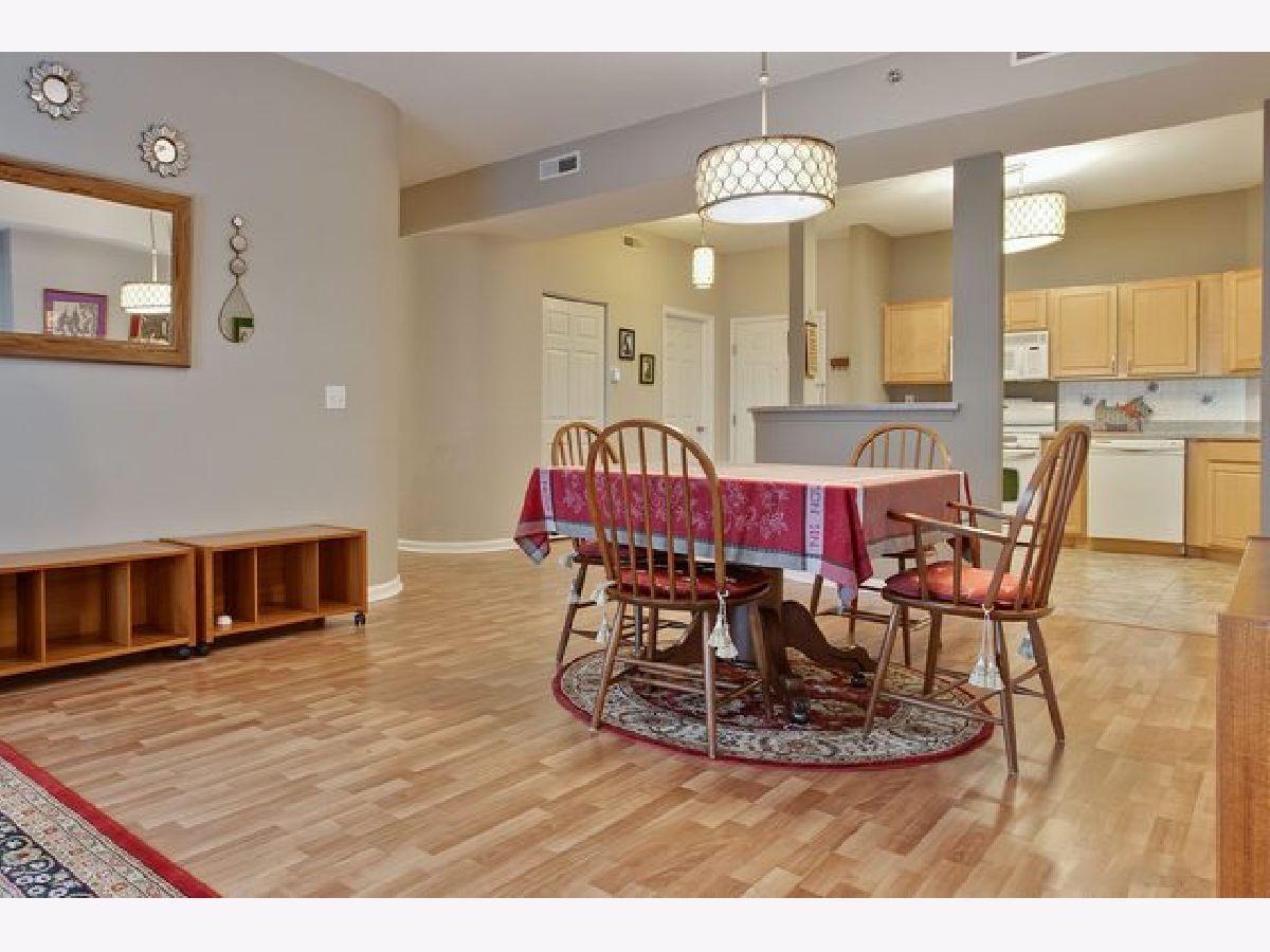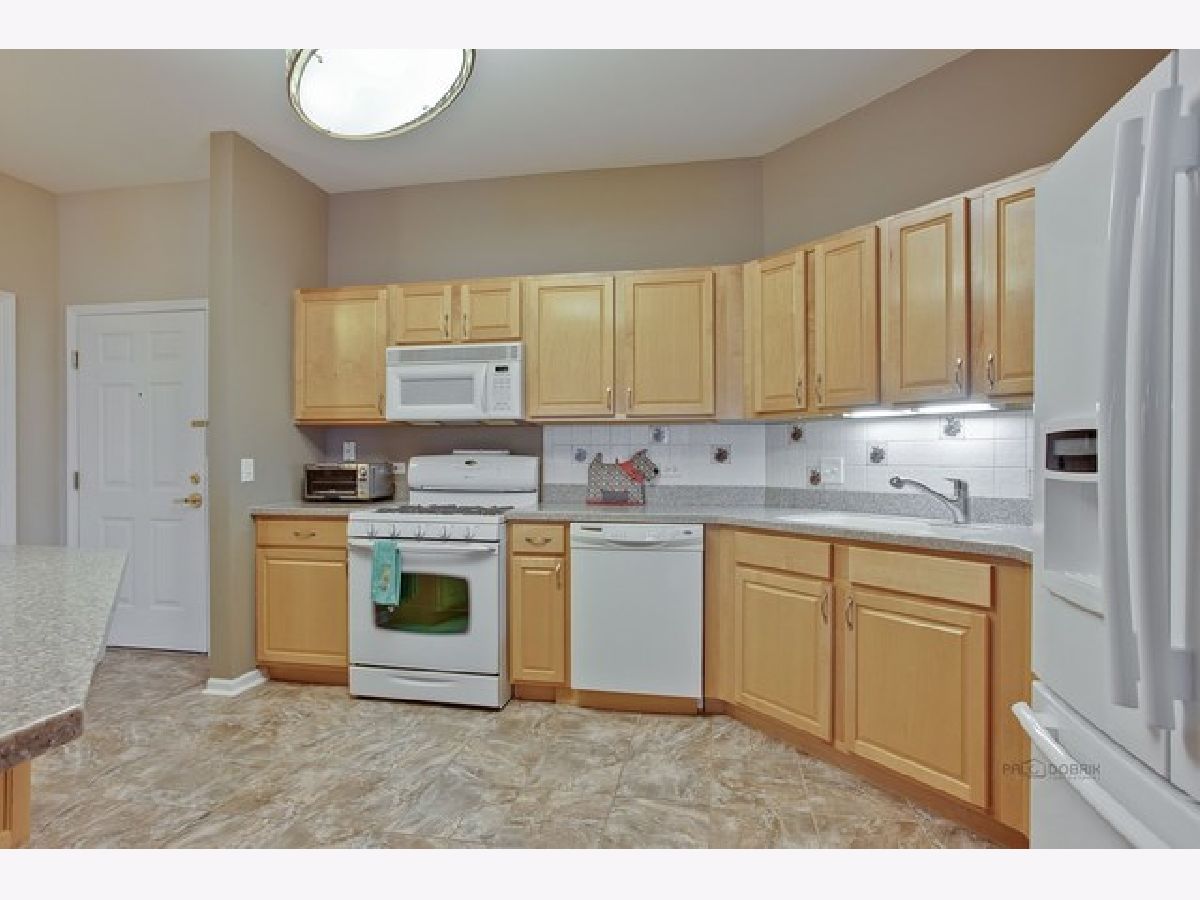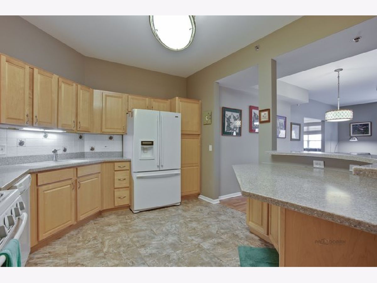 This beautiful condo unit will not disappoint! Located on the top floor with eastern views, a large balcony and storage closet! Neutral warm colors throughout. Beautiful kitchen with Corian Counters and white appliances that open to the dining and living room with a bonus Den/TV/office room. Master bedroom has sliders to balcony, walk in closet & large bathroom with tub & separate shower & double sink vanity . "Elfa" shelving in closets and comfortable heated floors throughout. Pet friendly building with parks, shopping, restaurants, schools. Easy access to IL-53,I-90 & 290 & short drive to Metra station. Heated garages space #12 comes with the unit plus a second storage spot. Hurry this unit won't last!!