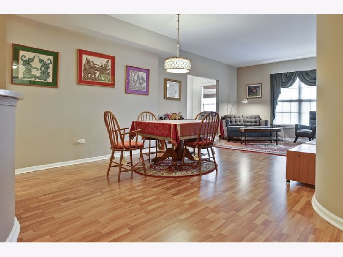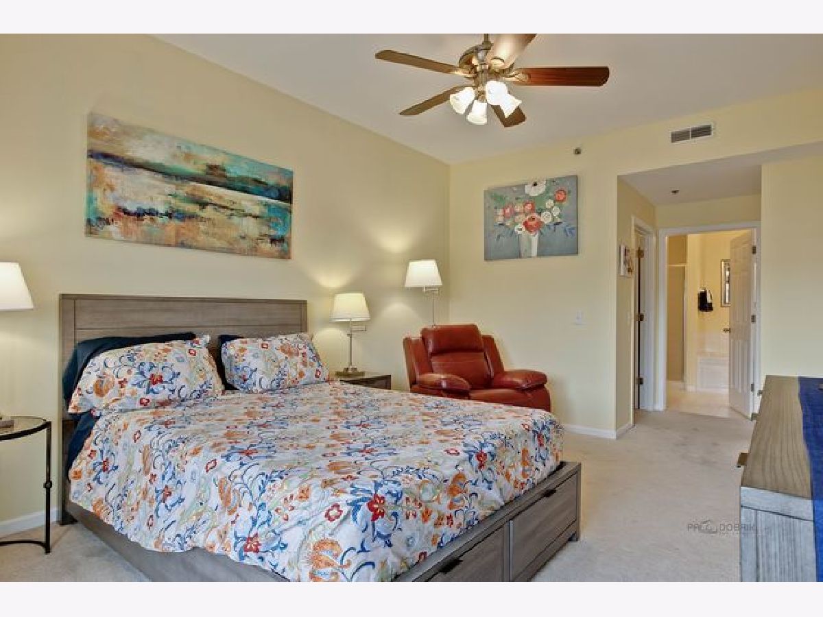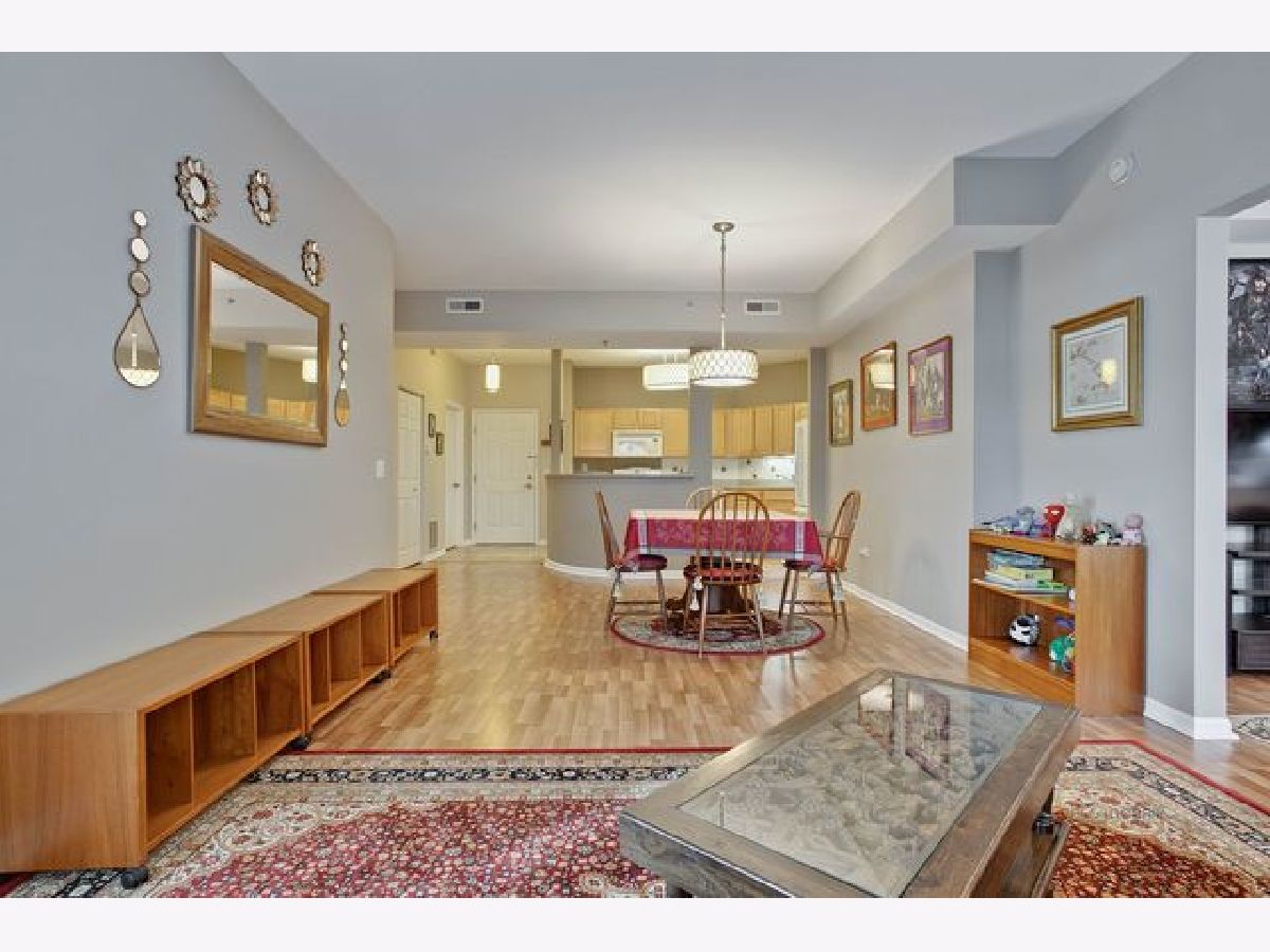 This beautiful condo unit will not disappoint! Located on the top floor with eastern views, a large balcony and storage closet! Neutral warm colors throughout. Beautiful kitchen with Corian Counters and white appliances that open to the dining and living room with a bonus Den/TV/office room. Master bedroom has sliders to balcony, walk in closet & large bathroom with tub & separate shower & double sink vanity . "Elfa" shelving in closets and comfortable heated floors throughout. Pet friendly building with parks, shopping, restaurants, schools. Easy access to IL-53,I-90 & 290 & short drive to Metra station. Heated garages space #12 comes with the unit plus a second storage spot. Hurry this unit won't last!!