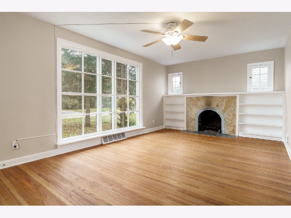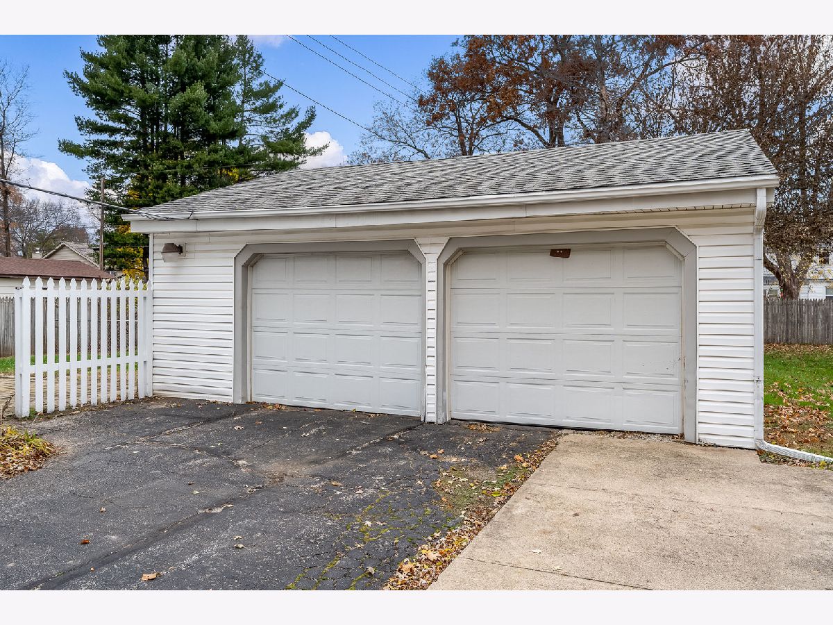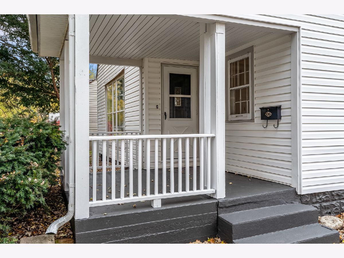 Welcome to this charming home with great curb appeal. Step onto the adorable front porch, freshly painted and crisp looking, and enter through the modern black front door. Inside, you'll find a large living room with lots of windows, allowing for plenty of natural light. Cozy up to the wood burning fireplace on those chilly evenings. The huge eat-in kitchen and dining area offer ample storage, with built-in shelves and a cute built-in bench. The stunning hardwood floors throughout the home adds a touch of elegance. The interior of the home has been freshly painted. There are three bedrooms on the upper level, including the primary bedroom, which shares a remodeled bathroom. The other two bedrooms have hardwood floors under the new carpet. Partially finished basement. The house sits on a double lot that is fenced in and has a 2.5 detached garage. All appliances stay