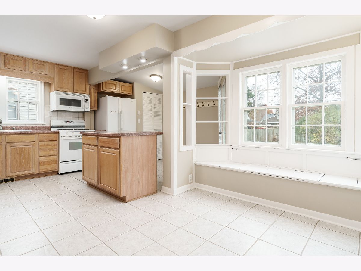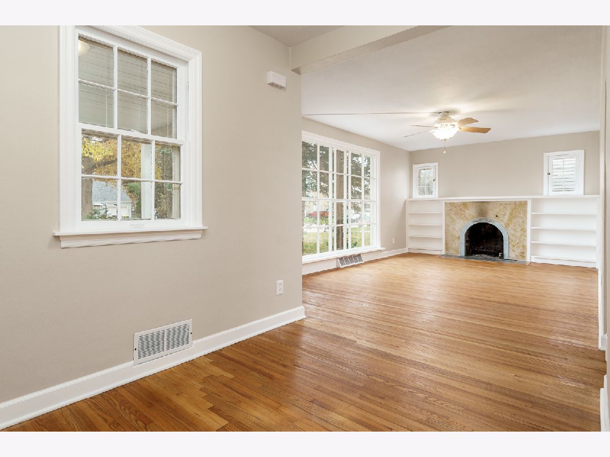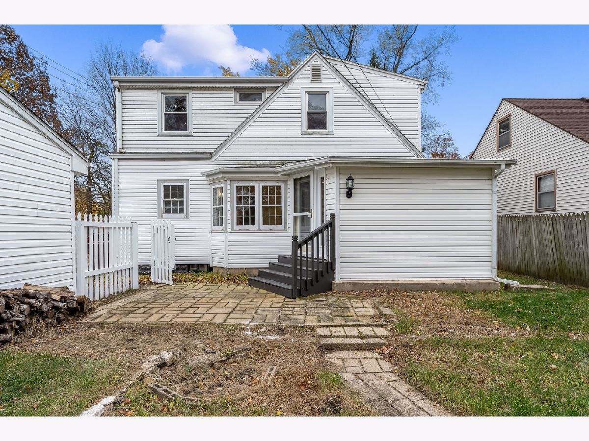 Welcome to this charming home with great curb appeal. Step onto the adorable front porch, freshly painted and crisp looking, and enter through the modern black front door. Inside, you'll find a large living room with lots of windows, allowing for plenty of natural light. Cozy up to the wood burning fireplace on those chilly evenings. The huge eat-in kitchen and dining area offer ample storage, with built-in shelves and a cute built-in bench. The stunning hardwood floors throughout the home adds a touch of elegance. The interior of the home has been freshly painted. There are three bedrooms on the upper level, including the primary bedroom, which shares a remodeled bathroom. The other two bedrooms have hardwood floors under the new carpet. Partially finished basement. The house sits on a double lot that is fenced in and has a 2.5 detached garage. All appliances stay
