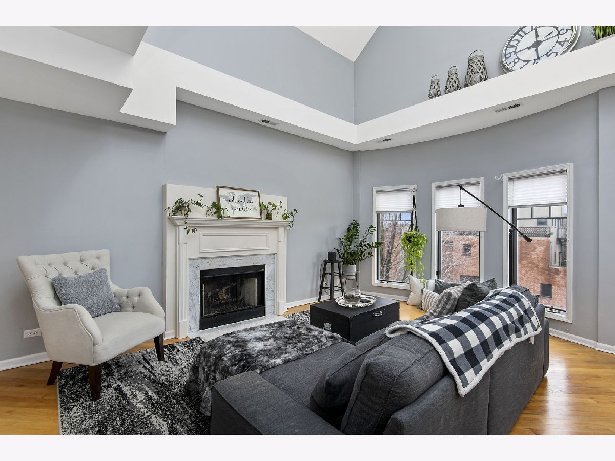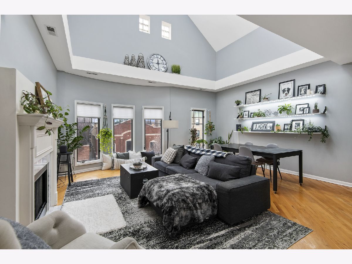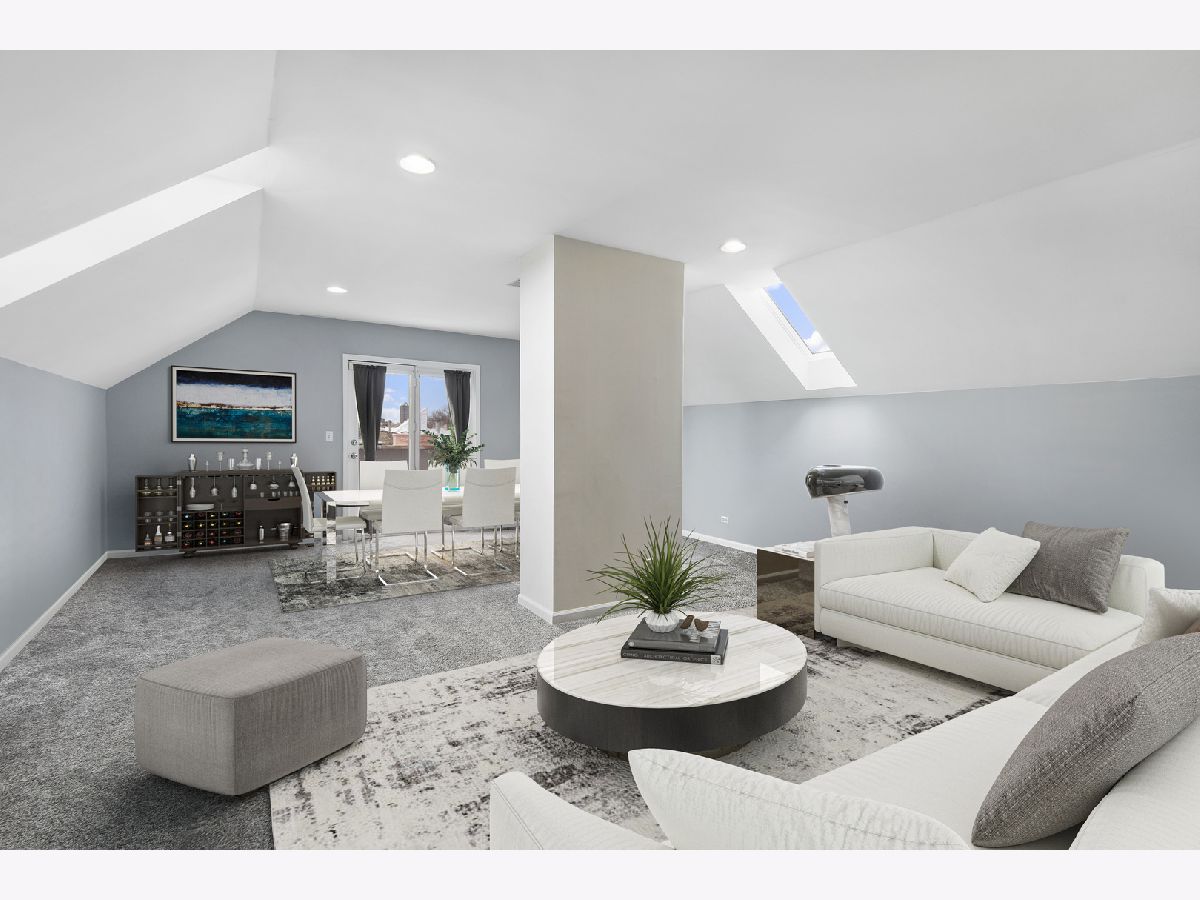 Bright and sunny duplex-up in Lakeview with skylights galore and vaulted 23' ceilings! Featuring three bedrooms plus a den and two bathrooms. Enjoy an all white kitchen with brand new quartz countertops/stainless steel appliances and a living space with a gas fireplace and plenty of room for a large dining table. The lower level also had a guest bedroom, guest bathroom along with the primary suite. Upstairs you will find a bonus office that leads into a massive third bedroom. This third bedroom is gigantic! Can be used as bedroom, multipurpose room, or even an additional living room. There are two large outdoor spaces- one off the master on the lower level and one off the upstairs- great for entertaining on those gorgeous summer nights. Unit comes with one assigned garage space. Additional common storage for the building. As for the location.... FANTASTIC! Walking distance to the Belmont red/brown/purple line. Centrally located between the restaurants/shopping Lakeview has to offer as well as being blocks from Southport Corridor. New Whole Foods right up the street as well as Target. Location has all of the conveniences!!