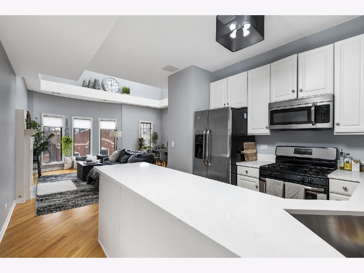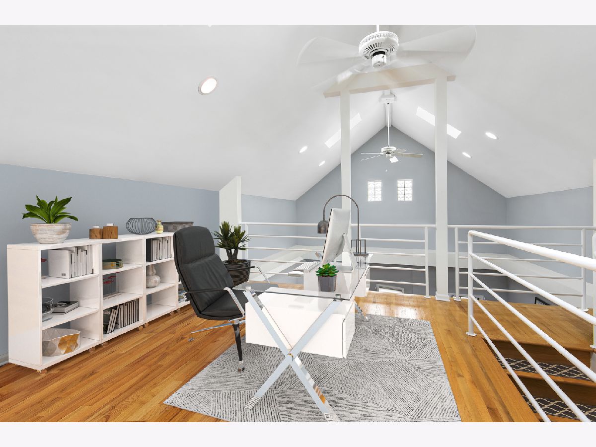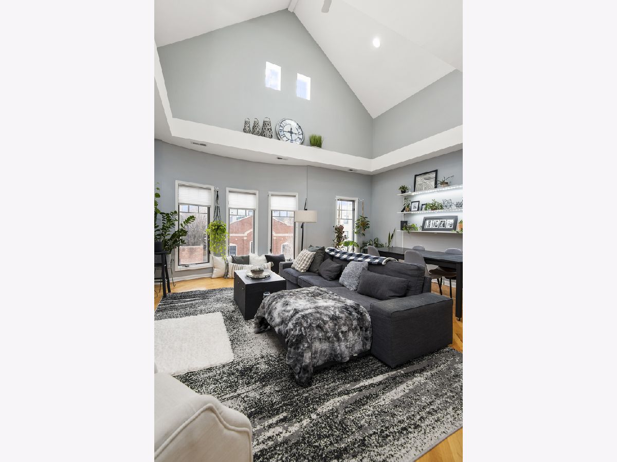 Bright and sunny duplex-up in Lakeview with skylights galore and vaulted 23' ceilings! Featuring three bedrooms plus a den and two bathrooms. Enjoy an all white kitchen with brand new quartz countertops/stainless steel appliances and a living space with a gas fireplace and plenty of room for a large dining table. The lower level also had a guest bedroom, guest bathroom along with the primary suite. Upstairs you will find a bonus office that leads into a massive third bedroom. This third bedroom is gigantic! Can be used as bedroom, multipurpose room, or even an additional living room. There are two large outdoor spaces- one off the master on the lower level and one off the upstairs- great for entertaining on those gorgeous summer nights. Unit comes with one assigned garage space. Additional common storage for the building. As for the location.... FANTASTIC! Walking distance to the Belmont red/brown/purple line. Centrally located between the restaurants/shopping Lakeview has to offer as well as being blocks from Southport Corridor. New Whole Foods right up the street as well as Target. Location has all of the conveniences!!
