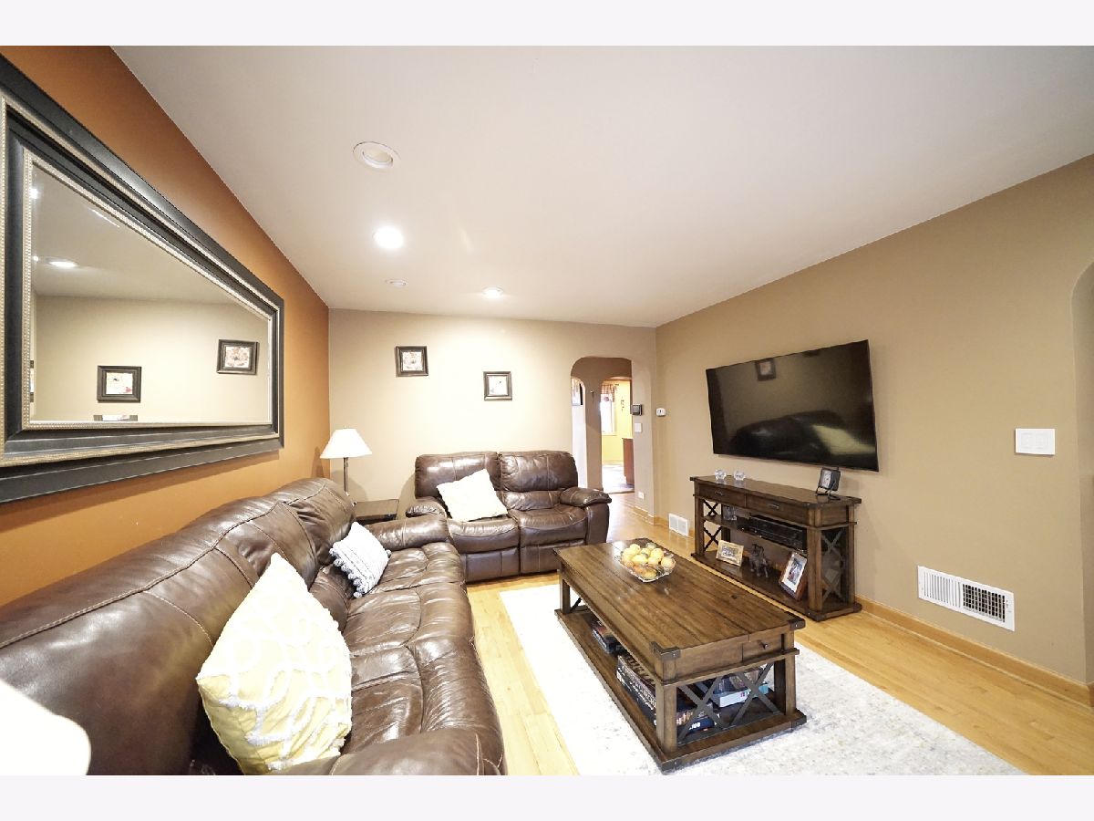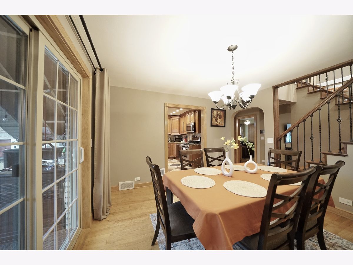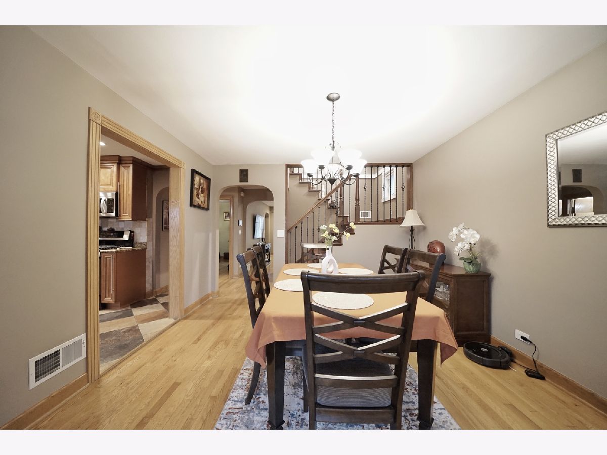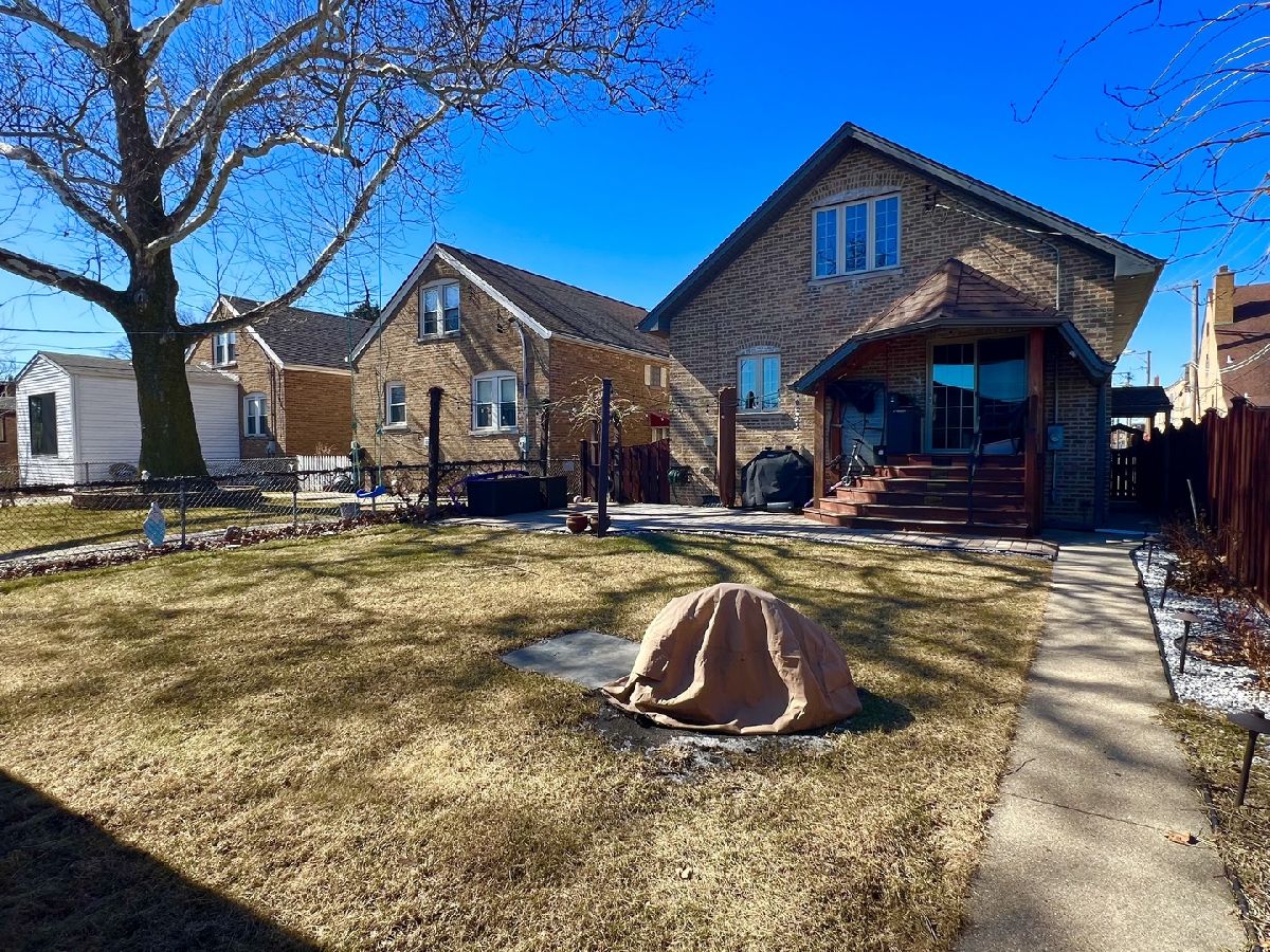 Beautifully maintained and exceptionally well-kept brick English-style home with a total of 5 bedrooms and 2 full bathrooms. The 1st floor showcases a spacious and inviting layout with a separate living and dining room, enhanced by a large sliding door that leads to a charming backyard. Throughout both the 1st and 2nd floors, gleaming hardwood floors add warmth and elegance. The generously sized kitchen features oak cabinets, stainless steel appliances, and granite countertops, providing both style and functionality. A 1st-floor bedroom and a full ceramic-tiled bathroom add convenience and versatility to the space. Ascending the beautifully crafted oak staircase, the 2nd floor reveals 2 additional bedrooms and a recently remodeled full bathroom, completed in 2020, featuring a stand-up glass shower and modern light fixtures. The fully finished basement offers even more living space with 2 additional bedrooms, a spacious family room, and cabinets that create the potential for an in-law arrangement. Numerous updates enhance the home's value, including replaced windows and sliding doors, updated electrical and plumbing systems, and a partially brand-new roof. The backyard provides a private and serene retreat, fully fenced for added privacy. A brand-new oversized 2.5-car garage, completed in 2023, adds both convenience and ample storage. Additional improvements include a hot water tank installed in 2023 and a stylish brick patio completed in 2020. Perfectly situated in a prime location, this home offers easy access to shopping and transportation, making it an exceptional choice for those seeking both comfort and convenience