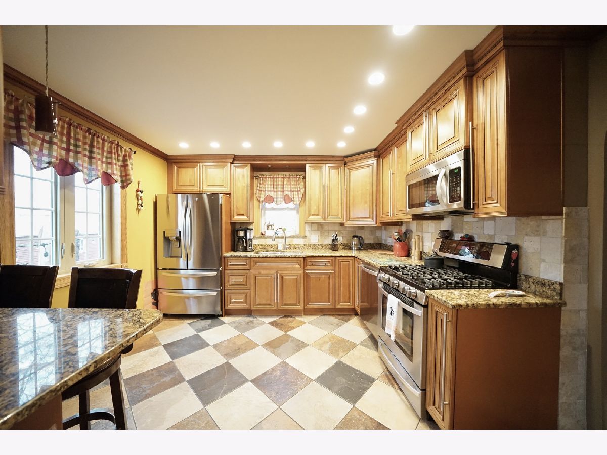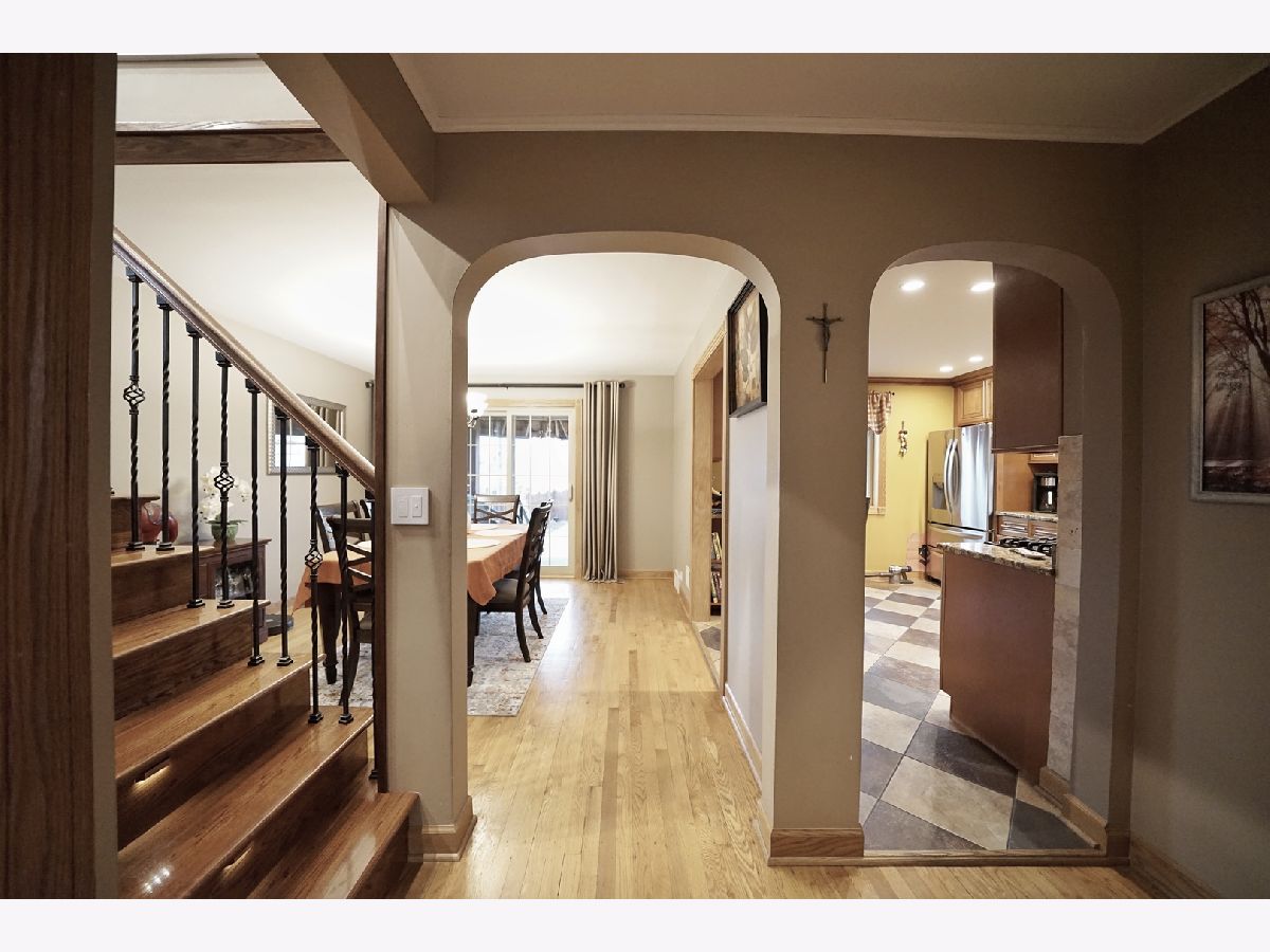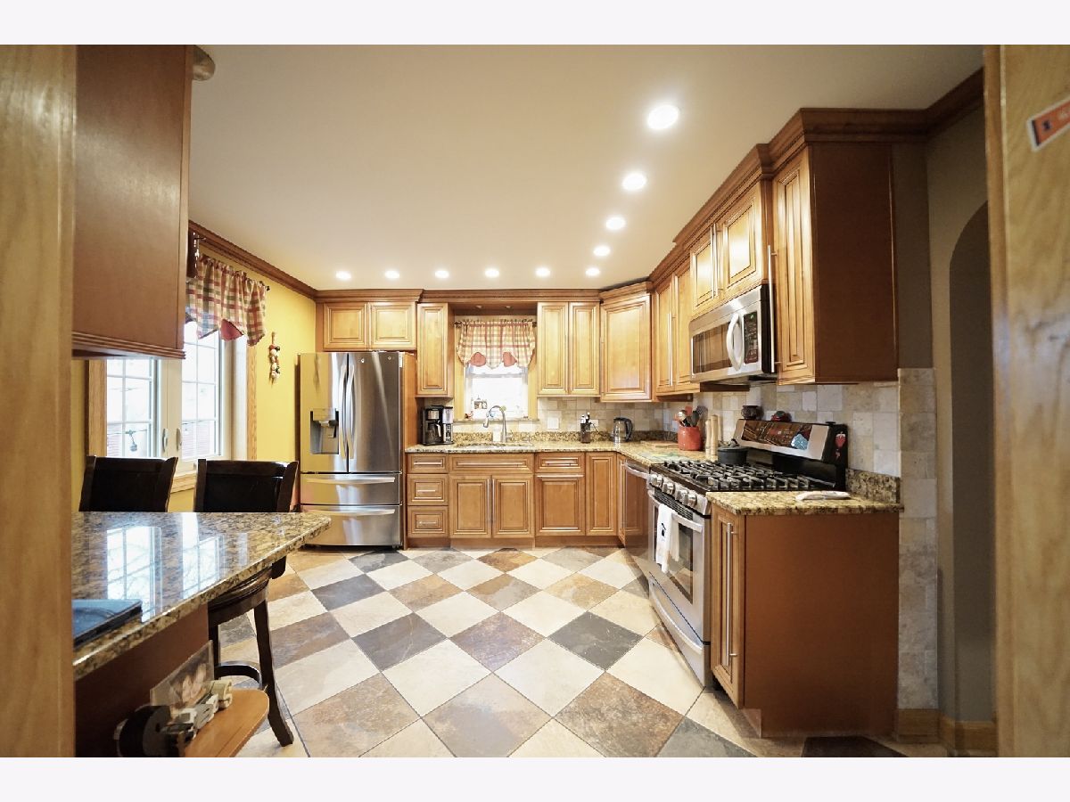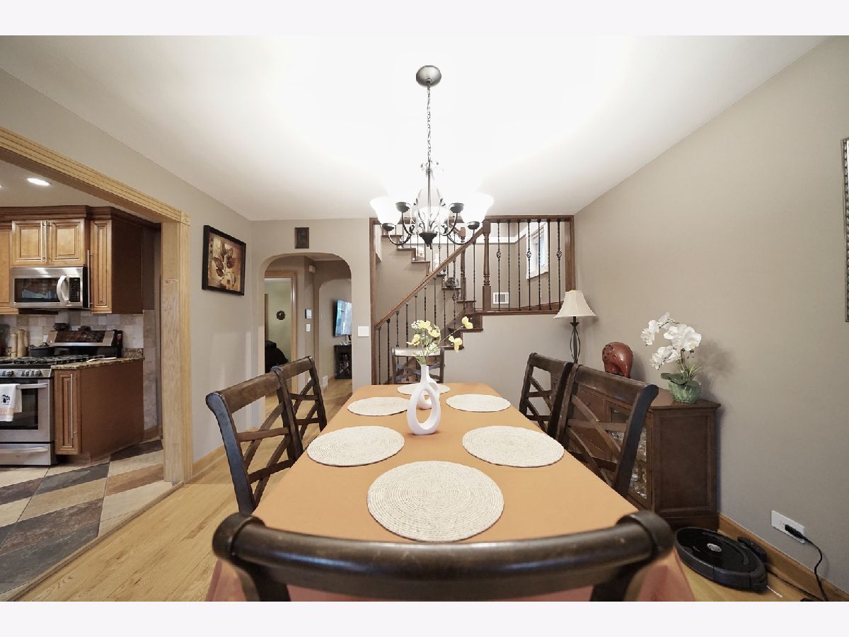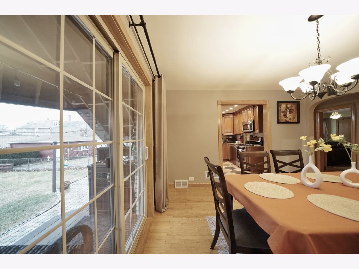 Beautifully maintained and exceptionally well-kept brick English-style home with a total of 5 bedrooms and 2 full bathrooms. The 1st floor showcases a spacious and inviting layout with a separate living and dining room, enhanced by a large sliding door that leads to a charming backyard. Throughout both the 1st and 2nd floors, gleaming hardwood floors add warmth and elegance. The generously sized kitchen features oak cabinets, stainless steel appliances, and granite countertops, providing both style and functionality. A 1st-floor bedroom and a full ceramic-tiled bathroom add convenience and versatility to the space. Ascending the beautifully crafted oak staircase, the 2nd floor reveals 2 additional bedrooms and a recently remodeled full bathroom, completed in 2020, featuring a stand-up glass shower and modern light fixtures. The fully finished basement offers even more living space with 2 additional bedrooms, a spacious family room, and cabinets that create the potential for an in-law arrangement. Numerous updates enhance the home's value, including replaced windows and sliding doors, updated electrical and plumbing systems, and a partially brand-new roof. The backyard provides a private and serene retreat, fully fenced for added privacy. A brand-new oversized 2.5-car garage, completed in 2023, adds both convenience and ample storage. Additional improvements include a hot water tank installed in 2023 and a stylish brick patio completed in 2020. Perfectly situated in a prime location, this home offers easy access to shopping and transportation, making it an exceptional choice for those seeking both comfort and convenience