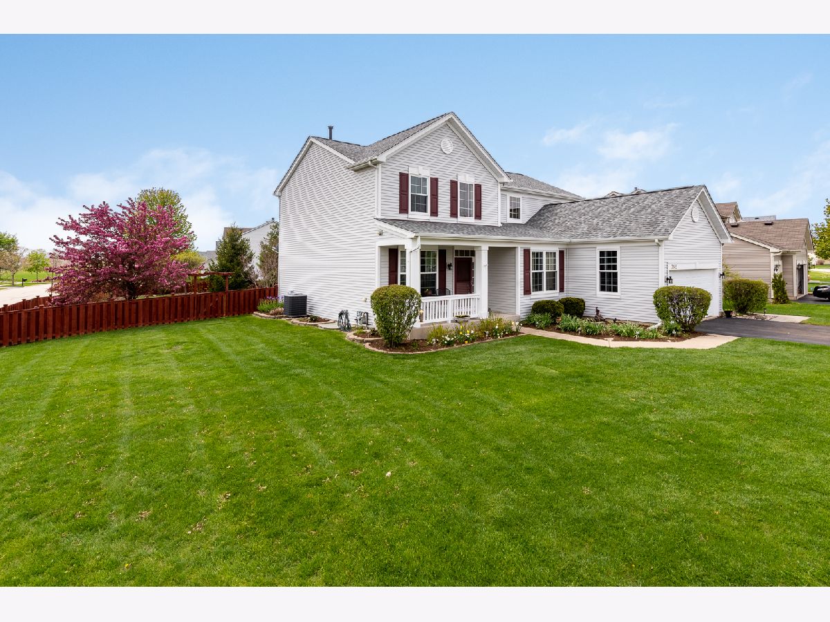 Huge, beautifully landscaped corner lot in Montgomery. At this home you are greeted by its charming front porch and entryway which leads into your contemporary floor plan. The 2-story foyer opens up to the formal living and dining rooms, graciously into the kitchen and has sightlines to the upstairs. The open concept kitchen offers 42" cherry cabinets with outlets on top for additional lighting, recessed lighting, pantry, black appliances, center island, pendant lighting and dining area that has sliding glass doors to the patio. Flowing right into the family room - all set with surround sound speakers. Other great features on the first floor are the office, powder room and laundry room. Upstairs you have a cozy loft for reading, the master bedroom and the private bath - double vanity, jetted tub and separate shower, the 3 additional bedrooms share the full, hall bath. The basement has the same footprint as the first floor and is unfinished - so much room for storage and additional build-outs. Your outdoor space is gorgeous - a brick paver patio, elegant lighting, two semi-circle areas for dining and seating plus a firepit. The fully fenced yard (stained 2020) is lush with flowering trees, evergreens and other mature landscaping. The most notable updates are Interior/Exterior paint (2020), all rooms re-carpeted (2020), Garbage Disposal (2020), Roof (2019), HVAC with Humidifier (2019), newer Sump Pump, passive Radon System. Most furniture in the home is negotiable; all window treatments stay. The large neighborhood allows for endless walks and bike rides; Stuart Sports Complex and Dog Park is a 5-minute drive (2.7 miles), Orchard Valley Golf Course (6.8 miles). Yorkville School District 115.
