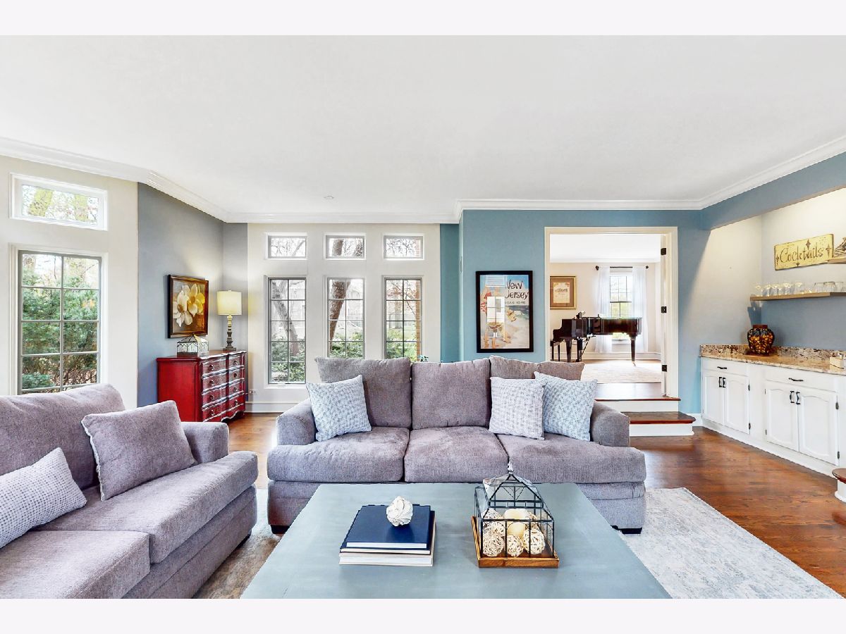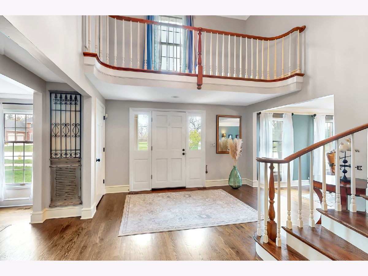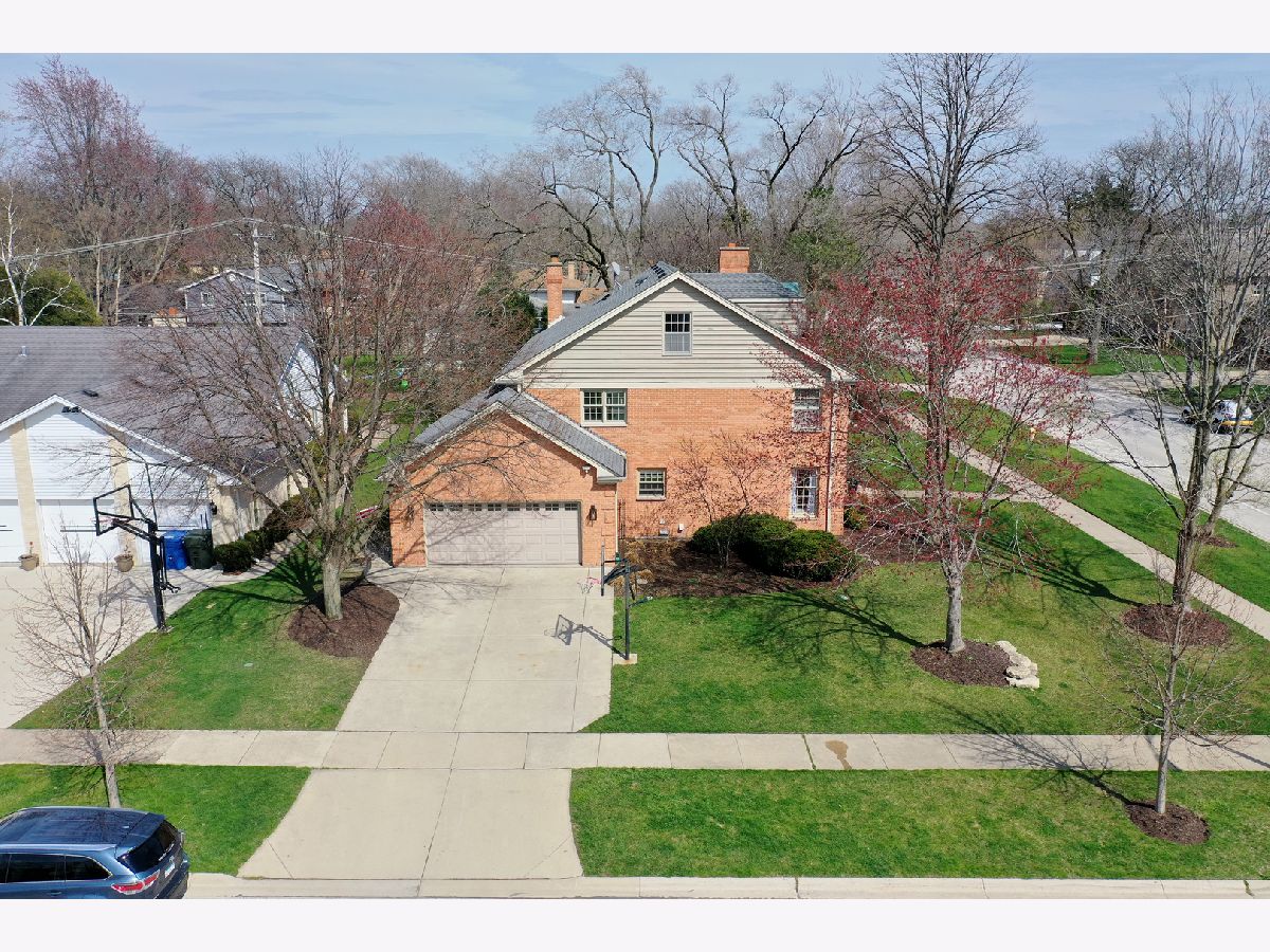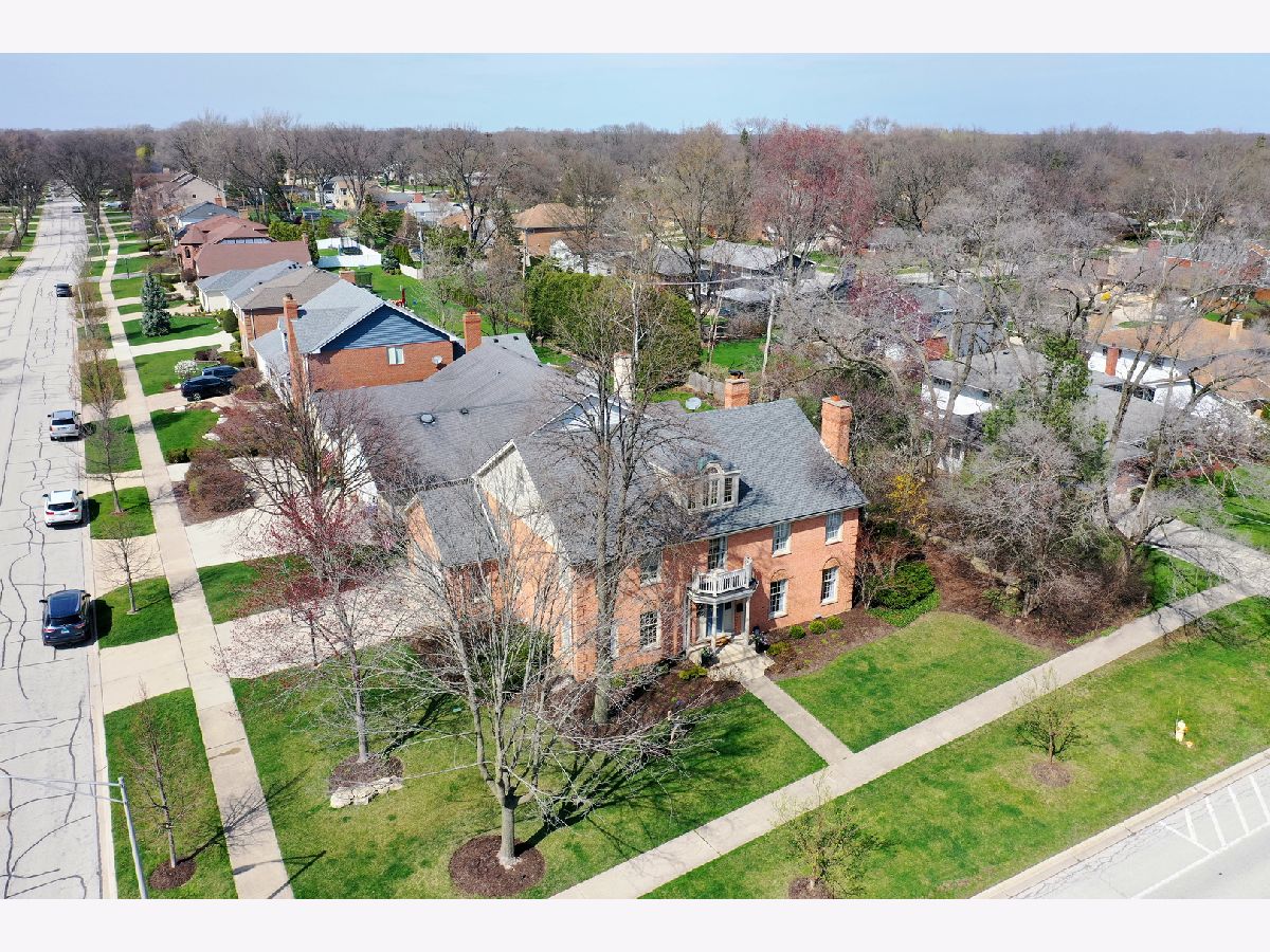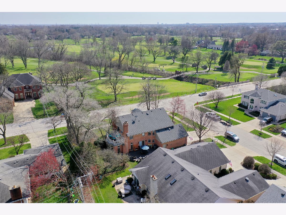 Iconic Mt. Prospect Home! This is one of Mt. Prospect's grandest of grand homes! This custom built 2 story overlooking the 7th hole of the Mt. Prospect golf course and has an East coast/ Northshore vibe with its Williamsburg colored brick and 3rd floor attic dormer. Step inside and you will be struck by the huge open 2 story foyer highlighted by hardwood floors, a formal sweeping staircase perfect for prom or wedding photos, a " Romeo and Juliet" balcony accessible through the primary bedroom and the focal point being a tasteful chandelier from New Orleans. From this central point the first-floor rooms fan out in a perfect architectural design. This magnificent home could also be called " The House of Light" because of all the almost floor to ceiling windows in just about every room. Off the foyer to the left is a holiday gathering sized formal dining room and straight ahead is the joyful immense remodeled custom kitchen with a huge island that has seating for 5, a granite countertop and 2 refrigerator drawers for wine, beer or pop. There is an " instant hot water" faucet for tea or coffee. The kitchen is open to the incredible family room with 10' ceilings, hardwood floors, lots more windows, dry bar and a fireplace with gas starter. From the family room just 2 steps up and you are greeted by a classic formal living room with hardwood floors and a fireplace with a gas starter. The full basement is finished and separated into a pool room (the pool table and sectional sofa stay), a rec room complete with a kitchenette area that has a full-size refrigerator, dishwasher and sink. There is 5th bedroom/office (no egress window) and a full bath and a huge storage room with double 75-gallon water heaters. Upstairs on the second floor will not disappoint either. The highlight is the primary bedroom and bath. There is a custom Trey ceiling, French doors out to your own private " Trek" deck to enjoying more relaxing time. The bath is fantastic with jetted tub and separate shower. There is an incredible walk-in closet and a pull-down staircase to an immense standable attic.