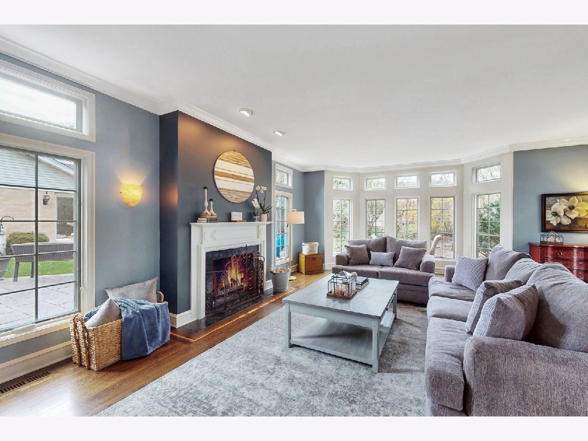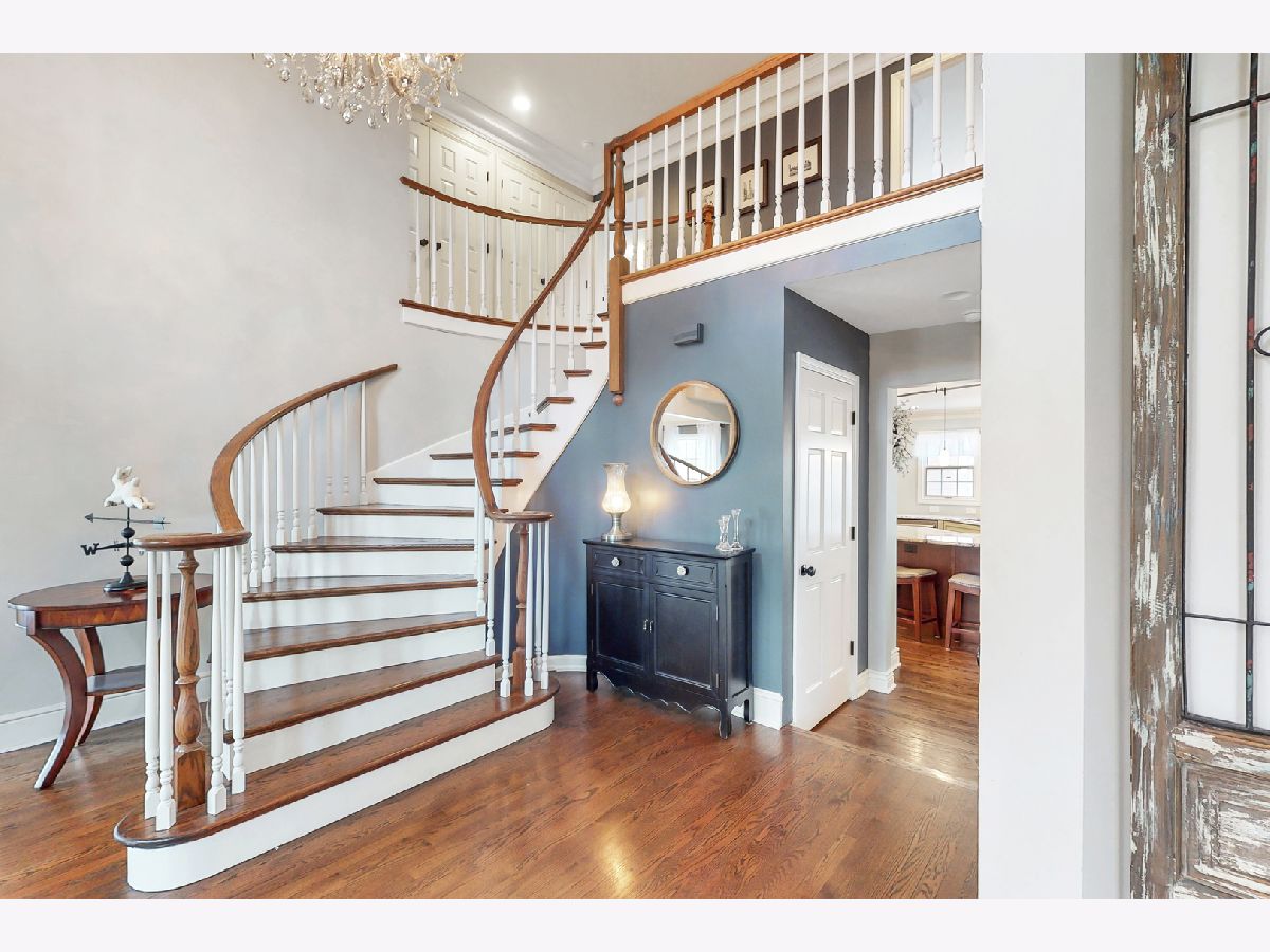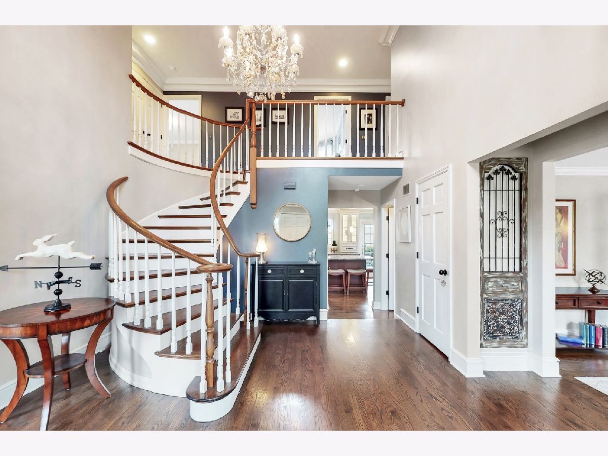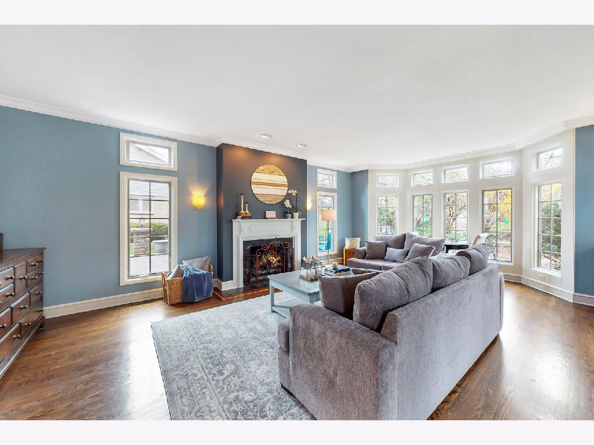 Iconic Mt. Prospect Home! This is one of Mt. Prospect's grandest of grand homes! This custom built 2 story overlooking the 7th hole of the Mt. Prospect golf course and has an East coast/ Northshore vibe with its Williamsburg colored brick and 3rd floor attic dormer. Step inside and you will be struck by the huge open 2 story foyer highlighted by hardwood floors, a formal sweeping staircase perfect for prom or wedding photos, a " Romeo and Juliet" balcony accessible through the primary bedroom and the focal point being a tasteful chandelier from New Orleans. From this central point the first-floor rooms fan out in a perfect architectural design. This magnificent home could also be called " The House of Light" because of all the almost floor to ceiling windows in just about every room. Off the foyer to the left is a holiday gathering sized formal dining room and straight ahead is the joyful immense remodeled custom kitchen with a huge island that has seating for 5, a granite countertop and 2 refrigerator drawers for wine, beer or pop. There is an " instant hot water" faucet for tea or coffee. The kitchen is open to the incredible family room with 10' ceilings, hardwood floors, lots more windows, dry bar and a fireplace with gas starter. From the family room just 2 steps up and you are greeted by a classic formal living room with hardwood floors and a fireplace with a gas starter. The full basement is finished and separated into a pool room (the pool table and sectional sofa stay), a rec room complete with a kitchenette area that has a full-size refrigerator, dishwasher and sink. There is 5th bedroom/office (no egress window) and a full bath and a huge storage room with double 75-gallon water heaters. Upstairs on the second floor will not disappoint either. The highlight is the primary bedroom and bath. There is a custom Trey ceiling, French doors out to your own private " Trek" deck to enjoying more relaxing time. The bath is fantastic with jetted tub and separate shower. There is an incredible walk-in closet and a pull-down staircase to an immense standable attic.