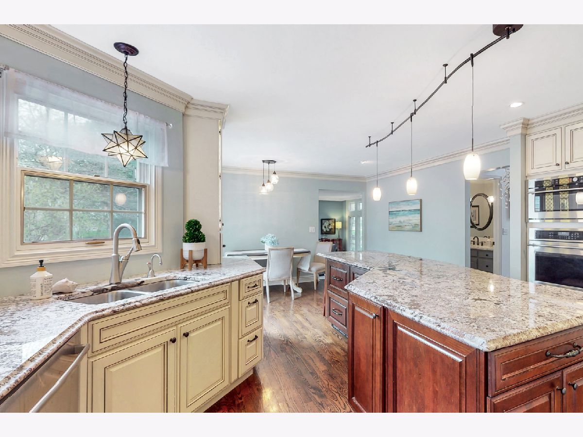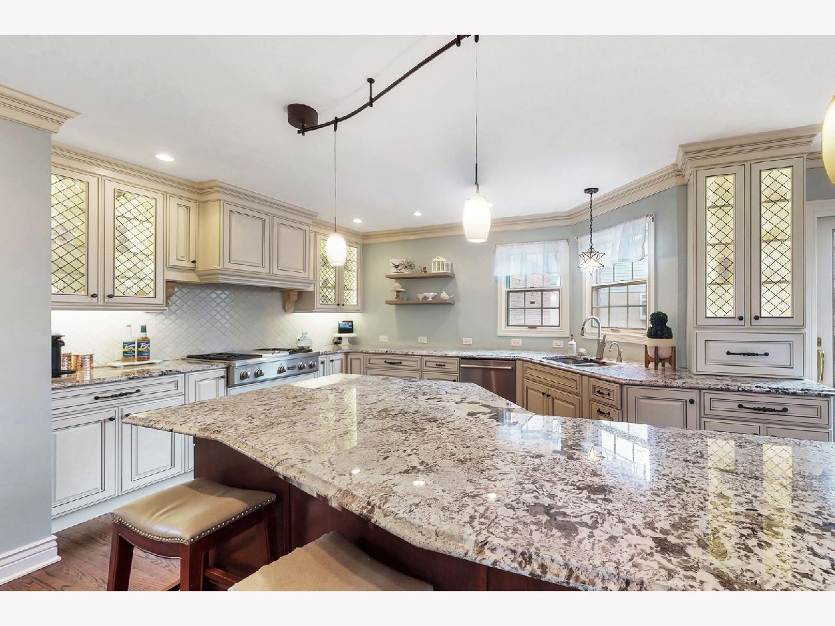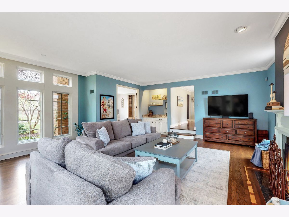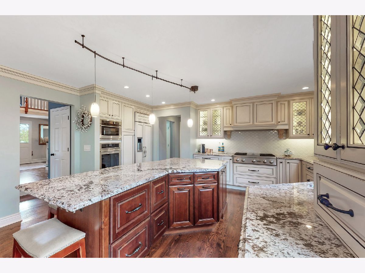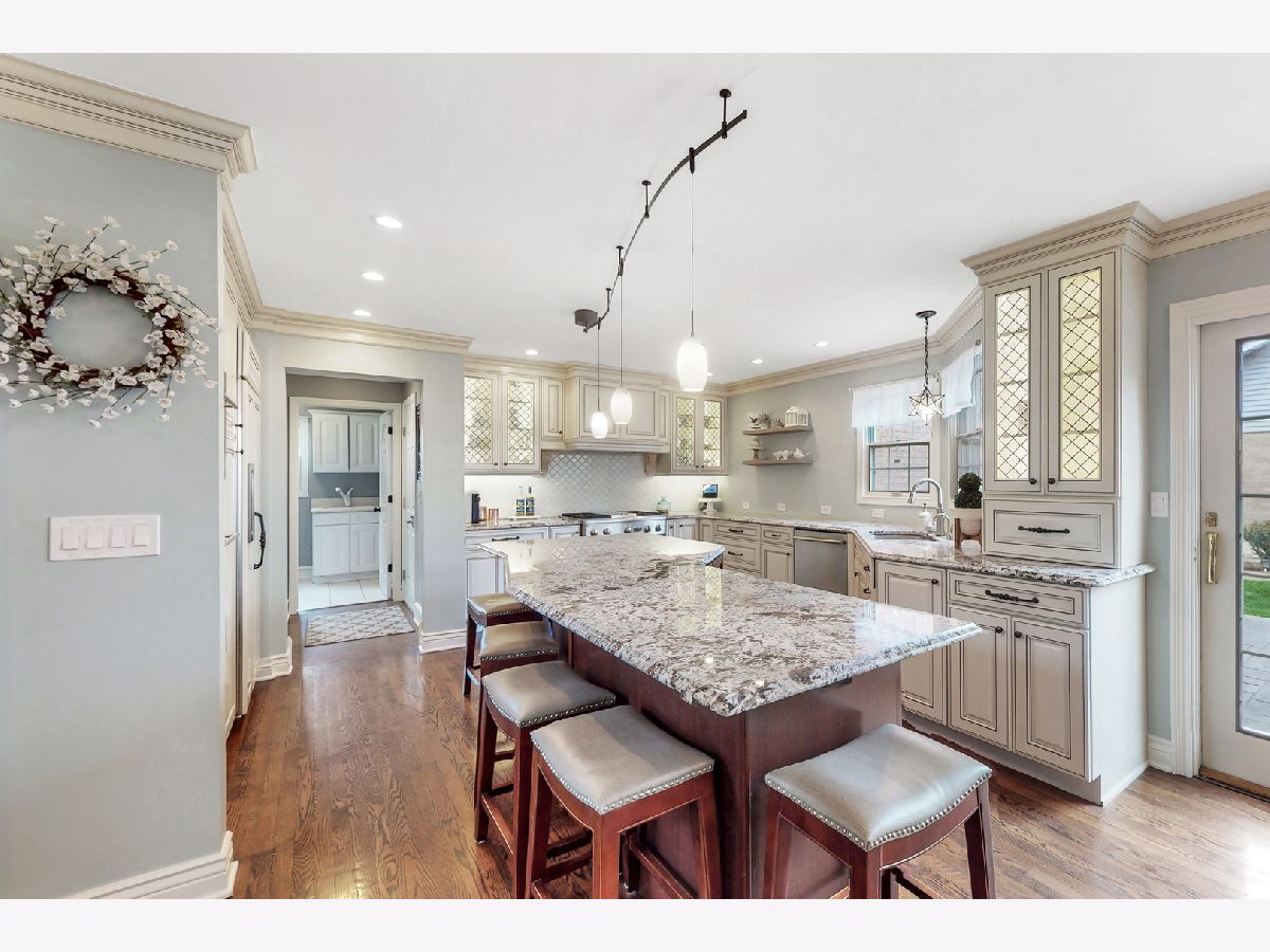 Iconic Mt. Prospect Home! This is one of Mt. Prospect's grandest of grand homes! This custom built 2 story overlooking the 7th hole of the Mt. Prospect golf course and has an East coast/ Northshore vibe with its Williamsburg colored brick and 3rd floor attic dormer. Step inside and you will be struck by the huge open 2 story foyer highlighted by hardwood floors, a formal sweeping staircase perfect for prom or wedding photos, a " Romeo and Juliet" balcony accessible through the primary bedroom and the focal point being a tasteful chandelier from New Orleans. From this central point the first-floor rooms fan out in a perfect architectural design. This magnificent home could also be called " The House of Light" because of all the almost floor to ceiling windows in just about every room. Off the foyer to the left is a holiday gathering sized formal dining room and straight ahead is the joyful immense remodeled custom kitchen with a huge island that has seating for 5, a granite countertop and 2 refrigerator drawers for wine, beer or pop. There is an " instant hot water" faucet for tea or coffee. The kitchen is open to the incredible family room with 10' ceilings, hardwood floors, lots more windows, dry bar and a fireplace with gas starter. From the family room just 2 steps up and you are greeted by a classic formal living room with hardwood floors and a fireplace with a gas starter. The full basement is finished and separated into a pool room (the pool table and sectional sofa stay), a rec room complete with a kitchenette area that has a full-size refrigerator, dishwasher and sink. There is 5th bedroom/office (no egress window) and a full bath and a huge storage room with double 75-gallon water heaters. Upstairs on the second floor will not disappoint either. The highlight is the primary bedroom and bath. There is a custom Trey ceiling, French doors out to your own private " Trek" deck to enjoying more relaxing time. The bath is fantastic with jetted tub and separate shower. There is an incredible walk-in closet and a pull-down staircase to an immense standable attic.
