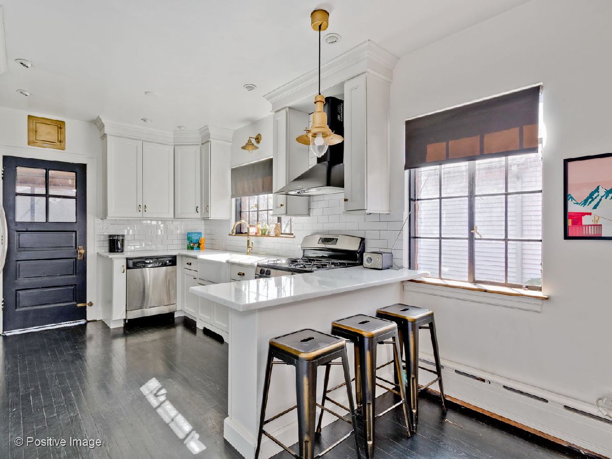 THIS HOME IS SECURED, CLEANED AND SANITIZED. PLEASE COME VIEW IT. Beautiful, newly updated "Story Book" style Tudor home located in the "Gold Triangle" area of Park Ridge. New kitchen with custom, solid white cabinetry blended with granite countertops, subway tile backsplash, stainless steel appliances and breakfast bar. Beautiful living room filled with charm and character wood burning fireplace and lots of windows. Formal dining room area open to the kitchen, engaging a large open floor plan feel. Main floor has newer remodeled, full bathroom and two large bedrooms. Second floor has a large master bedroom that can easily be converted into a full master suite with walk in closet and ensuite bathroom. Large unfinished basement offers flat cement floors, tall ceilings, laundry, mechanicals and is easily finish-able for more living space. Enclosed rear porch for extra recreational space. Large rear yard with 1 car garage. Tremendous value and opportunity in a super desirable neighborhood. Home has newer roof, beautifully refinished hardwood floors, newer kitchen, bathroom, electric, boiler and many more updates throughout. One of a kind home!