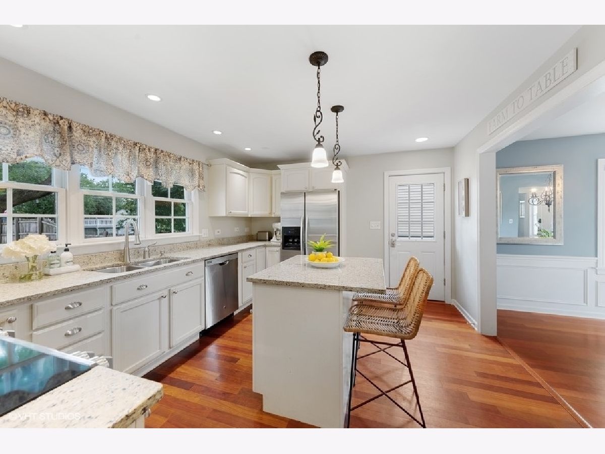 Welcome to 315 Leitch Avenue where the curb appeal is OFF THE CHARTS! This perfectly updated Center Hall colonial home is situated in the middle of a fabulous quintessential La Grange block and is located in the coveted Cossitt Avenue School area. The home has been perfectly maintained and features an open kitchen with stainless appliances, painted cabinets, wonderful windows overlooking the lush back yard, granite counter tops and island open to the dining room with tons of light coming through the massive front windows, large freshly painted living room with a wood burning fireplace, den addition off the back with large sliding door to a beautiful bluestone paver patio and extra deep fenced yard, full concrete long driveway and a two car garage. The Architectural Series roof was done in 2019, new front porch and bluestone pavers (2017), new concrete driveway (2013), first floor Brazilian cherry hardwood floors and newly refinished oak hardwood floor on the second level. The home has 4 bedrooms UP and 2 FULL baths or it could easily be converted to a primary suite sanctuary with private a office (4th bedroom) with the simple addition of a door to the left of the landing. Finished basement with a spacious lounge/family room area plus a perfect workout room and large storage area with laundry as well. The exterior features high end Hardy Board siding (2005), newer windows and doors which round out this perfect package of this amazing home. Walk to the LaGrange Stone Ave Metra station and situated between both campuses of LTHS, this house has what you are looking for all the way around!
