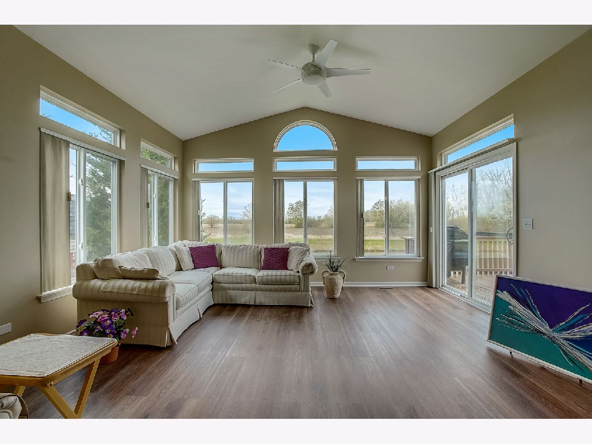 Your place to spread out and breathe. Rare and spacious 3 bedroom, 2 bathroom ranch backing to pond and farmlands. Panoramic views from south-facing sunroom, lovely cedar deck, and screened back porch overlooking nature. Need to get out and play? Park and playground just a skip away on same side of street, nestled in quiet neighborhood. Like-new updates and upgrades throughout. Elegantly appointed finishes. On-trend colors. Open-concept floor plan. New vinyl-plank faux-wood flooring throughout most of main floor. Gourmet kitchen features solid surface counters, stainless steel appliances, upgraded cabinets, ceramic tile floors, opening to great room hosting wood-burning gas fireplace and illuminated by soft natural light of transom windows. Laundry room on main floor grants access to your attached 2-car insulated garage. Grande primary bedroom has private ensuite bathroom, high ceilings, Jacuzzi tub, separate shower, walk-in closet with closet organizer. Bring your ideas for finishing this 2215 sf basement with plumbing roughed in for potential bathroom. Minutes to Woodmans, local shopping, restaurants, major commuter ways, and the Metra (11 minutes), forest preserves, and award-winning schools! Grab it now. This one's coming in hot!