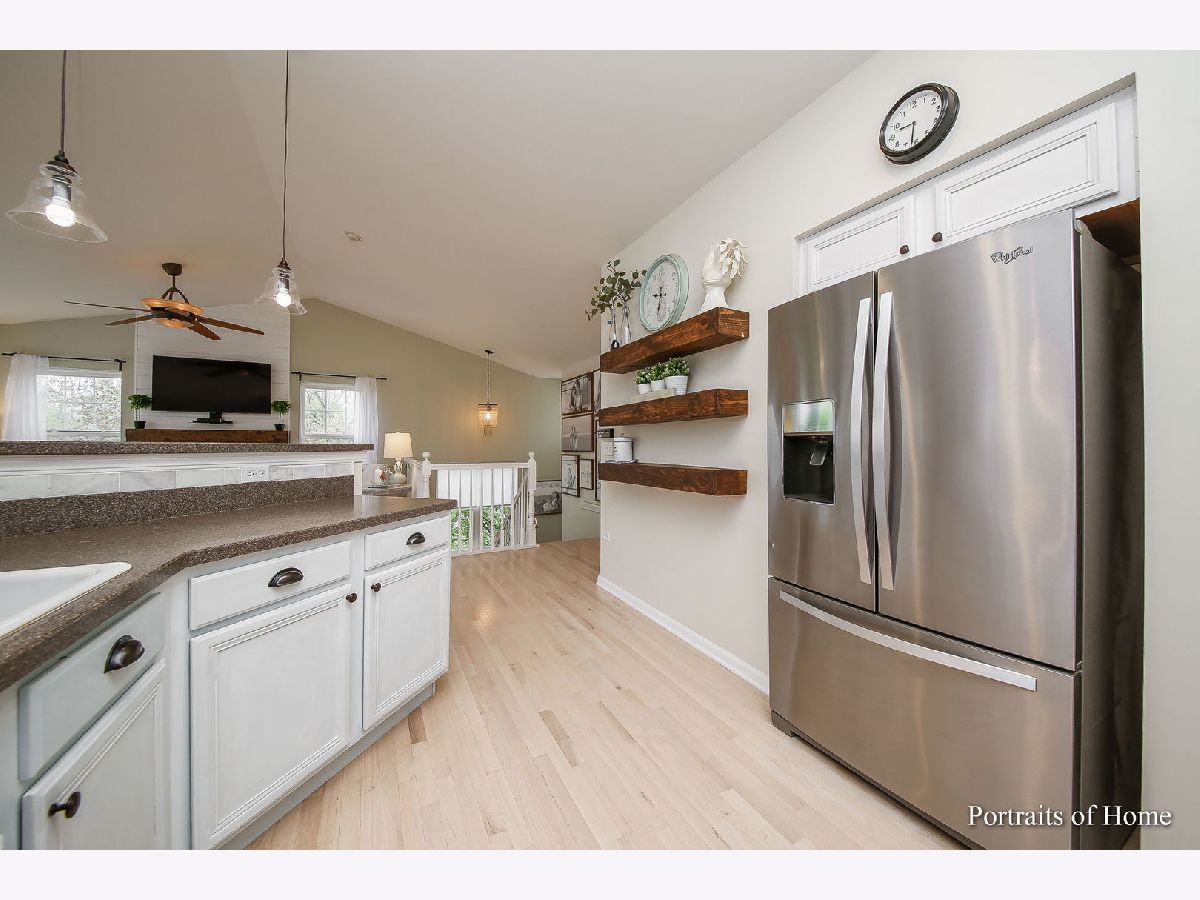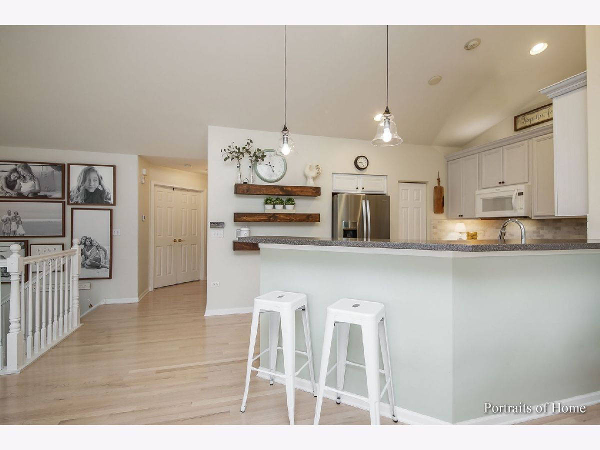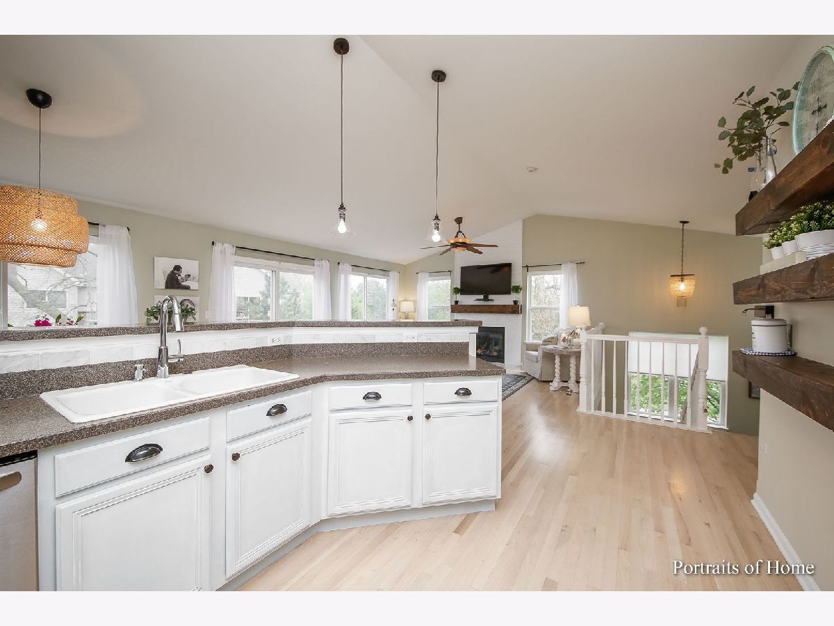 Pottery Barn HGTV Beauty Combined. END UNIT with ton of windows, white woodwork and multiple panel doors. I can hear you now sigh, and think WoW I can live here! Not only that, but it's 2 doors away from single family homes and backs to a beautiful wooded walking path. I don't know where to start, the newly redone whitewash oak floors, and you can't help but notice the vaulted ceilings in Living room, dining room and kitchen. Living room has a beautiful rustic beam mantel flanked by 2 large windows, (Just a flip of a switch to turn gas on) Large kitchen with 42" tall cabinets with crown molding, breakfast bar for 4-6, stainless steel appliances stay, top grade 5 burner gas slide in stainless steel stove with all the bells and whistles like a built-in air fryer, beam shelving stay, Dining room has double patio door to enjoy the views of the walking path. Large master bedroom with triple windows, has accent wall of shiplap, beautiful lighting, walk in closet, on suite has soaking tub, separate shower with clear doors and double vanity. Powder room with new vanity, shiplap, sophisticated wallpaper, new lighting. 3rd bedroom has 2 large windows, walk in closet. 2nd full bath is equally as beautiful. Laundry room has built in wall paneling with coat hooks and plenty of space to move. Family room has a second fireplace!! loads of windows and patio doors to covered patio to enjoy the views of walking path. Not done yet, unfinished basement with rough in plumbing in case you want even more space.