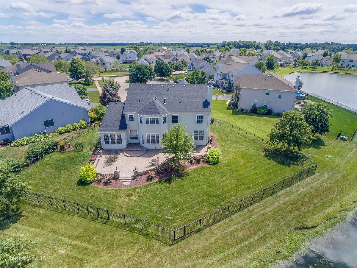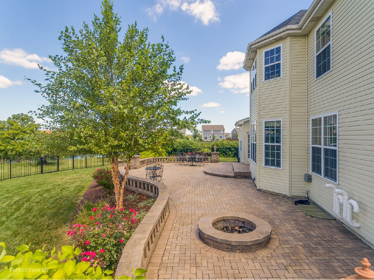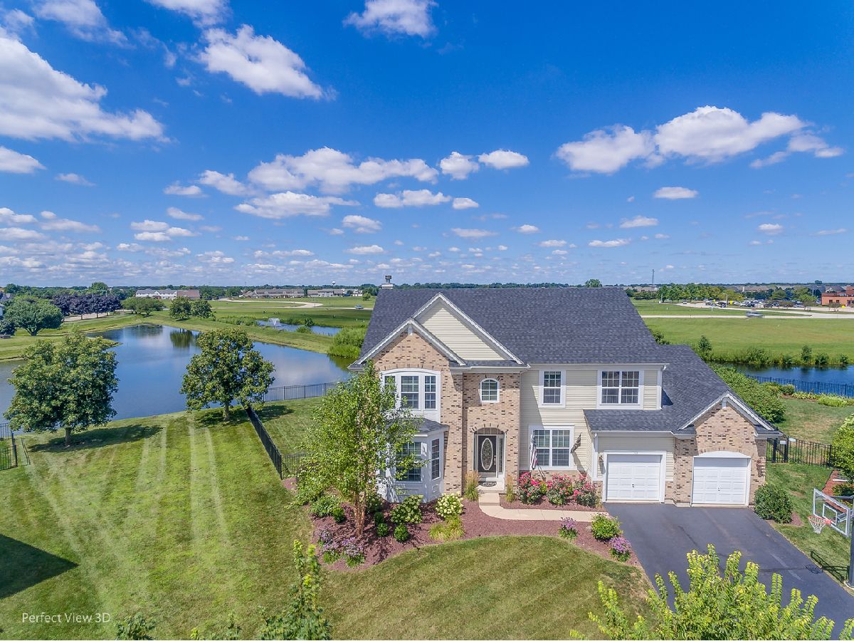 Welcome to this GORGEOUS executive 4,059 sq ft home on a quiet cul-de-sac featuring 6 BEDROOMS, 4.1 BATHS, 3 CAR tandem garage, FINISHED BASEMENT, and breathtaking SUNSET LAKE VIEWS in Ashcroft Place! Gleaming hardwood flooring in the foyer sets the stage for this magnificent property. A convenient front living room/flex room and a separate dining room (New Carpet 2021), with an elegant tray ceiling (currently used as an office), provide great spaces for entertaining. The massive open-concept kitchen features an abundance of cabinets and countertops, an oversized island with sink, breakfast bar, stylish backsplash, cooktop with hood, double oven, and a perfect coffee/wine station! The attached breakfast room provides ample table space for casual dinners offering stunning views of the fountain on the lake! Snuggle up this fall & winter around the cozy stone fireplace in the family room. Enjoy coffee and a good book in the inviting sunroom. Upstairs the impressive primary bedroom features a unique tray ceiling, two-sided gas fireplace, and TWO HUGE WALK-IN CLOSETS! The primary ensuite is nothing short of spectacular with a glamourous soaking tub surrounded by pillars and views of the fireplace, dual vanities, and a full walk-in SHOWER ROOM with rain-head and shower jets! The 2nd bedroom boasts a full private attached bathroom and walk-in closet. The sizeable 3rd & 4th bedrooms along with a full hallway bathroom with dual sinks complete the upstairs. Looking for even more space?! Head downstairs to the finished basement for 2 more oversized bedrooms with closets, a large rec room - all with new carpeting and paint, a full bathroom, and tons of storage!! The best is yet to come when you wander outside to the massive wrap-around brick paver patio with a built-in firepit! Relax after a long day with nightly sunset views over the lake. Fire up the grill on the 4th of July and watch the Oswego fireworks from your very own patio chair! Keep everyone safe inside the wrought iron fenced-in backyard! New Roof 2019, Sprinkler System (as-is), Passive Radon Mitigation System. Conveniently located near Prairie Point Park, miles of bike paths, splash pad, walking distance to Traughber Jr. High, close to downtown Oswego and the quaint shopping & restaurants! Ask your Realtor for the list of recent home improvements and book your private showing today!