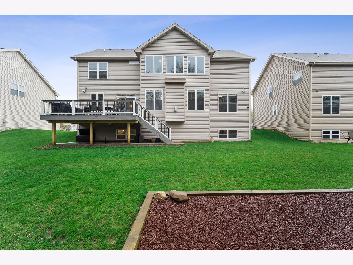 Virtual 3D tour of the entire home is available for you to view! This is an immaculate home within highly sought after neighborhood, in Crystal Lake school district. It is the Bainbridge Farmhouse Model with large front porch, a brand new deck with patio underneath and private backyard. The entire house has a fresh coat of paint, high end blinds, and all new flooring within the past 2 years. The main level has an open floor plan living space with updated kitchen. Kitchen has quartz counter tops, a walk-in pantry, and stainless steel appliances (5-burner gas cook top, built-in microwave, dishwasher, double oven). Additionally on the main floor there is an office (which could be used as a formal living room) and a dining room; both rooms accented with wainscoting. There is also a half bath and a playroom (or office) with built-in shelving. The second floor has 4 spacious bedrooms and a loft open to the living space below. The master suite includes his and her walk-in closets and an attached bathroom with double sinks. There are also a second sunk-in suite with full bath, 2 bedrooms and a full bath open to the hallway. The full English basement with 9 foot ceilings offers an enormous additional living space. The full wet bar has a granite counter top, beverage fridge, wine fridge and ample seating for guests. There is a large living space with built-in cabinets, a half wall to contain play area, a designated workout space, a full bath with steam shower and plenty of storage space. The basement has dual Hepa Air Filters that trap common allergens and an air scrubber system to purify the air making this home a quarantine safe haven! The heated garage has epoxy flooring and more storage space. A basketball hoop and playset are installed and ready for outside fun. It is everything you dreamed of - and more!