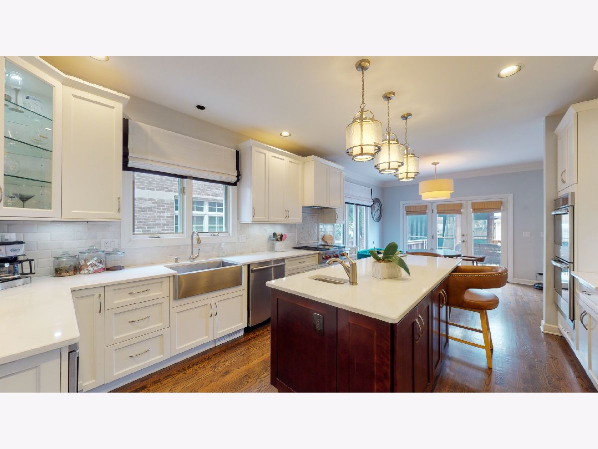 You'll find very few properties in Park Ridge with such sizeable and immaculate indoor and outdoor spaces, located in the town's "Golden Triangle" near the restaurants and shops of Uptown, 2 blocks to Lincoln Middle School, 4 blocks to Washington Elementary and 8 blocks to Maine South High School! This is a completely renovated, modern, four-bedroom 2,900 (above grade) square foot home on a rare oversized 50x177 lot - the focal point being a massive backyard oasis with electrically wired gazebo. The home includes an insulated, detached three-car garage with additional carport. The first and second floors were renovated to the highest of standards in 2014 and the basement was completed in 2018. This home shows like a new build on a mature, lush lot with tons of trees, including one of the area's few remaining giant weeping willows standing sentinel over the property. The fenced-in backyard is large and private by Park Ridge standards and boasts a wide deck with attached gazebo (includes a ceiling fan and is wired for TV and sound) for hosting friends and movie nights outside during warmer months. It's a winter wonderland, with plenty of room to roam and play during colder months. Inside, the first floor features a beautiful chef's dream overlooking the backyard - a bright, thoughtfully-designed eat-in kitchen with massive prep and eating island (including a prep sink) and high-end appliances: Wolf stovetop range, Wolf built-in drawer microwave, separate double GE ovens and double-door GE refrigerator/freezer. This home features upgraded crown molding and thoughtful carpentry detailing throughout, including a custom built-in bookcase near the fireplace (gas and electric) and custom built-in cabinetry in the family room. The dining room is a showstopper with a gorgeous charcoal grey ceiling and comfortably fits a 102" long dining set which makes the home ideal for entertaining. Just off the two-story entry is a light-filled, spacious den or TV room with picture windows. The first floor also includes a functional and stylish mudroom with separate entry and powder room. A statement u-shaped staircase takes you to the second floor where you'll find an expansive and airy primary suite with double French doors opening into sitting room (or second office/den if you have two people working from home). The current owners opened a primary bedroom wall to take over the second floor's fourth bedroom to create the sitting room. If a fourth upstairs bedroom is required, the sitting room can be easily converted back to a bedroom. The primary bedroom's bath is found at the end of a short corridor - comprised of one walk-in closet and one additional closet - connecting the bedroom to the significantly oversized bathroom. Two additional sun-filled bedrooms with large windows and one additional full bath with double vanity complete the second level of this home. In the basement, you'll find another 1,300 square feet of living and recreational space. Amenities include a wine cellar and full-sized laundry room, ample storage and closet space, a built-in daybed or reading nook, fourth full bedroom and marble bathroom. This lower level was well-planned to accommodate any need of the space and includes a large recreational area, "theater" or second family room with a separate sitting area or gaming room. The home includes a new sump pump, ejector pump with battery backup, two new 50-gallon water heaters, new double furnace, double air conditioner and humidifiers. Come and check out this show stopper today!