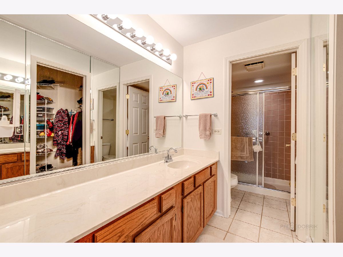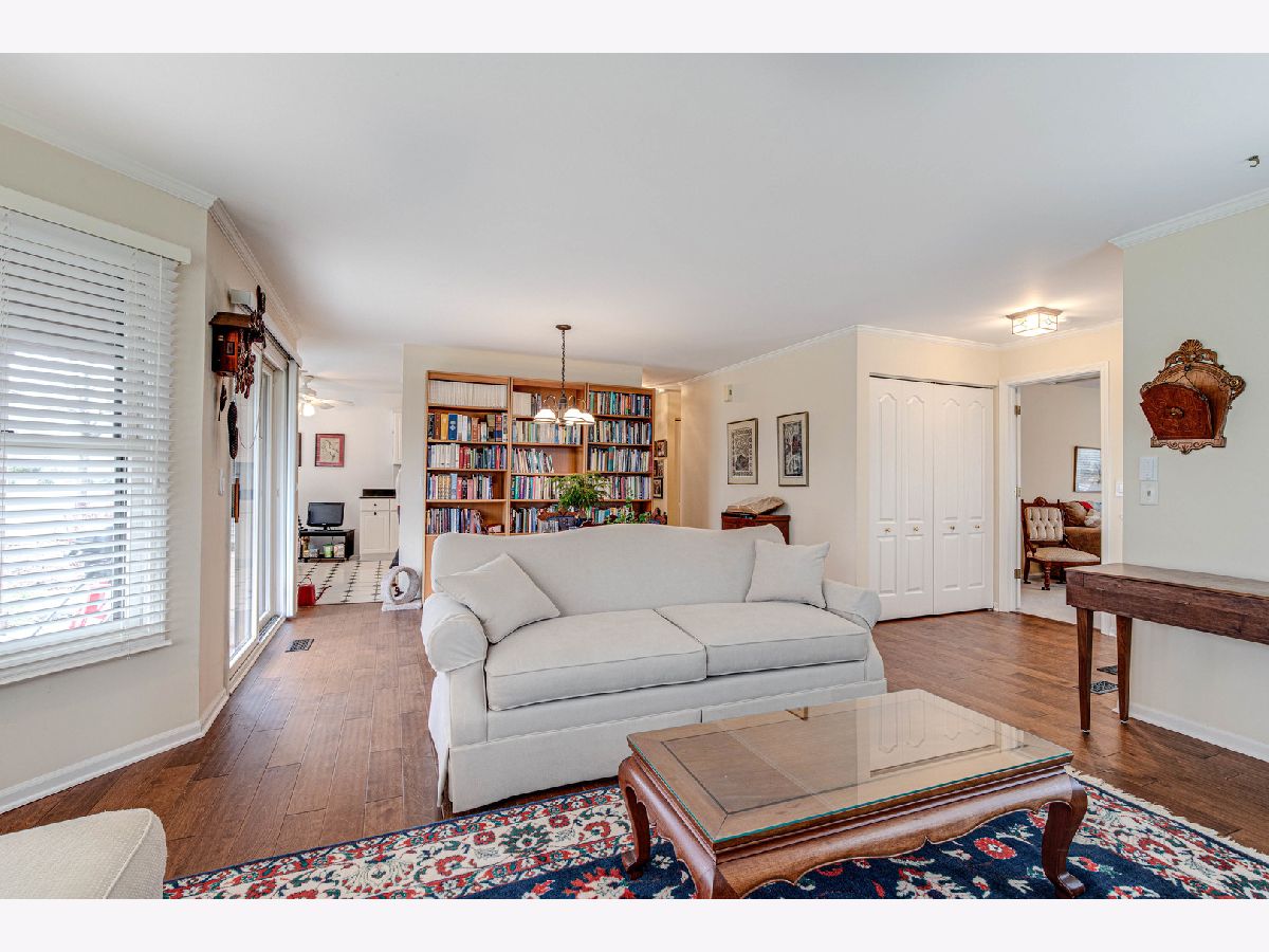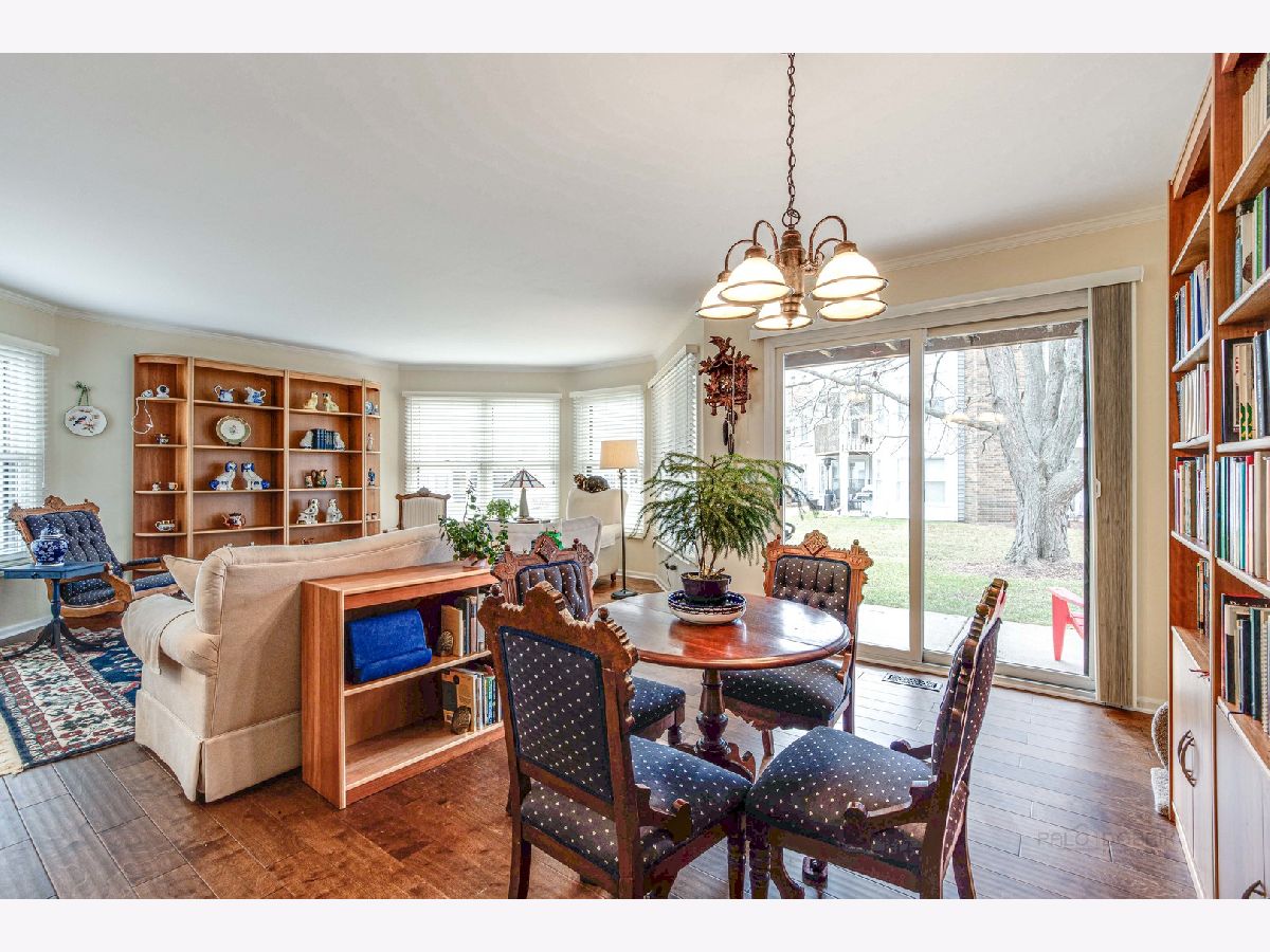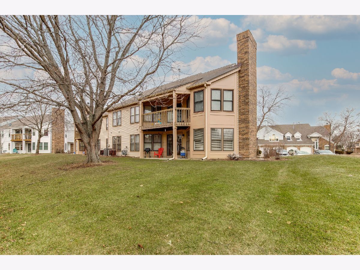 Impeccably maintained first-floor end-unit ranch townhouse situated on a tranquil cul-de-sac in the desirable Woodlands of Fiore Subdivision. This gem is located in the award-winning Stevenson school district. As you enter through the front door, you'll be greeted by an inviting foyer with brand new rich engineered hardwood flooring that leads way into the large living and dining room combo. The ample windows let in an abundance of natural light and allow you to look out to green space, creating a warm and welcoming atmosphere. This combo is perfect for everyday living or entertaining friends and family, with easy access to the kitchen to make meal prep a breeze. The kitchen boasts plenty of white Amish wood cabinets, quality appliances, ample granite counter space, and even enough room for a cozy breakfast nook- perfect for savoring a fresh cup of coffee in the morning. The in-unit laundry room, conveniently located off the kitchen, has a stackable new (2022) GE washer/dryer for added convenience. When it's time to unwind, retreat to the spacious main bedroom suite down the hall, complete with a private bath which offers quick access to your walk-in closet. The additional bedroom is equally spacious with generous closet space and private access to the second full bath. This home also features a 1-car attached garage and a private patio with a scenic view. Conveniently located close to shopping, parks, train station, and more, this is maintenance-free living at its finest. New Rheem 40 gallon water heater (2022). Don't miss out on the opportunity to make this your new home - schedule a showing today!