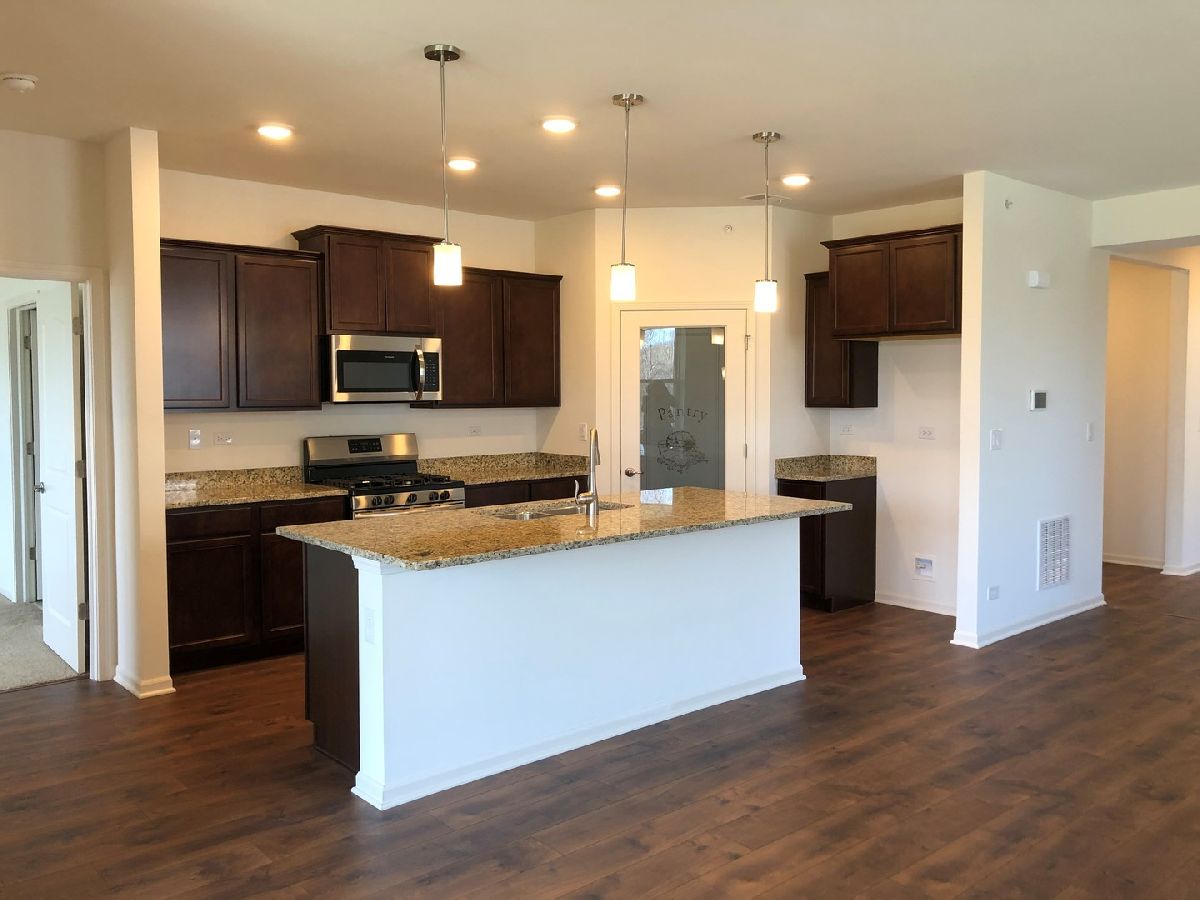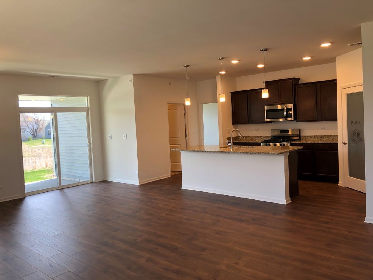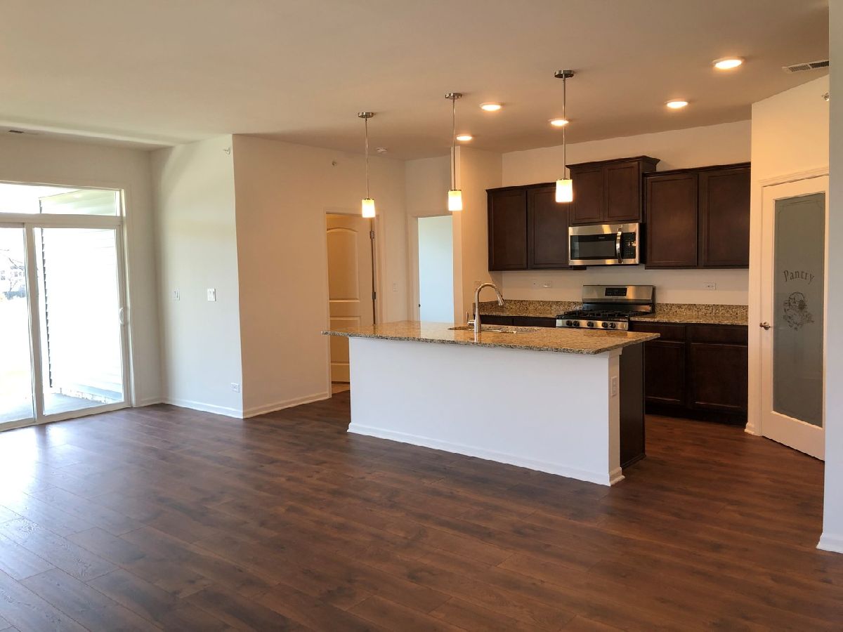 Newly constructed ranch home at Wentworth in Gurnee with Beautiful Pond View! Popular Clifton Ranch home with front and rear covered porches, 2 bedrooms, flex room with French doors, 2 baths and 2 car garage. Open concept kitchen with designer cabinets, stainless steel appliances, large walk-in pantry with etched glass door, granite countertops and large island, great for entertaining! Master bath includes dual bowl vanity, linen closet and large shower with seat. Master suite includes 2 walk-in closets. Architectural Shingles, Porches, brick and professional landscaping make for a beautiful exterior. Enjoy Maintenance Free Living at Wentworth. Be near shopping, restaurants, parks, entertainment and much more!