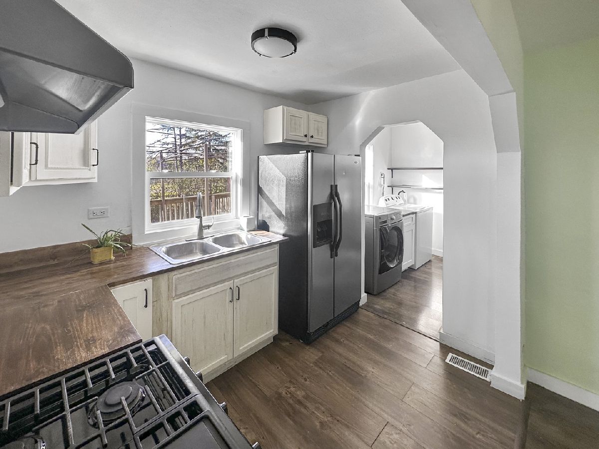 Welcome to this cape cod-style home with a spacious living and dining room area with beautiful laminated flooring and a spacious kitchen area with plenty of space for adding an island or butcher block. Kitchen cabinets have been remodeled with a touch of country flare and wood countertops. Large 3 beds and 1 full remodeled bath. This beautiful home sits on a large fenced double lot with, a spacious wood deck. Plenty of parking spaces. Sold before Print.